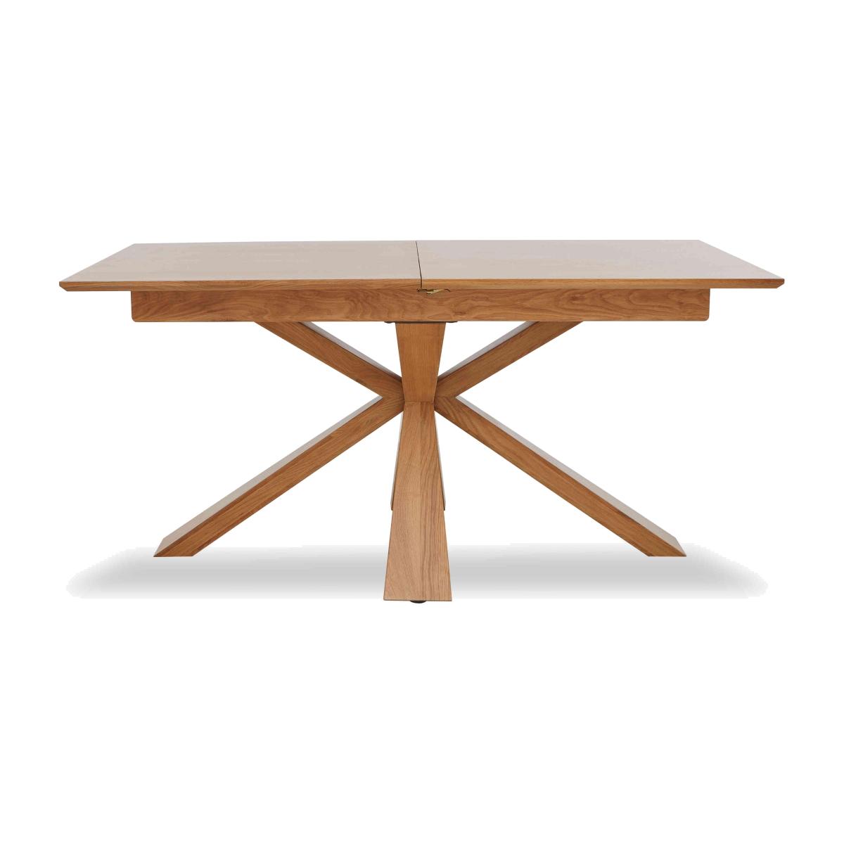 If you love industrial style but prefer a refined look to a rustic one, you’ll appreciate our extensive Hanoi range of dining room furniture. Showcasing light oak lacquered veneers and a choice of wood and metal table bases, this sleek and well-finished range includes a really wide choice of dining sets with versatile seating options – the curved dining chairs and dining bench are upholstered in faux leather in a choice of colour – as well as a sideboard and occasional tables. We think you’ll also appreciate the great-value pricing, a fact that makes it even easier to bring home the high-quality and well-crafted dining set and dining room furniture that you’ve always wanted. The Hanoi range is exclusively available at Furniture Village. Here’s the perfect extending dining table for family dining and those special occasions. Industrial in style it has a lovely light oak veneer finish. Why you'll love it With its lovely finish and wooden base, this extending dining table is a new favourite. Top-quality industrial style at a great price. Beautiful lacquered light oak veneer top. Striking wooden star-shaped base. Seat 2 more in seconds with the super-easy butterfly extension mechanism. Also available as a fixed dining table and with a metal base. Only at Furniture Village. This extending dining table with wooden base is part of our Hanoi range. What you need to know Seats 6. Extends to seat 8. Oak veneer top. Solid wood frame and base. Every piece of oak veneer has unique and natural marks, knots and colour variation. Avoid placing in direct sunlight or close to a heat source. We recommend using coasters and placemats at all times. Our extensive Hanoi range includes dining tables, dining sets, chairs, benches and more.