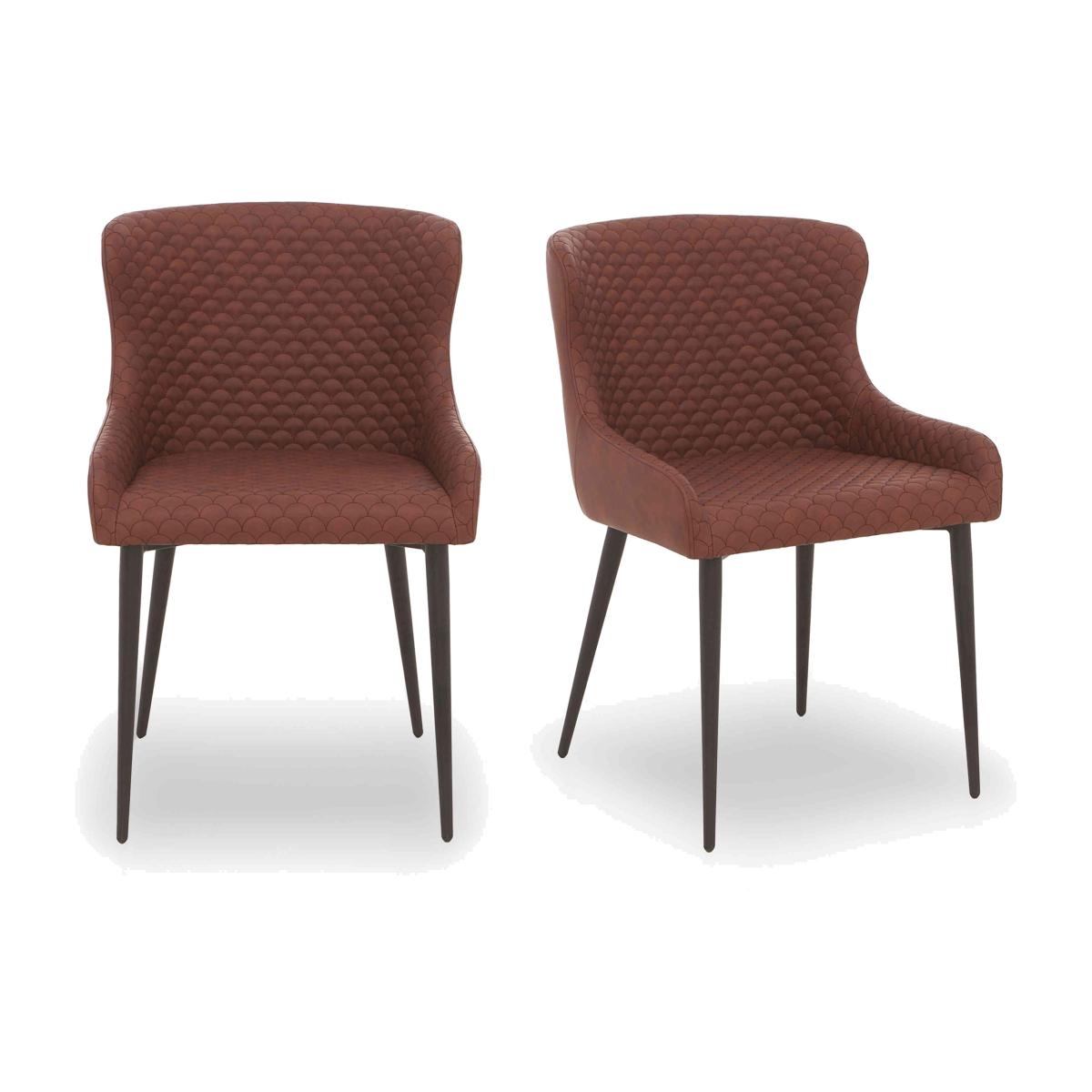 If you love industrial style but prefer a refined look to a rustic one, you’ll appreciate our extensive Hanoi range of dining room furniture. Showcasing light oak lacquered veneers and a choice of wood and metal table bases, this sleek and well-finished range includes a really wide choice of dining sets with versatile seating options – the curved dining chairs and dining bench are upholstered in faux leather in a choice of colour – as well as a sideboard and occasional tables. We think you’ll also appreciate the great-value pricing, a fact that makes it even easier to bring home the high-quality and well-crafted dining set and dining room furniture that you’ve always wanted. The Hanoi range is exclusively available at Furniture Village. This pair of dining chairs brings both style and comfort to any dining room. Chairs have low arms, supportive backs and soft faux leather upholstery in a choice of colours. Why you'll love it Pair of curvaceous and contemporary dining chairs. Refined industrial style at a great price. Neatly upholstered in faux leather. Choice of colours. Nicely embellished with quilted-effect stitching. Slender, tapered black metal legs. Striking style meets dining comfort with supportive backs and low arms. Also available individually and in sets of 4 and 6. Only at Furniture Village. This pair of dining chairs is part of our Hanoi range. What you need to know Foam seat cushioning. Our extensive Hanoi range includes dining tables, dining sets, chairs, benches and more.