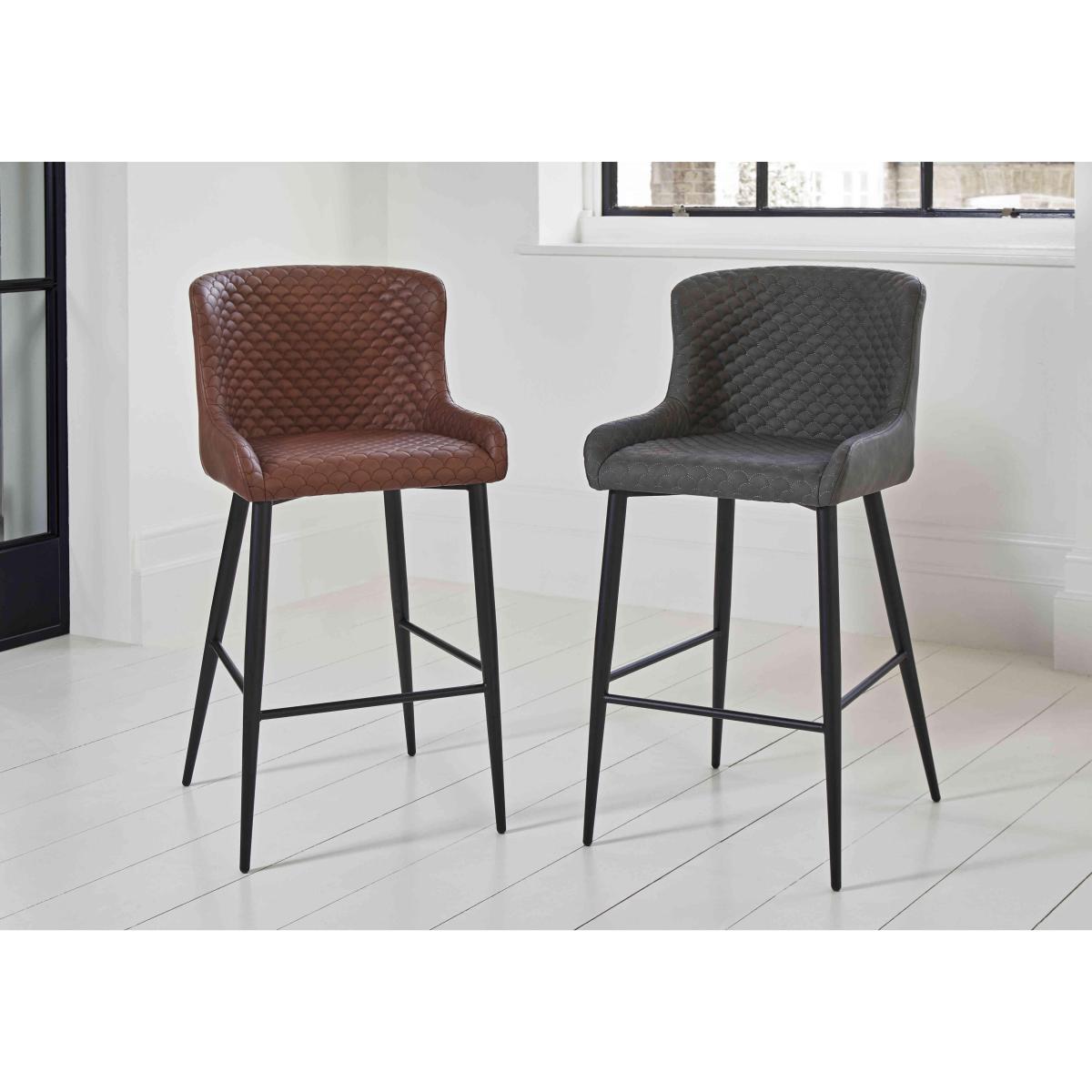 If you love industrial style but prefer a refined look to a rustic one, you’ll appreciate our extensive Hanoi range of dining room furniture. Showcasing light oak lacquered veneers and a choice of wood and metal table bases, this sleek and well-finished range includes a really wide choice of dining sets with versatile seating options – the curved dining chairs and dining bench are upholstered in faux leather in a choice of colour – as well as a sideboard and occasional tables. We think you’ll also appreciate the great-value pricing, a fact that makes it even easier to bring home the high-quality and well-crafted dining set and dining room furniture that you’ve always wanted. The Hanoi range is exclusively available at Furniture Village. Bar table dining is instantly more elegant with this pair of faux leather bar stools. Exclusive to Furniture Village. Why you'll love it Complete your bar table with this pair of very cool bar stools. Refined industrial style at a great price. Neatly upholstered in faux leather. Choice of colours. Nicely embellished with quilted-effect stitching. Slender, tapered black metal legs. So comfortable with supportive backs, low arms and footrests. Also available individually and in a set of 4. Only at Furniture Village. This pair of bar stools is part of our Hanoi range. What you need to know Foam seat cushioning. Our extensive Hanoi range includes dining tables, dining sets, chairs, benches and more.
