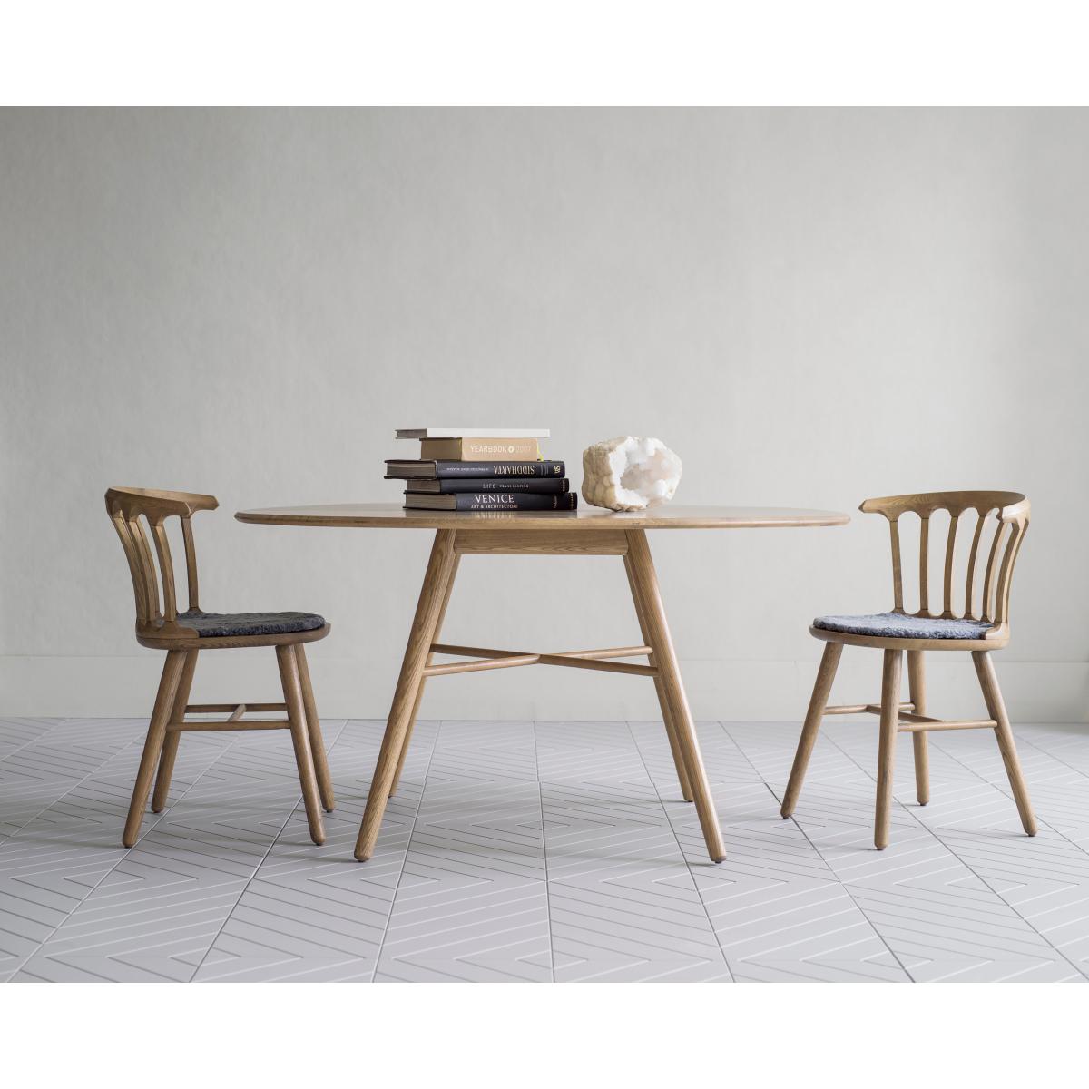 I love this table for its clean, minimalist design and the natural beauty of the oiled oak finish. It works especially well in Scandi-inspired interiors or contemporary schemes that value organic textures and understated elegance. The round shape promotes inclusive dining, making it perfect for small to medium spaces. When styling, consider pairing it with sleek chairs in neutral tones or a mix of materials like metal or leather for contrast. For a more relaxed look, add a statement centrepiece or a colourful runner; for a formal setting, keep accessories minimal. Its versatile design allows it to anchor both modern and rustic interiors effortlessly.