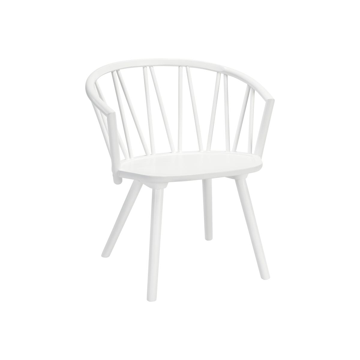 I love this chair because of its simple yet sculptural design, making it a versatile addition to both contemporary and traditional interiors. The white finish ensures it works well as a stand-alone piece or paired with bolder colour palettes, adding a fresh, light touch. It’s ideal for reading corners, small lounge areas or even bedrooms, where its open, airy silhouette can complement minimalist decor or eclectic styles. Practical styling tips include using it with colourful cushions to add texture or positioning it in a corner with a small side table and a lamp for a cosy, inviting nook. Its neutral tone also makes it a flexible choice for various colour schemes, allowing you to change up the surroundings without needing to replace the chair itself.