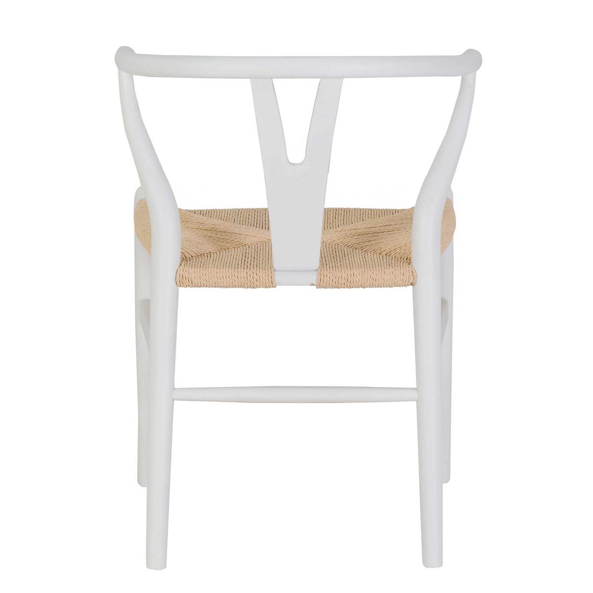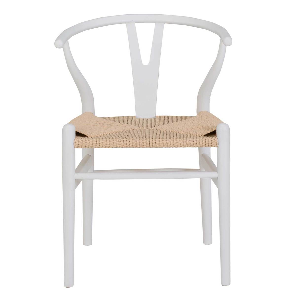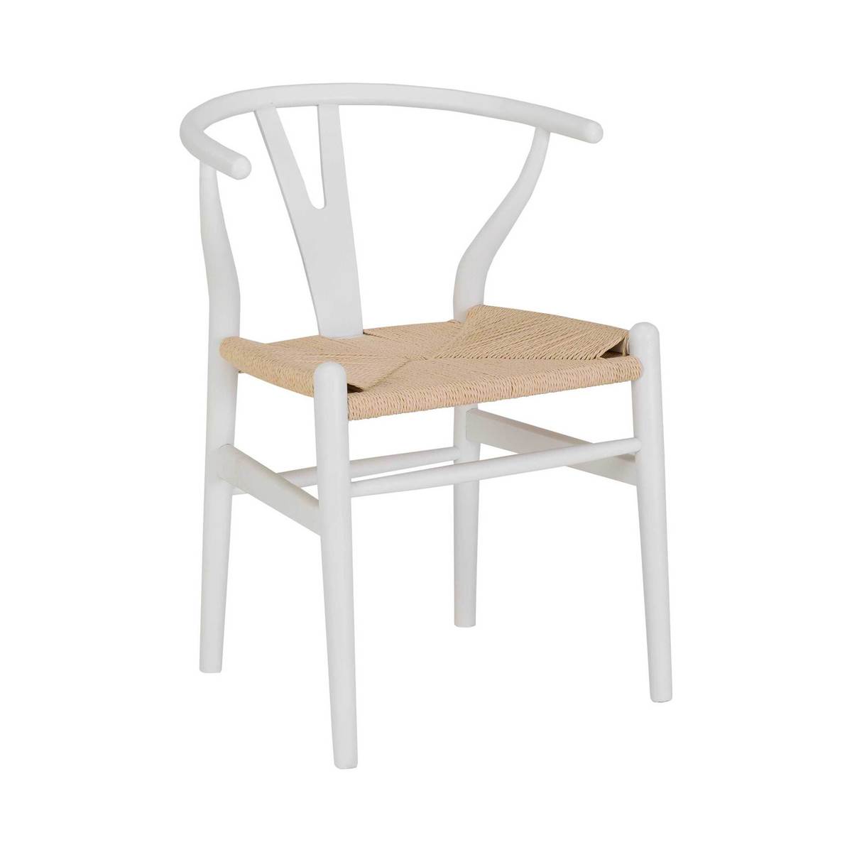 Design. A modern update on a popular mid-century design, the Hans wishbone chair features a solid beech frame that’s painted white for a fresh finish. An effortless way to achieve the sought-after Scandi look, it has a natural paper cord seat for an even more pared-back feel. An instantly recognisable piece, this beautiful wishbone dining chair pairs perfectly with our. Hague dining table.