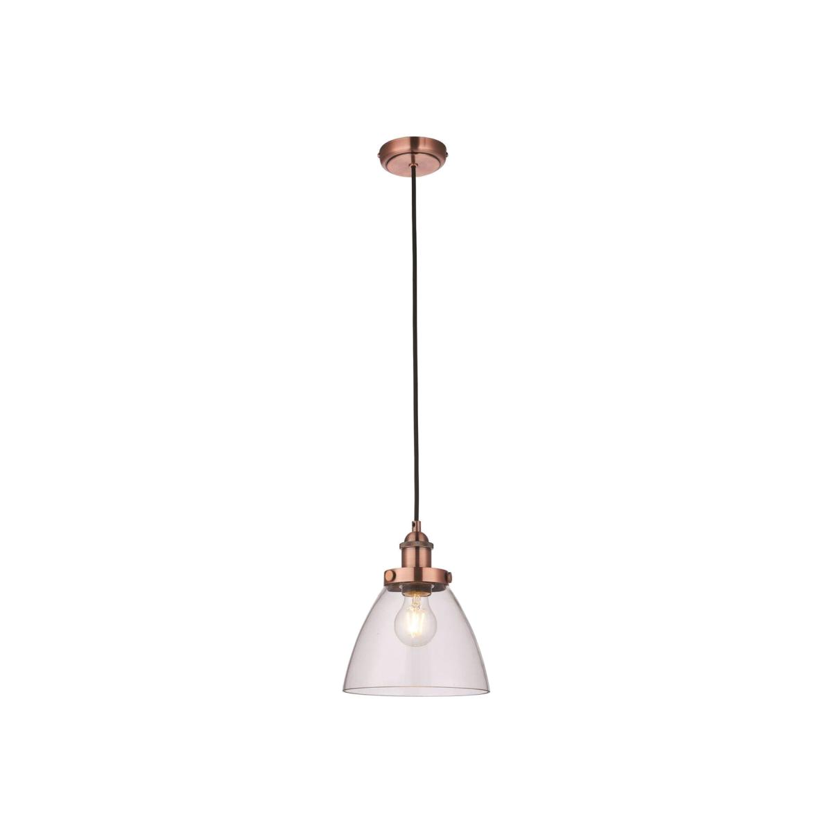Hansen 1 Light Pendant Glass, Aged Copper Plate, E27 - Aged Copper Plate