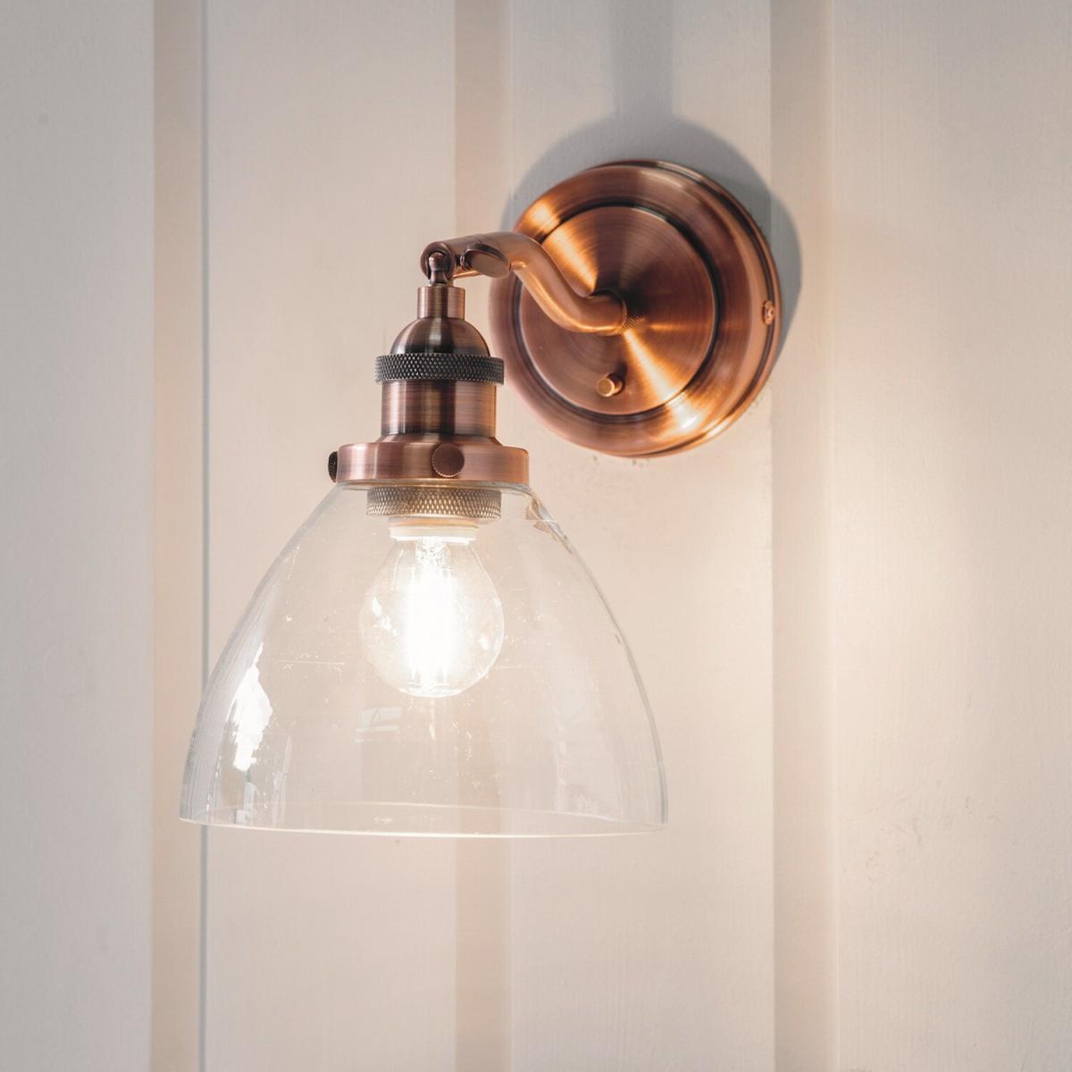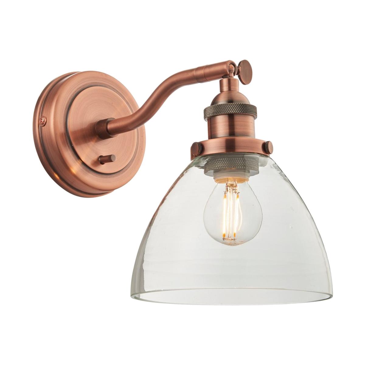 Hansen 1 Light Wall Glass Aged Copper Plate E14 - Clear Glass