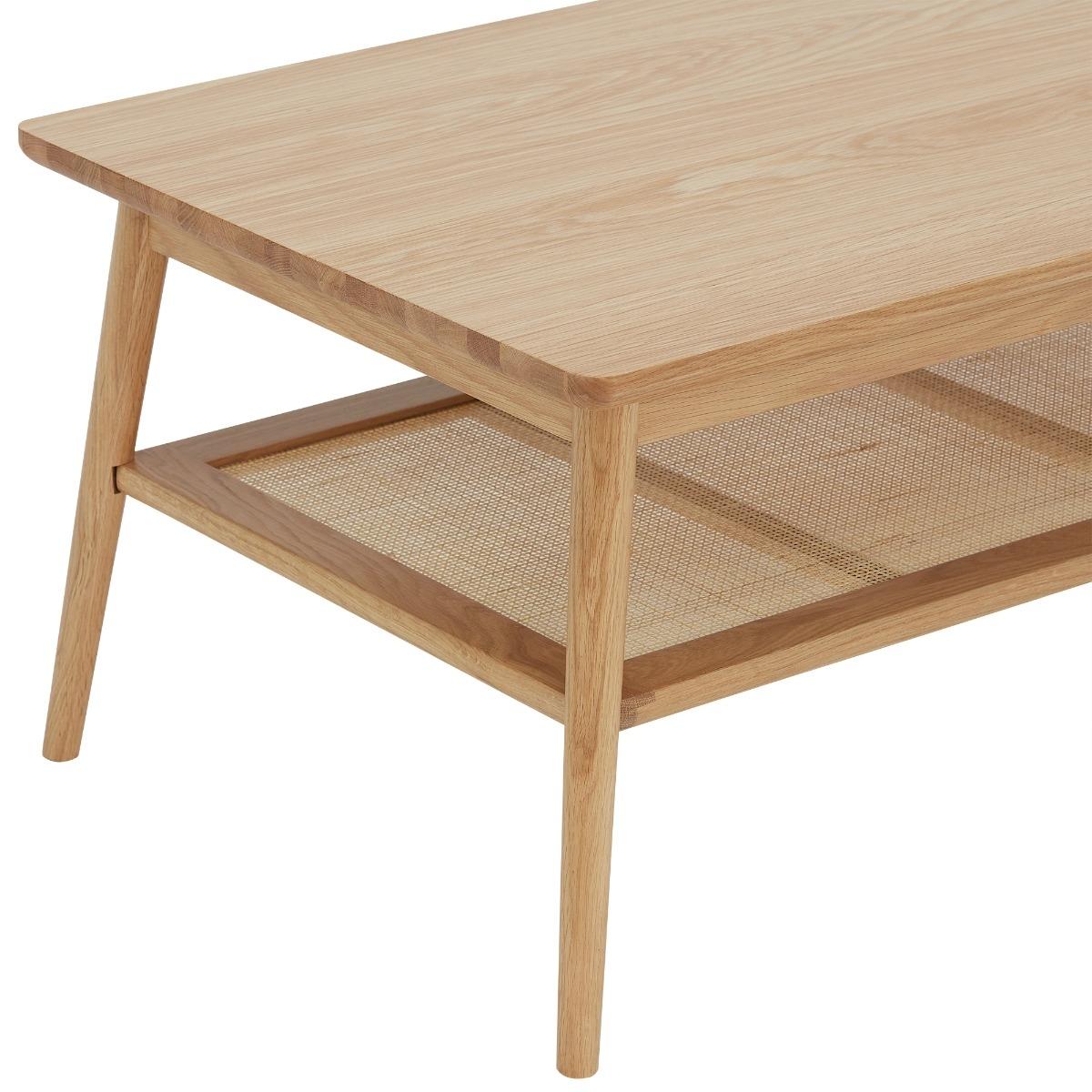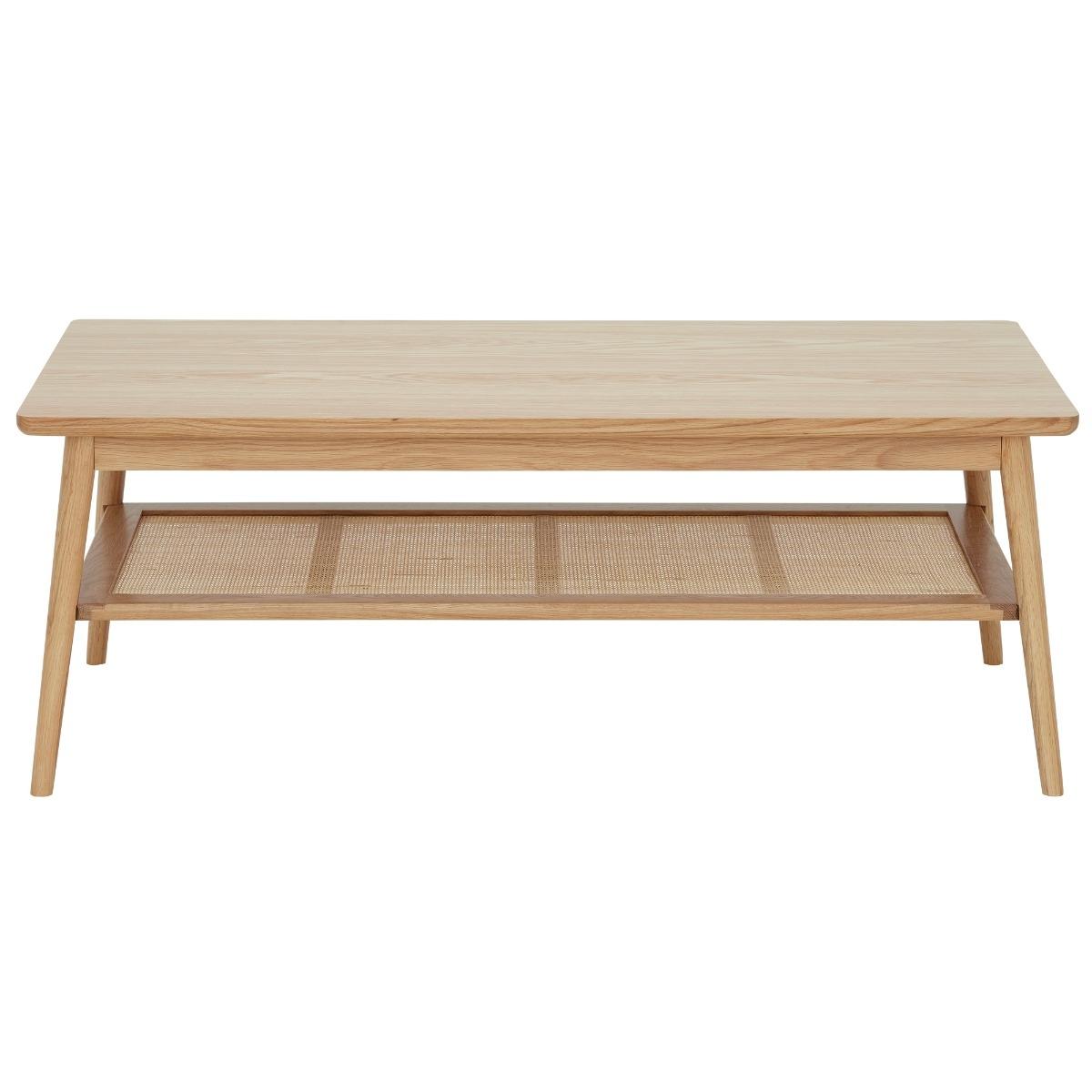 Design. The Hansen Coffee Table is simplistic yet stylish, with its subtle natural oak wood which is a perfect fit in both traditional and modern living spaces. Featuring a rattan detail shelf for a touch of nature, this handy feature is the perfect place to store magazines and remote controls. Pair the Hansen Coffee Table with other furnishing from the Hansen range for a cohesive finish to your room.