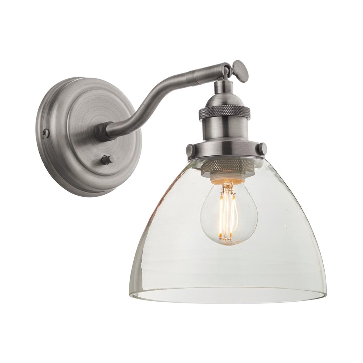 An authentic 'resto' style adjustable wall light, finished in brushed silver paint with authentic knurled lamp holder details and clear glass shades. Featuring an adjustable knuckle and accessible onoff switch, pair this wall light with filament LED lamps for that perfect industrial style. The perfect addition for today's stylish homes to create that on trend bar, bistro look.