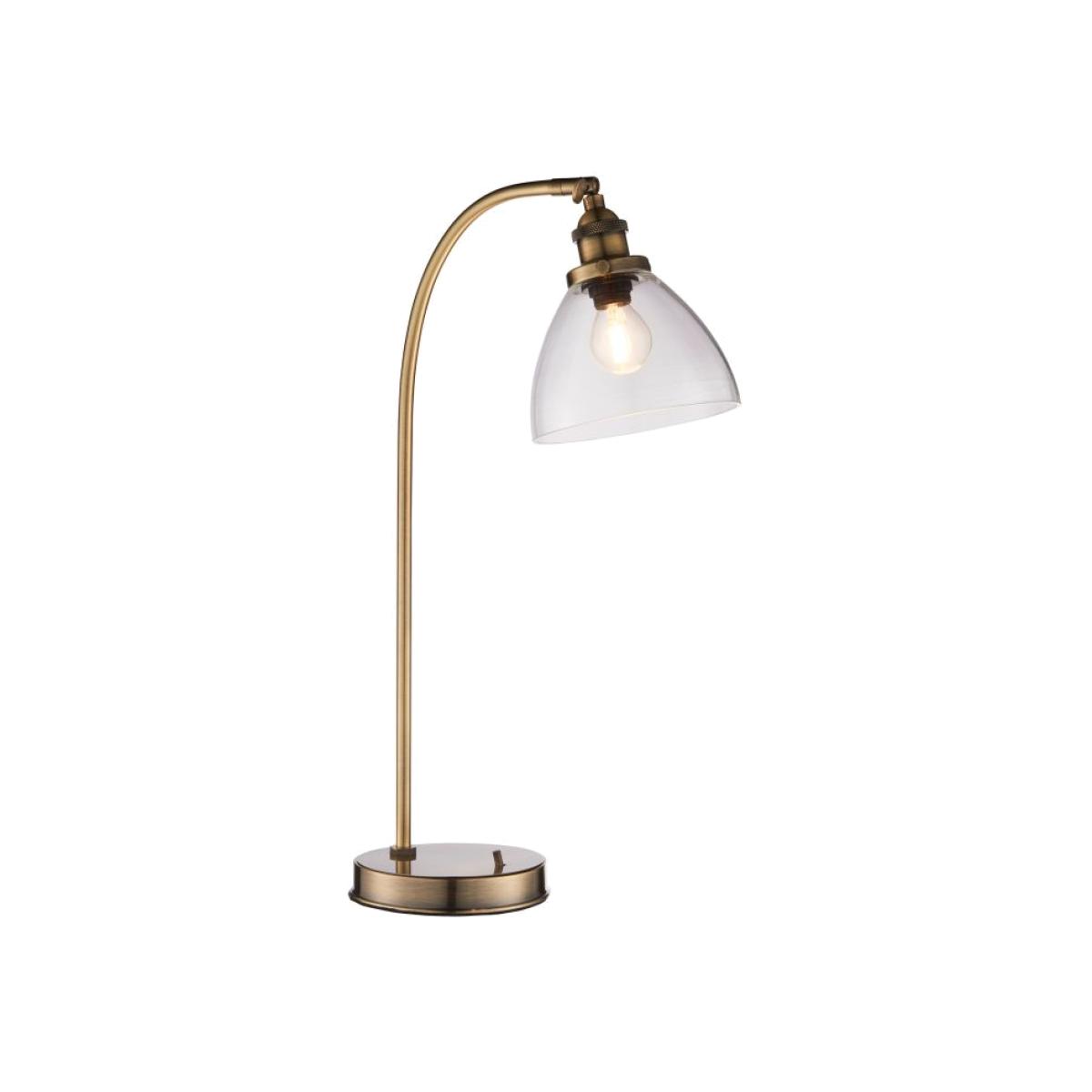 An authentic 'resto' style adjustable table light, finished in antique brass plating with authentic knurled lamp holder details and clear glass shades. Featuring an adjustable knuckle and accessible on/off switch, pair this table light with filament LED lamps for that perfect industrial style. The perfect addition for today's stylish homes to create that on trend bar, bistro look.
