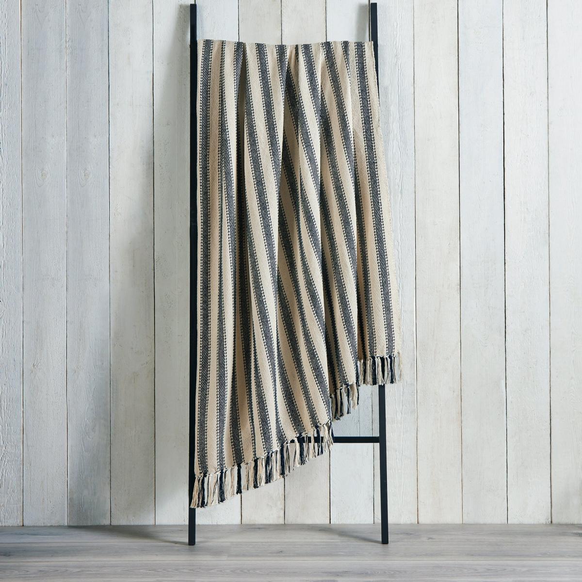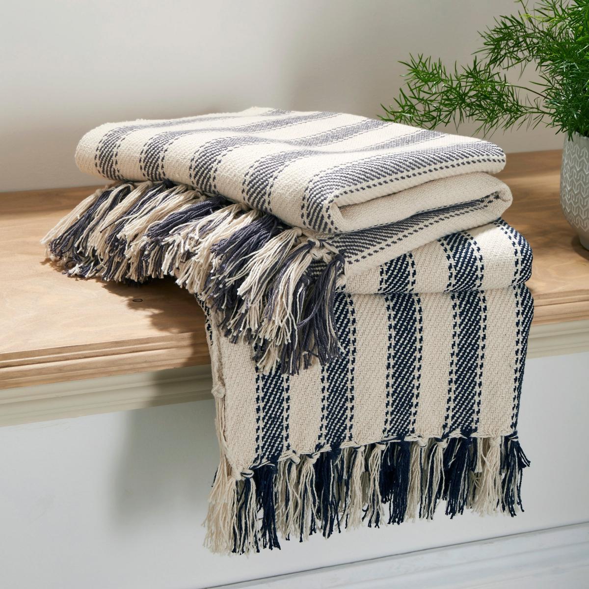This stunning hand-woven throw has a stylish design, tasselled edges and modern colourway, complementing an array of home decors beautifully. Made from recycled polyester and cotton, this throw is also available in other colours. Our throws are not flame retardant and are therefore not suitable as loose covers on upholstered furniture.
