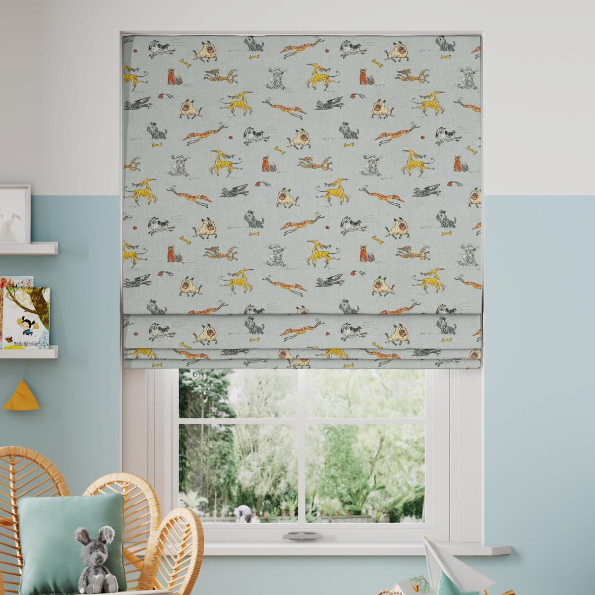 The Happy Hounds Roman Blinds features a quirky, animated dog theme design made from 100% cotton. A web exclusive design, you won't find this in stores! Choosing your lining: Choosing your fitting type:; Choosing which side you’d like the operating chain: Need help deciding or measuring? Book a free appointment with one of our consultants! Child Safety: We add clips to the back of our roman blinds to attach the cords to the fabric. They also double up as a child safety feature. If pressure is exerted the clips will detach to prevent the risk of strangulation. Please read our Blinds Safety Guide for more information. If the clips detach accidentally during normal use, they can be easily re-clipped back into place. Online Only: This product is only available to order online. Our expert virtual consultants can provide advice on measuring/fitting and style tips and our free samples can be ordered online to be delivered straight to your home to help you choose a fabric that's right for you. Once you're happy, simply place your order online and we'll do the rest.