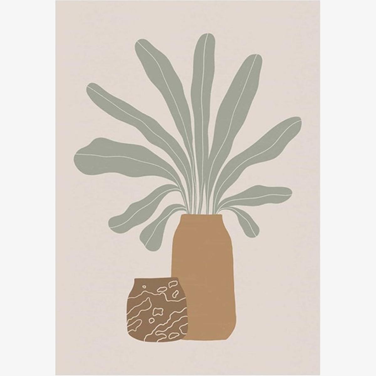 I love this botanical print for its simple, modern aesthetic and versatility. It works particularly well in minimalist or Scandi-inspired interiors, adding a touch of nature without overwhelming the space. The neutral colours make it easy to incorporate into various colour palettes, and its A1 size makes it a statement piece for a blank wall or above a sideboard. For styling, consider pairing it with some real houseplants or natural textures like wooden or woven accessories to enhance its organic feel. It's ideal for bringing a calm, inviting vibe to living rooms, bedrooms, or even home offices. To keep it looking sharp, opt for sleek framing or lean it casually against a wall for a more relaxed look.