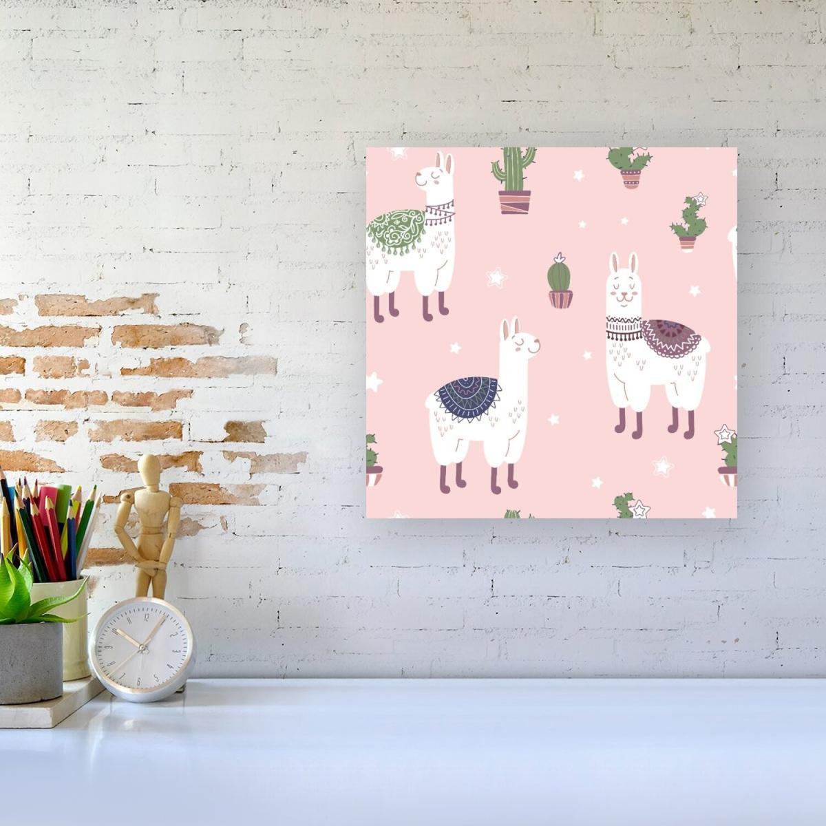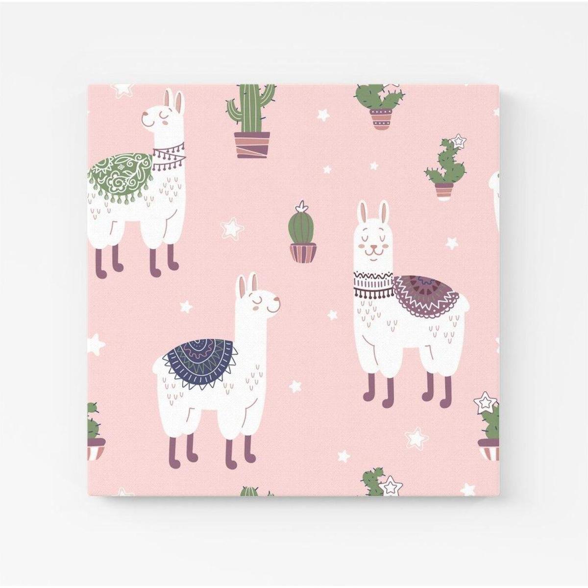 Happy Lama Canvas Print - Pink / Medium