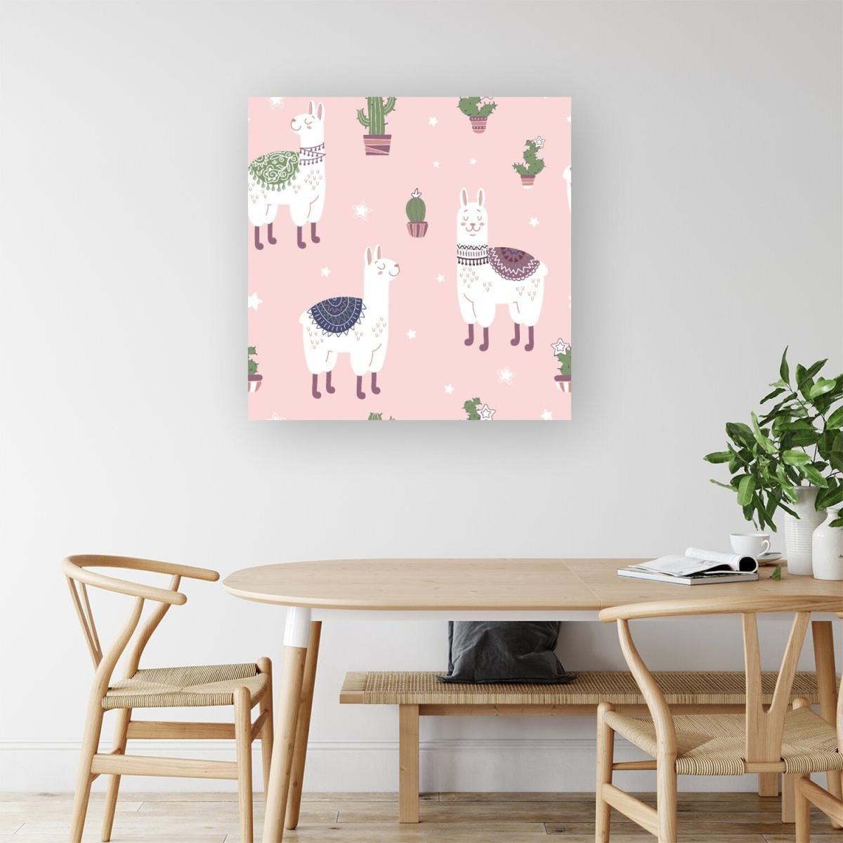 I love the bright and playful vibe of this llama canvas print in pink - it’s a perfect way to add a pop of colour and a touch of fun to any room. It works particularly well in children’s bedrooms, playrooms, or even in a contemporary living space that embraces quirky art. For styling, consider pairing it with neutral backgrounds to let the print stand out, or combine it with other pastel accessories for a cohesive look. Hanging it at eye level above a piece of furniture like a bed or a sofa can help it become a focal point. Keep framing simple or go frameless for a modern edge - it’s a versatile piece that can lift the mood of any interior effortlessly.
