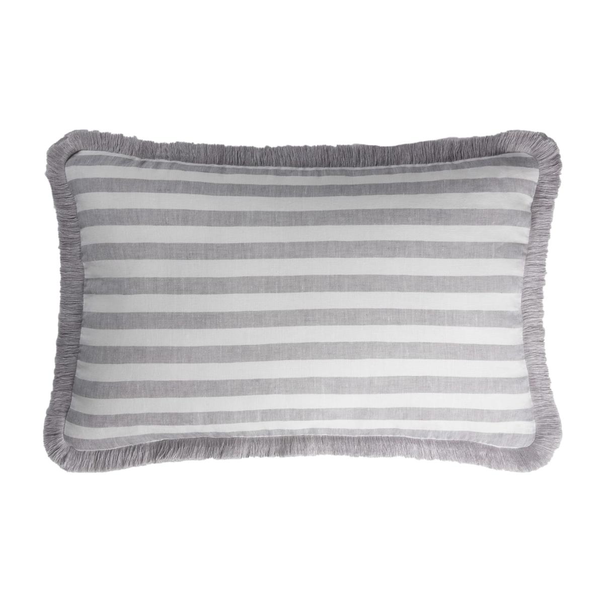 LO DECOR | Happy Linen Pillow the perfect accent piece for an easy style update, this cushion makes a chic accent for any well-decorated home, adding charm to a bed, sofa, or your favorite armchair. Crafted of pure Italian linen, refined with sophisticated cotton fringes, LO DECOR Linen collection is available in both plain and striped colorsboth with its delicate hues and details with understated glamour. Warm colors, exquisite craftsmanship, and elegant materials are the hallmarks of these cushions which will be a refined addition to both a classic and contemporary decor. Removable cover. Care Instructions: Dry Wash Handmade in Italy