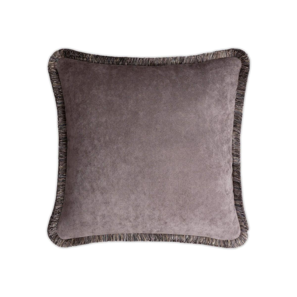 This elegant cushion cover was carefully hand-sewn with soft, grey velvet and contoured by a prestigiuos multicolour cotton fringe. A sophisticated addition to a classic or contemporary sofa alike, it can be paired with a twin for a coordinated statement or with cushions in different designs for an eclectic set and lavish look. Handmade and realized in Italy with high quality and performing fabric - cloudy velvet - that can be easily washed at 40° , mantaining its style and quality.