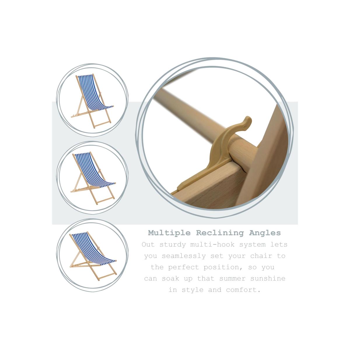 Bring a taste of traditional British seaside glamour to your back garden this summer with Harbour Housewares' range of Adjustable Reclining Folding Wooden Deck Chairs. The timeless design of rectangular canvas stretched over a wooden frame has remained unchanged since the deckchair's heyday of the early 20th Century - these are no relics, however, as the materials used in these loungers have been carefully sourced to ensure these chairs' suitability and durability in the modern world. The wooden frame is crafted from FSC certified natural beech, ensuring maximum strength and durability, while the 100 woven polyester canvas has been given a hydrophobic coating, ensuring quick drying even after a summer downpour. The canvas can also be removed and is machine washable for hassle-free cleaning. Adjustable to 3 reclining positions using the incorporated hooks on the back legs, these deck chairs offer fantastic flexibility, guaranteeing comfort from all angles. With a huge variety of colours available, the Harbour Housewares range of Adjustable Reclining Wooden Garden Deck Chairs is sure to be your perfect summer sunshine companion from Blackpool to Bestival from Southend-on-Sea to Skegness. Shop the range today.