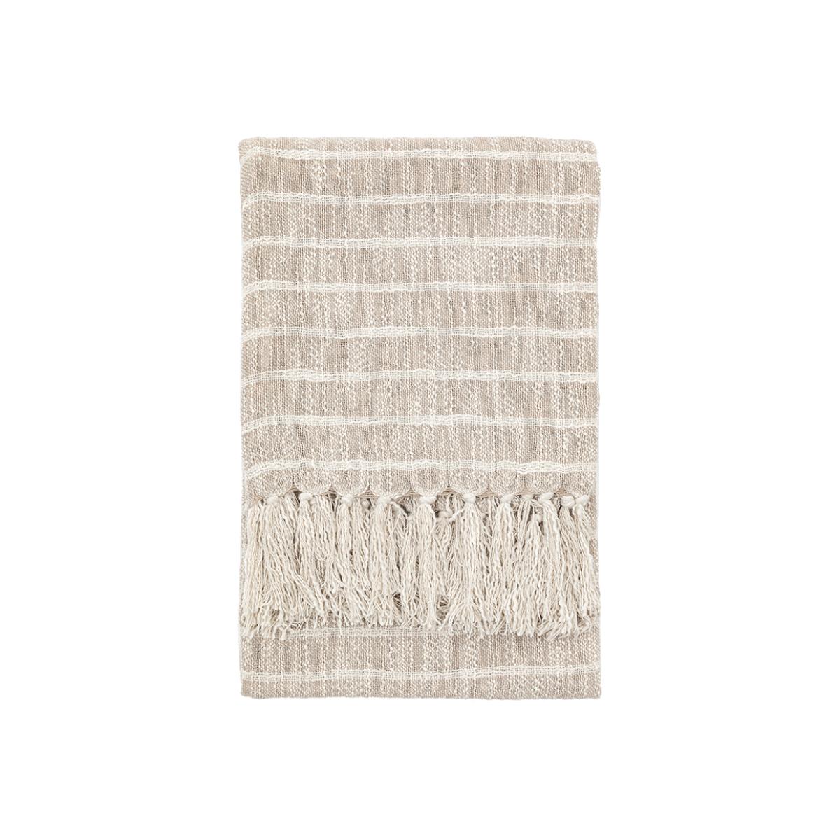 I love this throw for its versatile and relaxed look, making it a great addition to both contemporary and coastal schemes. The neutral sand colour and subtle stripe pattern work well with a variety of colour palettes, adding warmth without overpowering the room. It’s perfect draped over the arm of a sofa or layered on a bed for easy, tactile texture. For practical styling, consider pairing it with natural materials like wicker or rattan furniture, or layering it alongside other soft furnishings in similar tones to create a cohesive, inviting space. Its lightweight nature makes it ideal for seasonal use, ensuring your decor stays looking effortless yet considered.