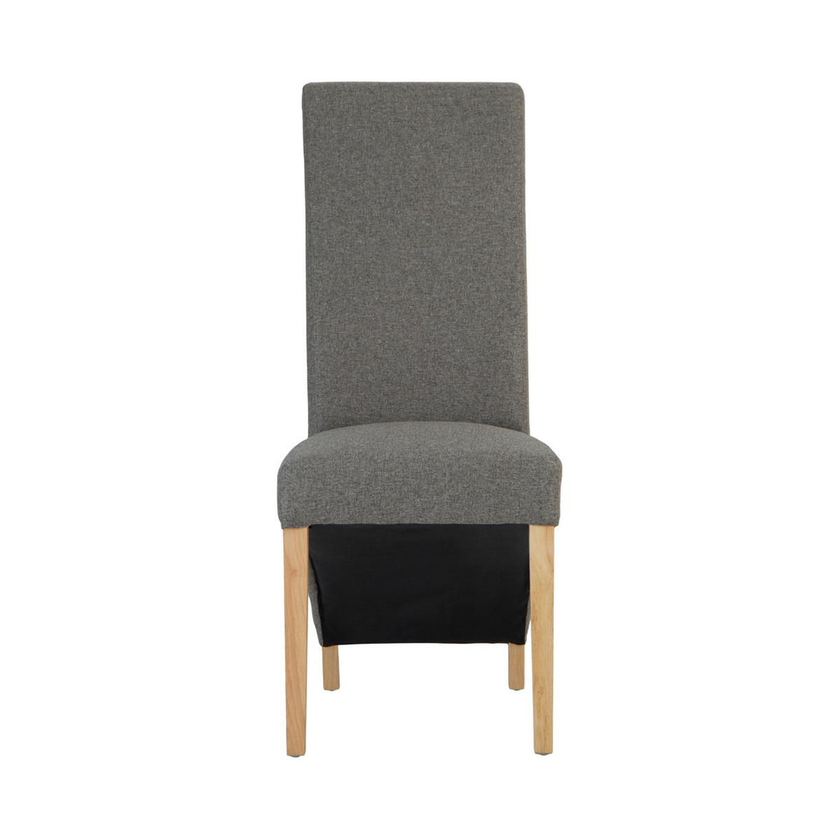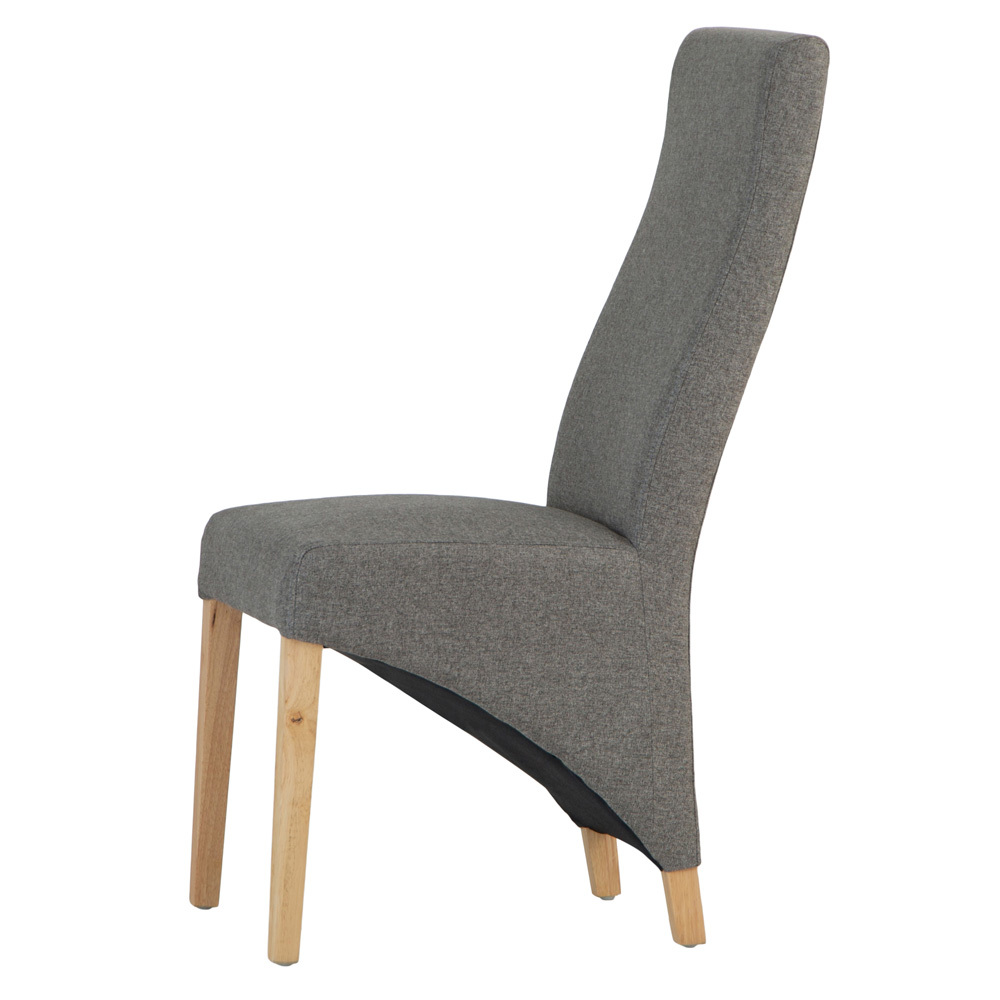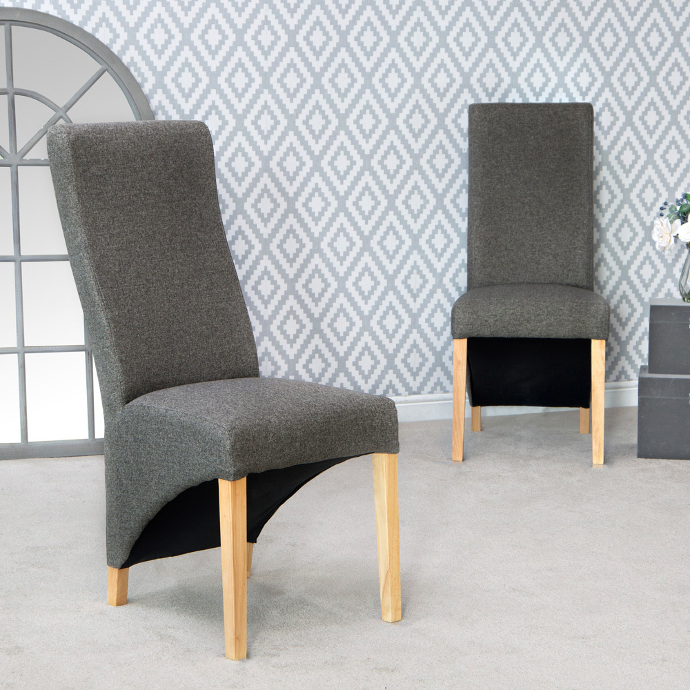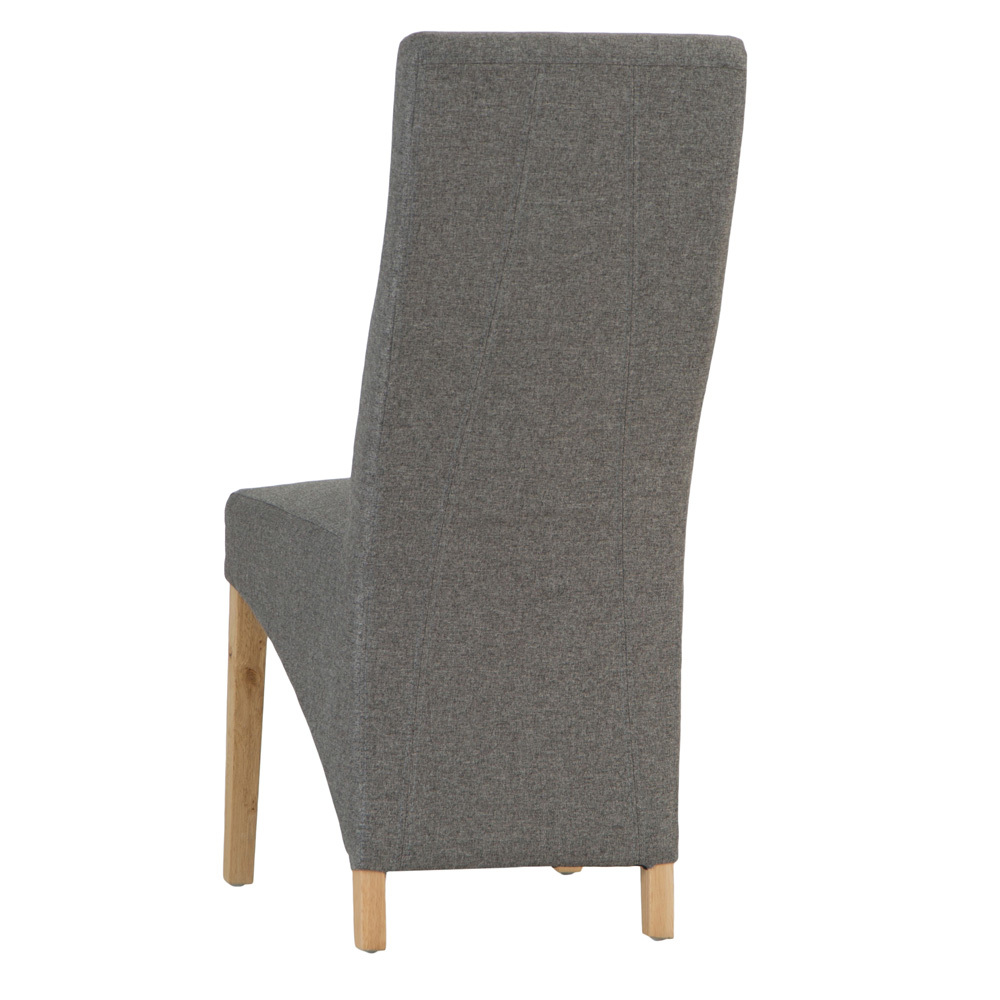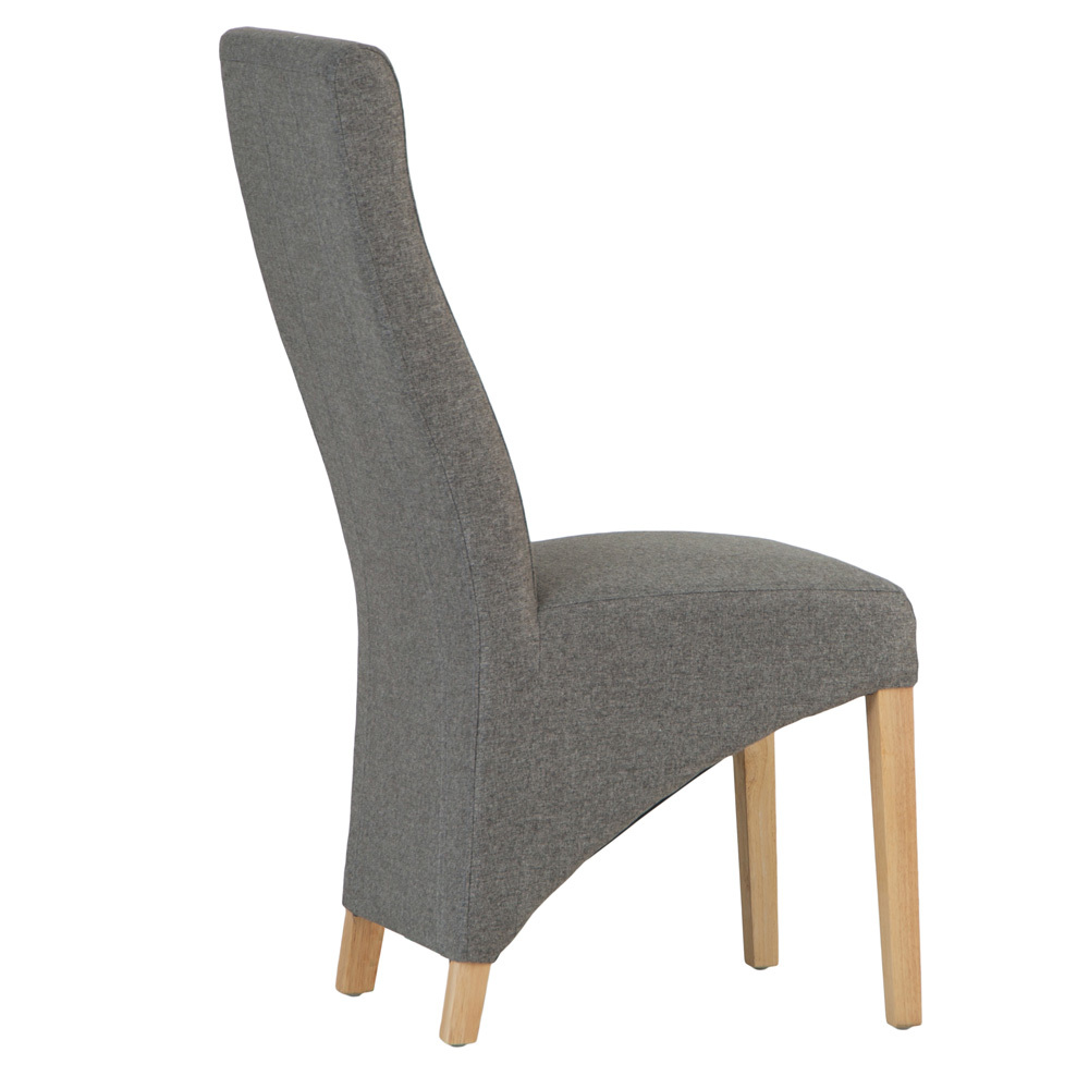 I love this chair for its versatile design and contemporary appeal. The dark grey upholstery adds a sophisticated touch, making it suitable for both modern and transitional dining spaces. Its wave-back detail offers a subtle detail that elevates the overall look without overpowering. This chair works well in interiors with neutral palettes, but it can also provide a sleek contrast against lighter or pastel tones. Practical styling tips include pairing it with a wooden or glass dining table for a clean aesthetic, or using colourful textiles like cushions or runners to add personality. Its neutral colour and elegant shape make it a flexible choice that can adapt easily to different interior styles.