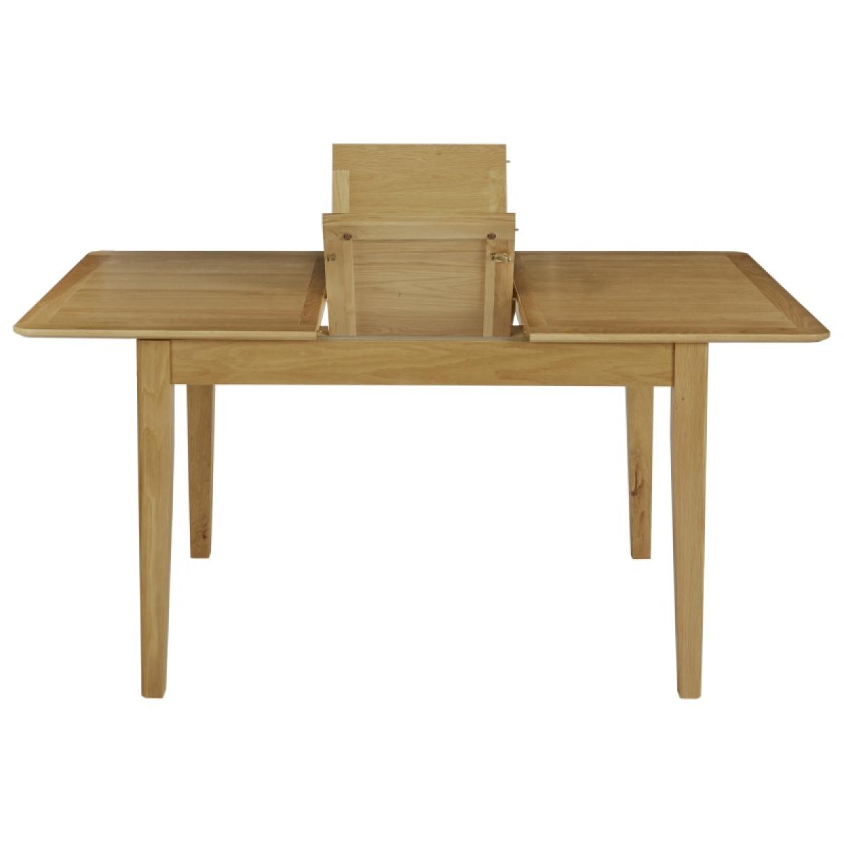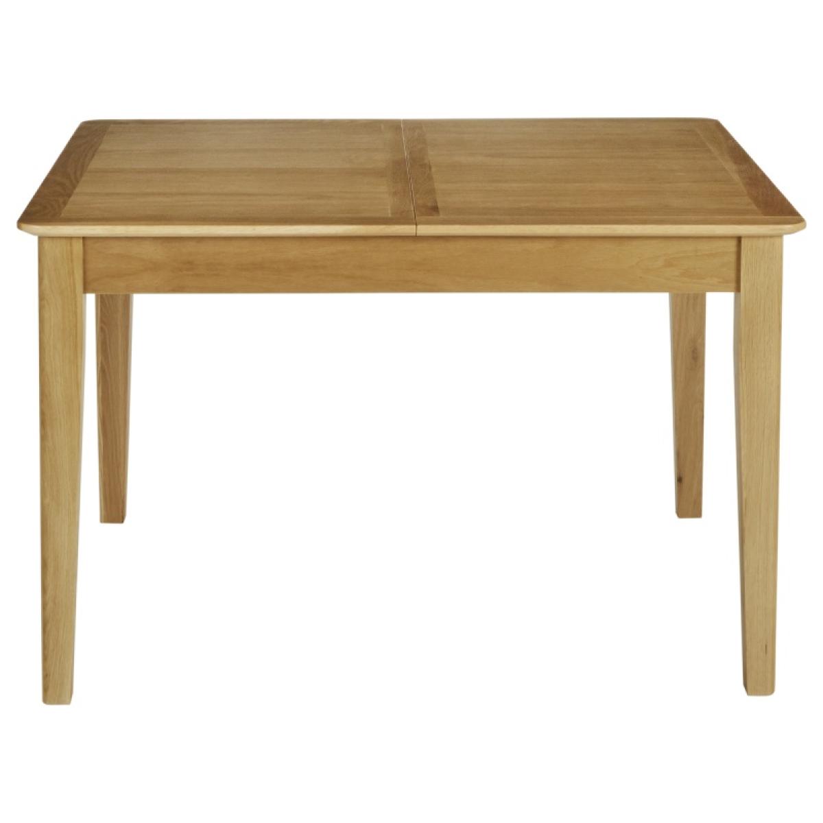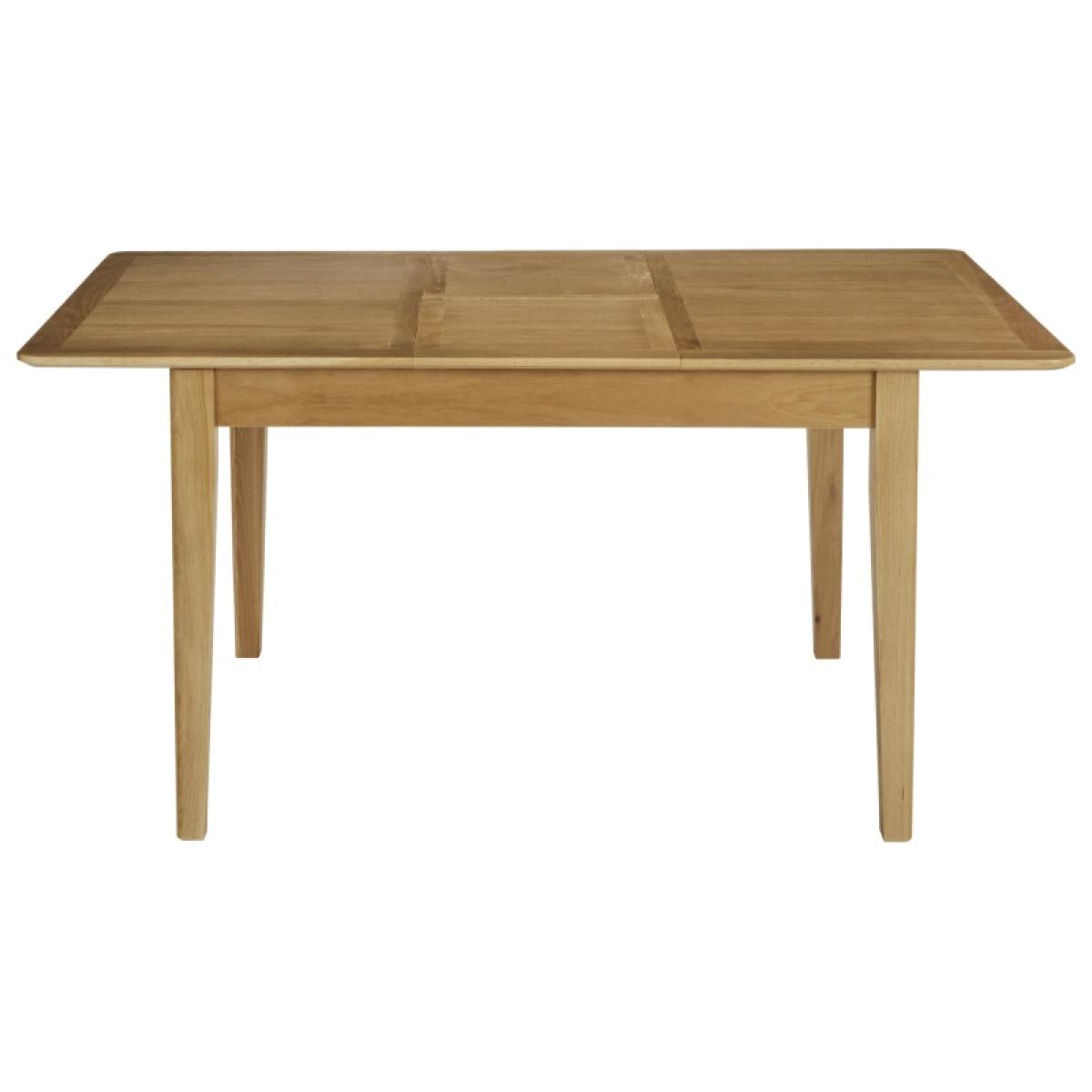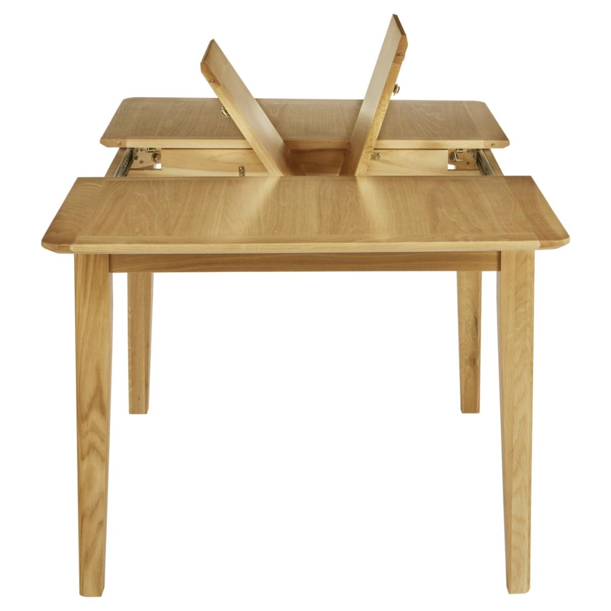 The Hardwick Oak Compact Extending Dining. Table is perfect for saving space, making it ideal for smaller homes. The Hardwick Oak Compact Extending Dining Table is the ultimate combination of smart design and timeless style, crafted to fit seamlessly into any modern or classic home. Whether you’re hosting an intimate dinner or accommodating unexpected guests, this table offers the perfect solution. It features a simple, easy-to-operate leaf mechanism that provides extra tabletop surface space for guests. Constructed from solid oak with a pale oak finish, it is protected from accidental knocks and scratches. The curved corners and tapered legs enhance the beauty of the range. Features: Solid Oak Wood Pale Oak Finish Satin Silver Handles Butterfly Leaf Extension Curved Corners and Tapered Legs Matching furniture available Easy to Clean Assembly Required Specifications: W 120-160cm x D 95cm x H 76cm. All screens vary in colour reproduction and whilst every effort has been made to display the colour as accurately as possible it is for guidance only