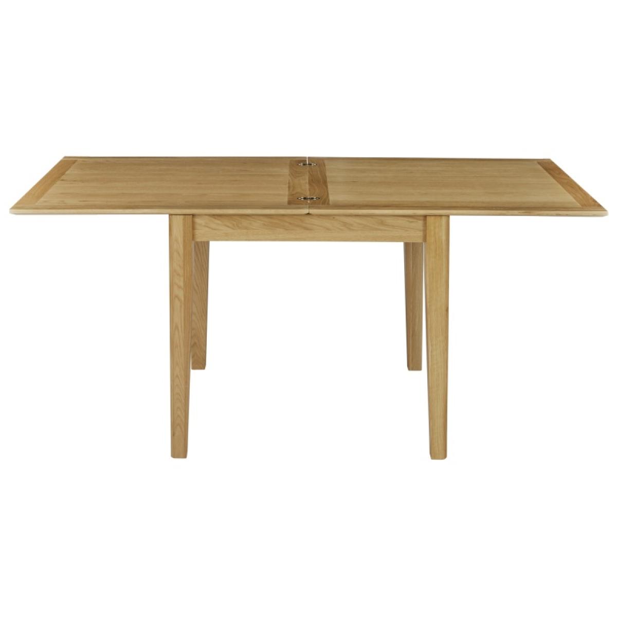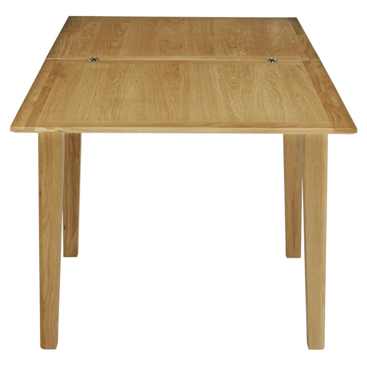 The Hardwick Oak Flip Top Dining Table is beautifully designed and will look fantastic in your dining room. It features a flip-top leaf that extends the table, providing extra space for additional guests. Constructed from solid oak with a pale oak finish, it is protected from accidental knocks and scratches. The curved corners and tapered legs enhance the range's beauty. This dining table is ideal for large homes or flats, accommodating 4 to 6 people, making it perfect for family use. Features: Solid Oak Wood Pale Oak Finish Flip Top Table Extension Curved Corners and Tapered Legs Matching furniture available Easy to Clean Assembly Required Dimensions: Width: 85-170cm Depth: 85cm Height: 75cm All screens vary in colour reproduction and whilst every effort has been made to display the colour as accurately as possible it is for guidance only