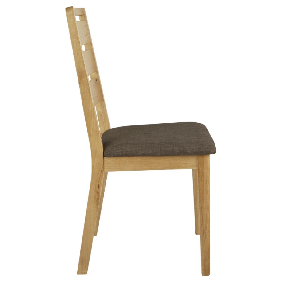 The Hardwick Oak Ladder Back Dining Chair is a sturdy and attractive addition to your home. Crafted from beautiful solid oak with a pale oak finish, it features a fabric-upholstered padded seat and a ladder-back design for maximum comfort and support. The chair is supported by four feet for stability and to prevent floor scratches. It's easy to clean and the padded seat is perfect for long meals. The chair comes either fully assembled or flat-packed for self assembly.  Features: Choose between a fully assembled or flat-packed chair Solid Oak Wood  Pale Oak Finish Curved Corners and Tapered Legs Matching furniture available Easy to Clean Dimensions: Width: 46cm Depth: 56.6m Height: 100cm All screens vary in colour reproduction and whilst every effort has been made to display the colour as accurately as possible it is for guidance only