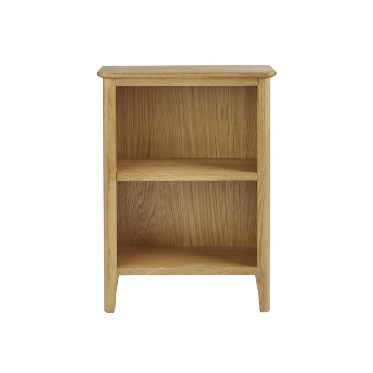 This Hardwick Oak Small Bookcase is a relaxed, modern oak bookcase that exudes elegance with its clean lines and gentle curves. Finished in a natural lacquer, the tops are durable, providing plenty of stylish and flexible storage options.  Features: Oak Wood & Veneer Pale Oak Finish Matching furniture available Easy to clean Assembly required Dimensions: Width: 60cm Depth: 26cm Height: 80cm All screens vary in colour reproduction and whilst every effort has been made to display the colour as accurately as possible it is for guidance only.