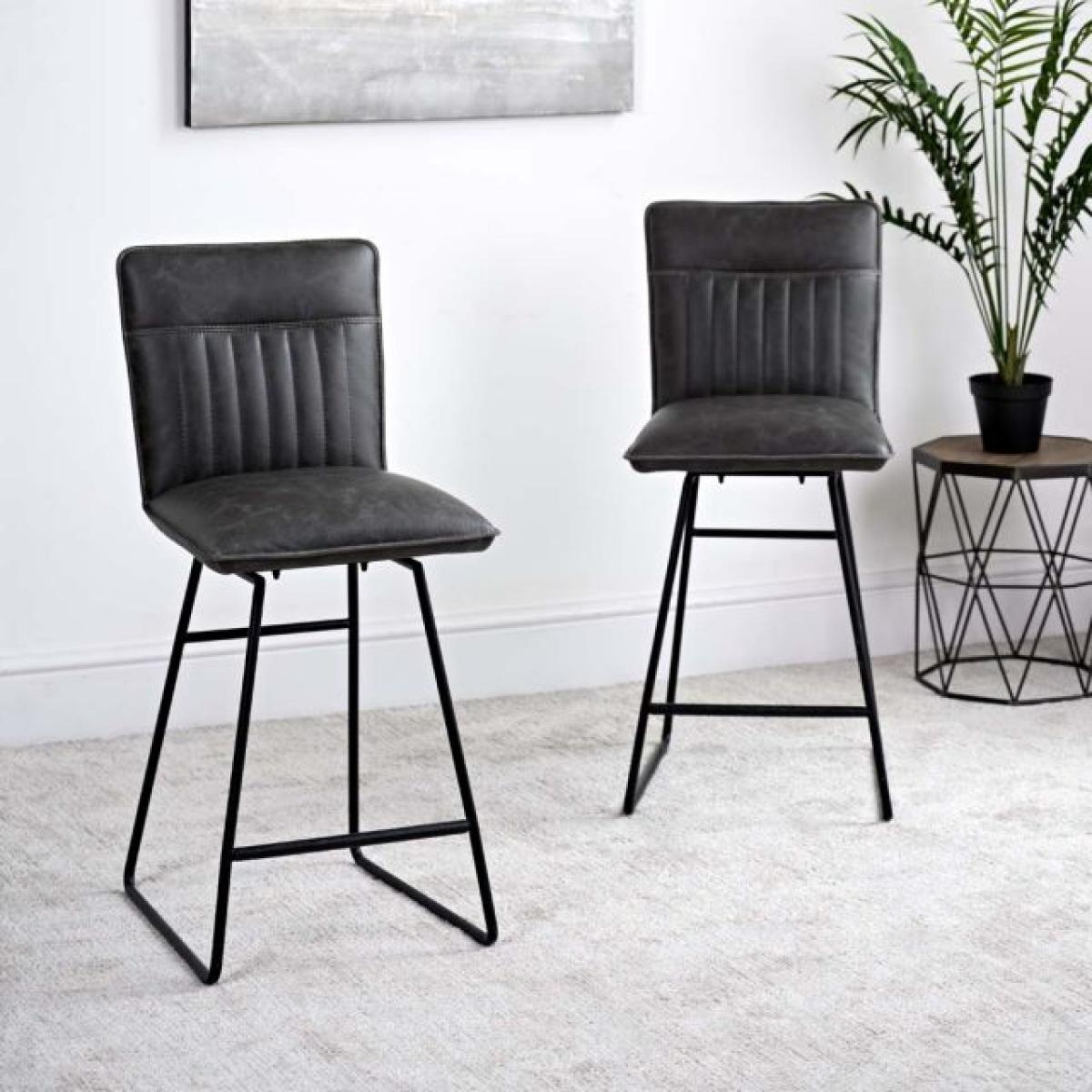 Bring some supreme comfort into your dining or entertainment room with the modern Hardy bar stool. The chair features an upholstered faux leather seat in a classic design with a textured panel. The stool includes a twist function to allow you to turn in your chair with ease. Dimensions: W44cm x D52.5cm x H98cm Simple self assembly. Sold a pair
