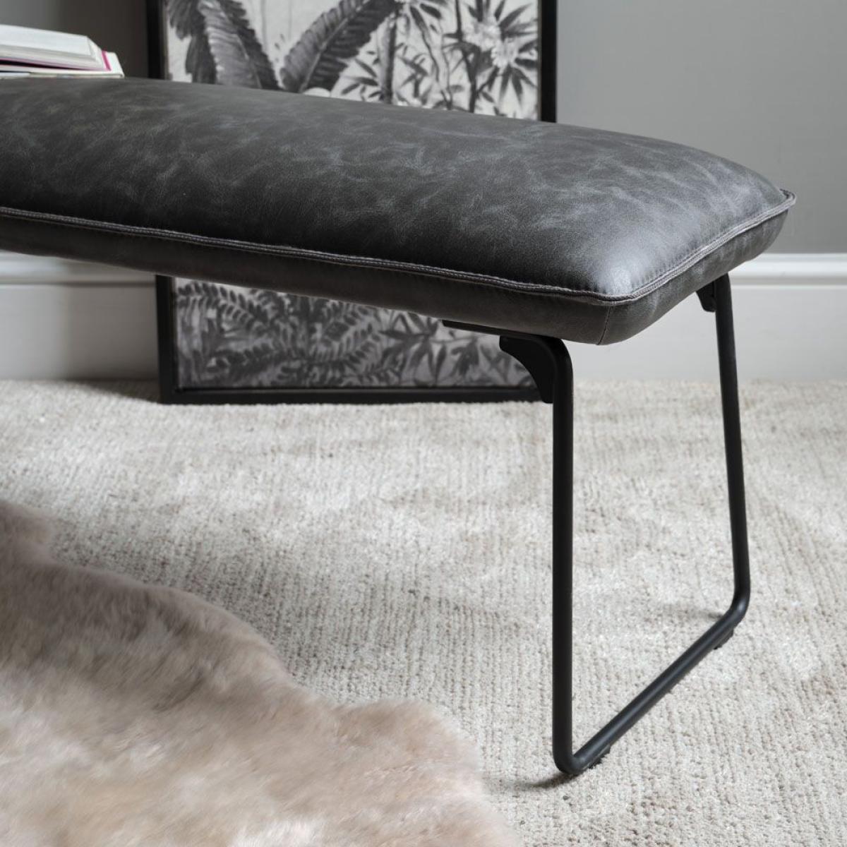 The Hardy low bench in grey can be used a dining bench but also as an occasional bench in any part of the home. With a padded seat made of quality faux leather and metal legs in a black finish it is a great modern seating option. Dimensions: W120cm x D40cm x H49.5cm Simple self assembly