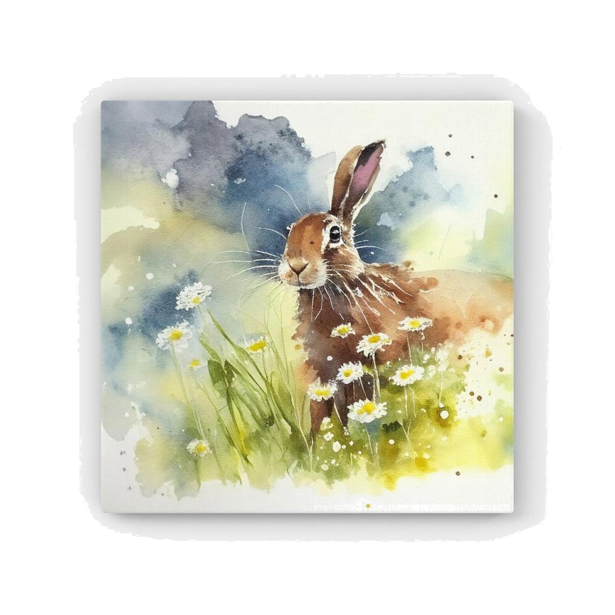 Hare And Daisies Watercolour HD Metal Print - Brown / 30cm