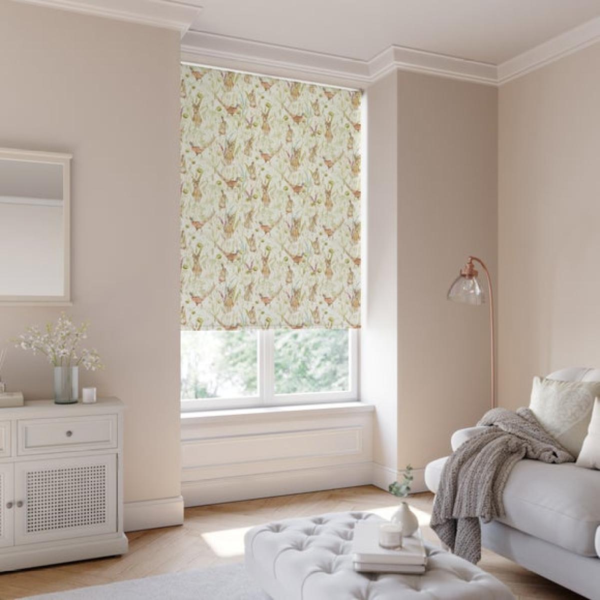 Get 15% off selected Made to Measure blinds when you buy Made to Measure curtains and blinds together. *Use code M2M15OF F (Ts & Cs apply). * Hare and pheasant print design * Blackout * Fire Retardant (complies to BS5867 Section 2, Type B) * 100% recycled polyester * Choose fitting type, chain side, chain colour, and roll direction * Supplied with all fixings for simple installation Adding a delightful touch of farmhouse, country style to your decor, the Hare and Pheasant Fire Retardant Blackout roller blind features a beautiful print design of hares and pheasants amongst greenery and botanicals. Crafted from blackout lined and fire retardant recycled polyester, the fabric provides complete light control and privacy for a cosy and inviting ambience. Ideal for kitchens, bedrooms, and living rooms. For a bespoke fit, choose a side for the operating chain, chain colour, fitting type, and roll direction. Supplied with all fixings, you can install this blind in no time. Please note: The actual blind fabric will be approximately 35mm narrower than the overall blind width, this is to accommodate the brackets and operating mechanism.