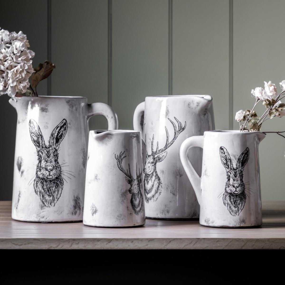 This hare design pitcher adds a touch of country charm to your home. Made from ceramic, it has a distressed white finish. Perfect for using as a vase to showcase your florals. Available in 2 sizes. Size - Medium Dimensions - W 180 x D 150 x H 225mm Colour - Distressed Material - Ceramic