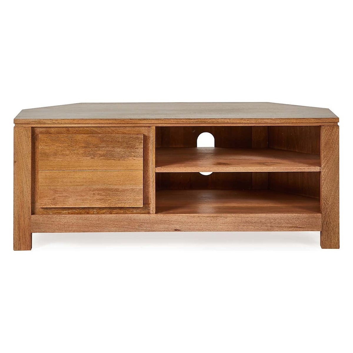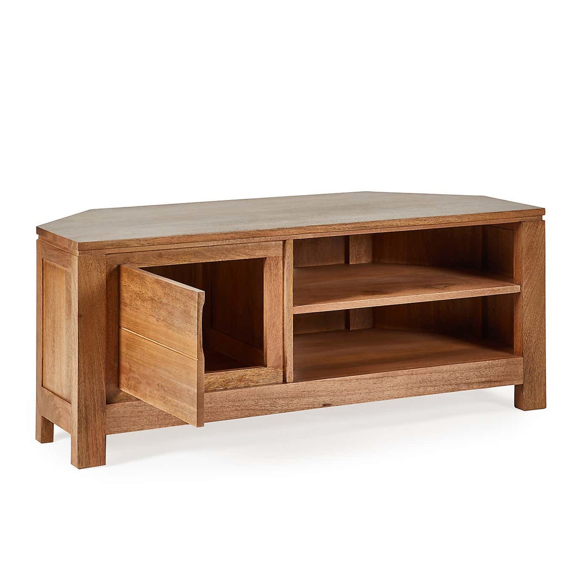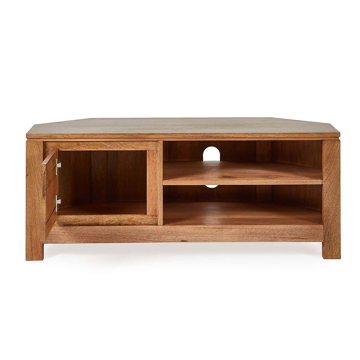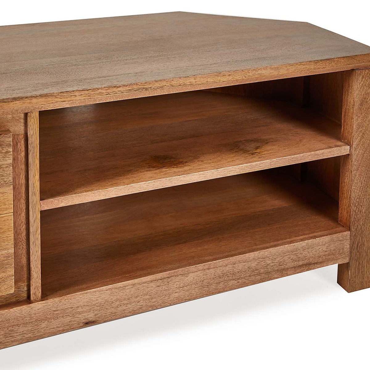 I love this TV rack for its warm, natural finish which adds a cosy, inviting feel to living rooms. Its simple yet functional design makes it versatile for various interior styles, from contemporary to rustic schemes. It works particularly well in spaces that emphasise natural materials and understated aesthetics. For styling tips, consider pairing it with neutral-toned accessories or greenery to enhance its organic vibe. Keep clutter at bay by using decorative baskets or trays on top or within the open shelves, and balance it with taller or textured decor items to create visual interest. This piece's sturdy construction and open storage make it practical while maintaining a relaxed, stylish look.