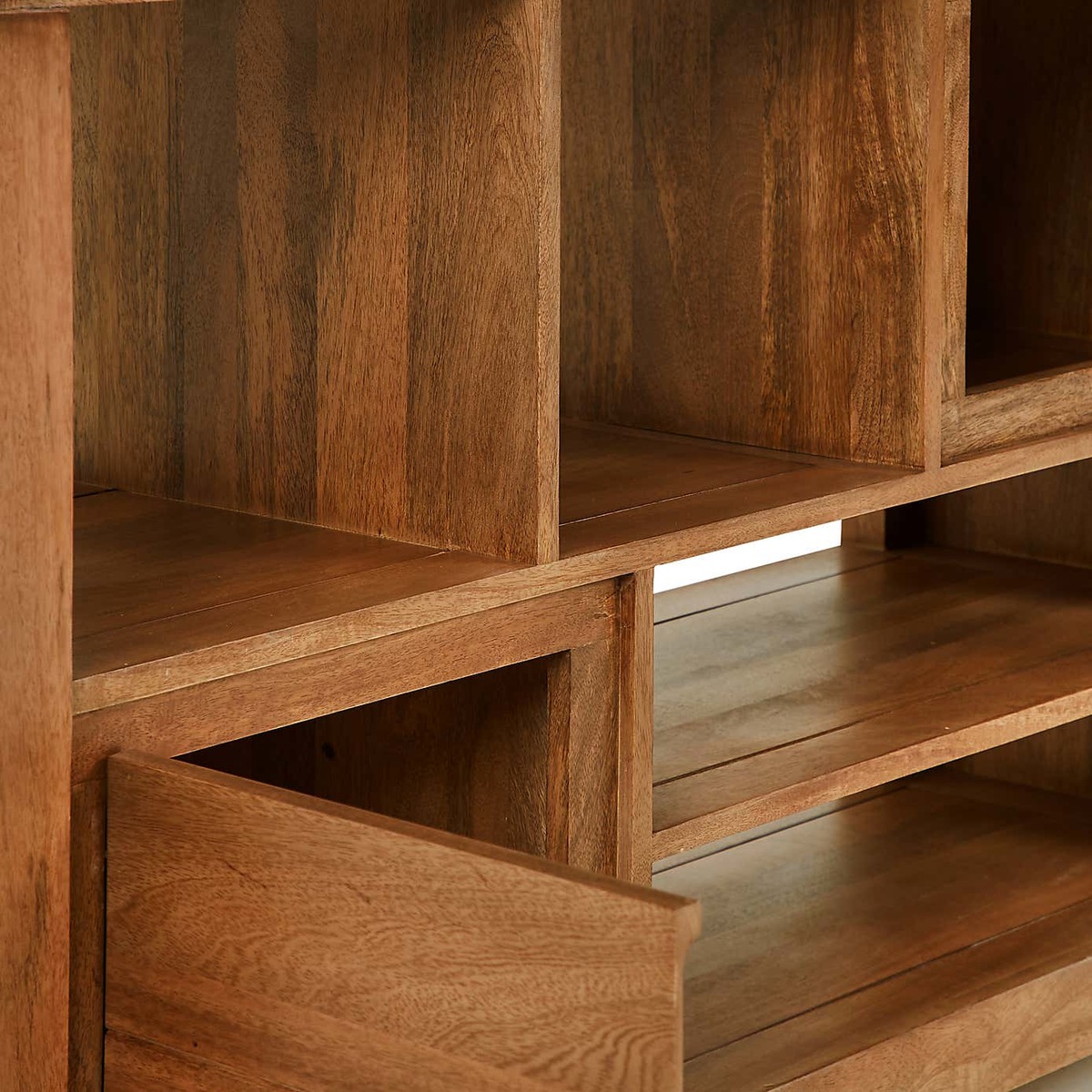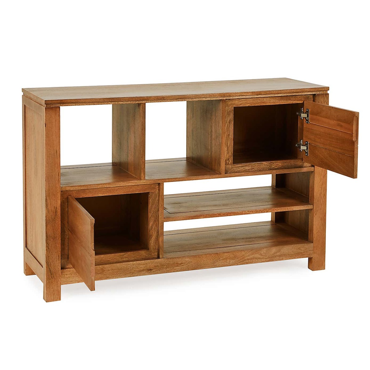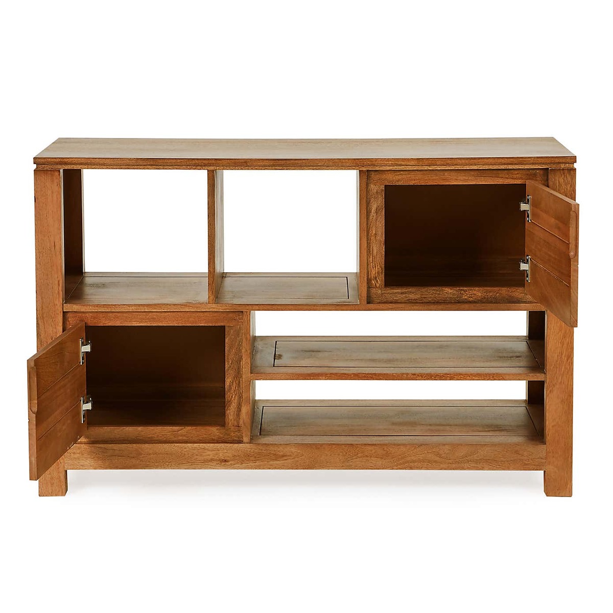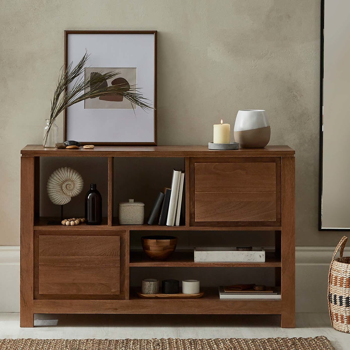 I really like this piece because of its simple, functional design and warm wood tone, making it versatile for various interiors. It works particularly well in both contemporary and rustic-style spaces, such as living rooms, hallways, or even bedrooms as additional storage. Practical styling tips include using the open shelves to display books, decorative bowls, or plants, while keeping the closed compartments for tidier storage. Its neutral hue blends easily with other wood accents or contrasting colours, making it a flexible staple for creating a cosy yet organised look.