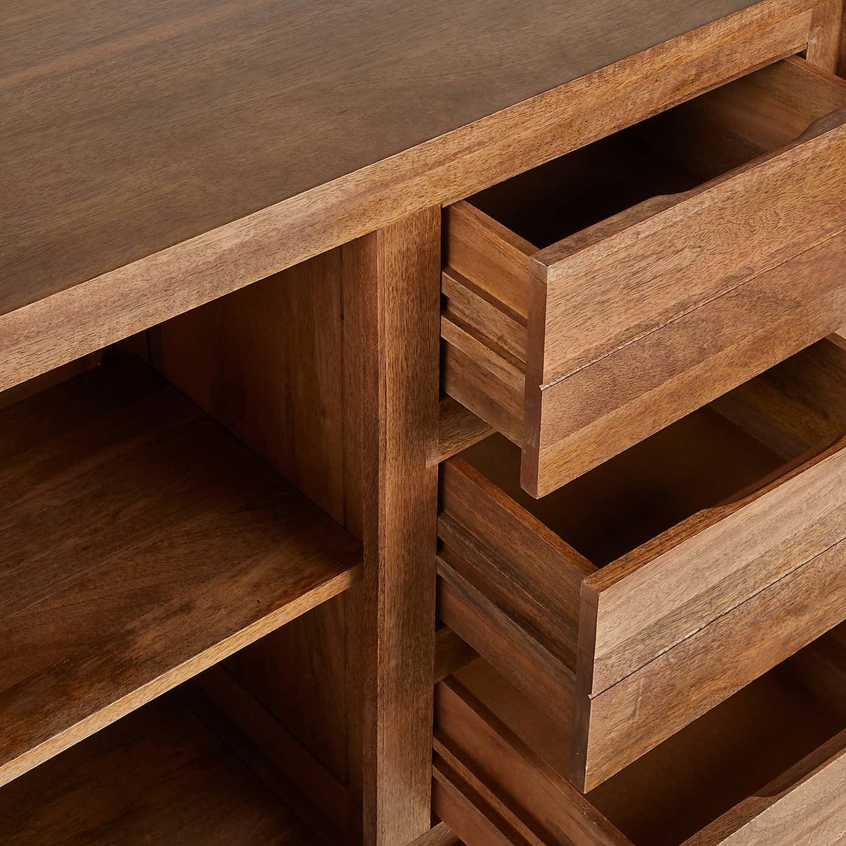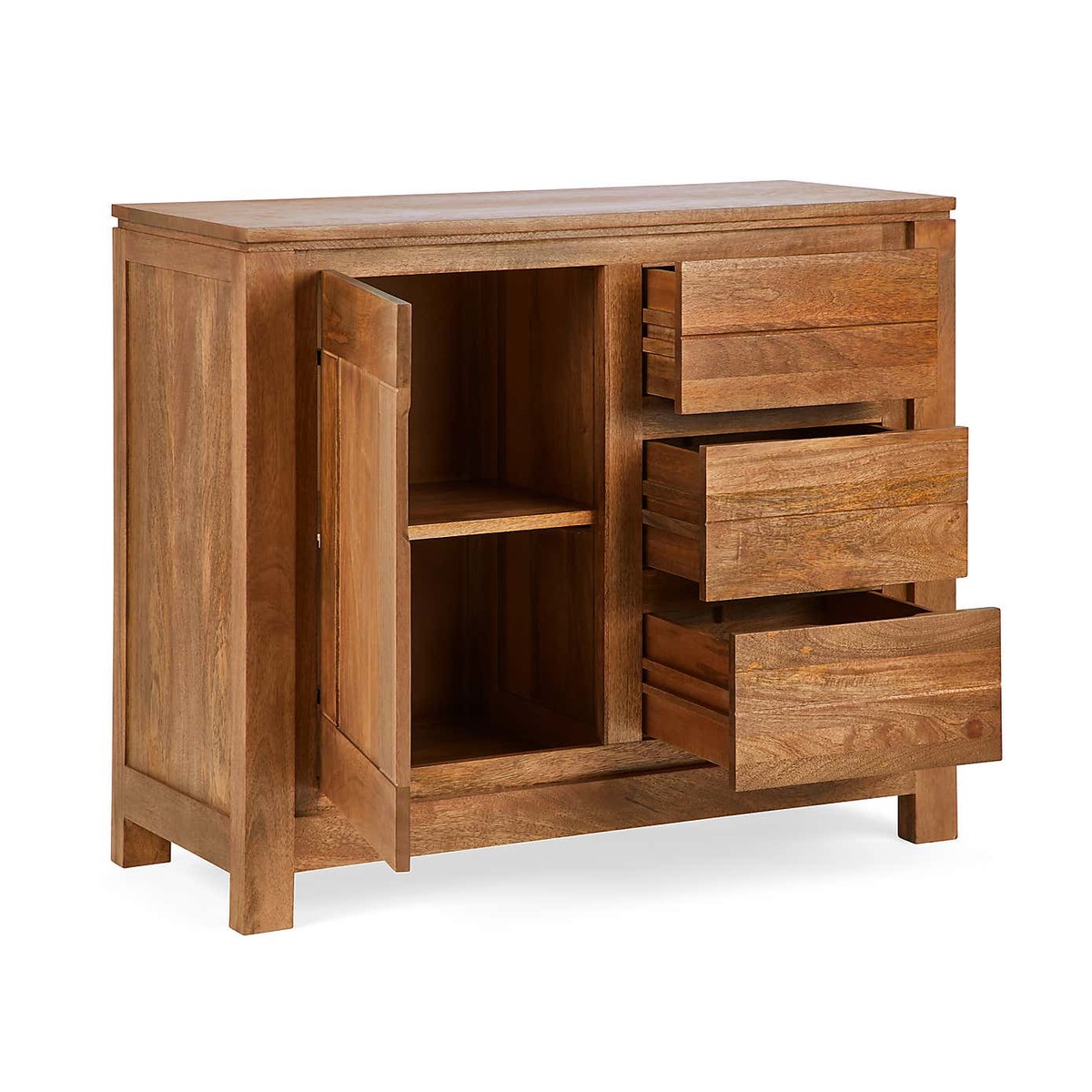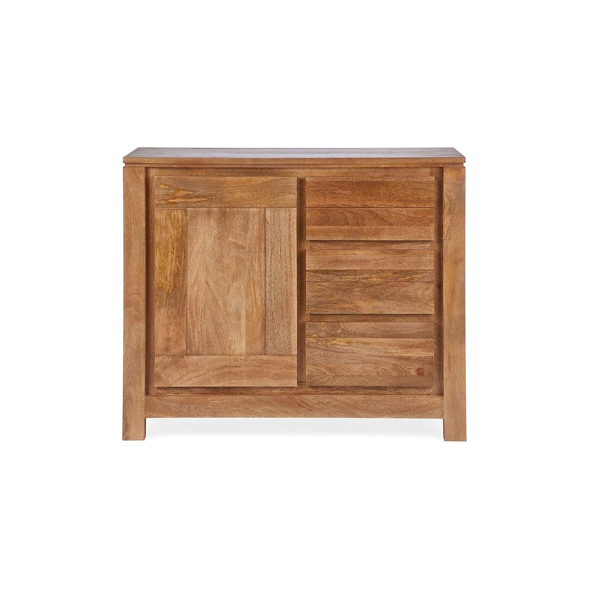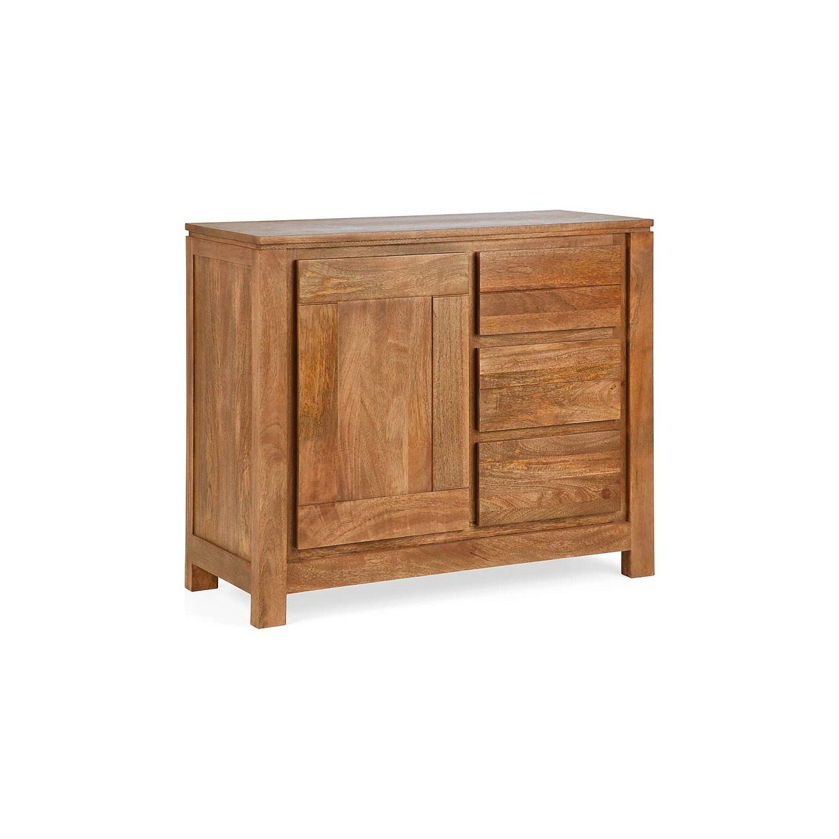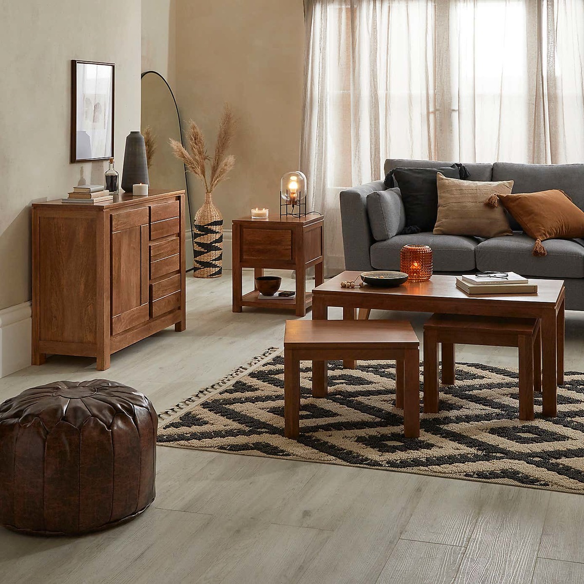 I love this sideboard’s warm, natural finish which makes it versatile for a range of interiors, from classic coastal schemes to contemporary urban spaces. Its compact size and clean lines make it a practical addition, perfect for use in dining rooms, living areas, or even as a stylish storage piece in bedrooms. To style it effectively, consider layering with decorative elements like a tray for organising keys or remote controls, or placing some statement tableware or plants on top to add personality. Its wooden construction ensures it adapts well to both neutral tones and more colourful, eclectic interiors, making it a reliable and charming choice for various settings.