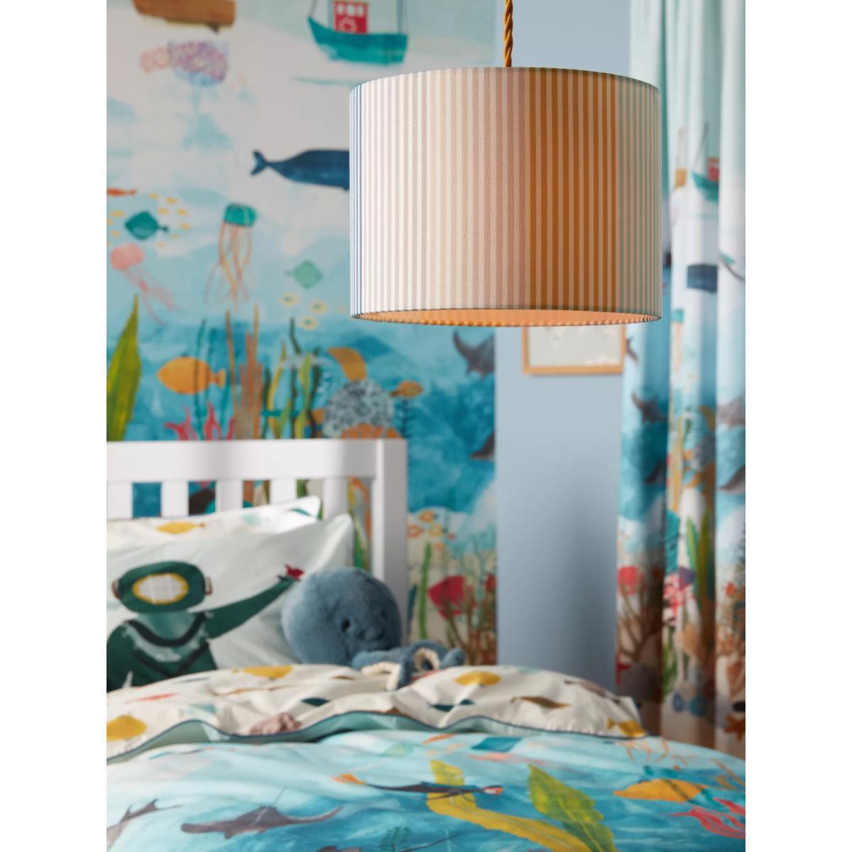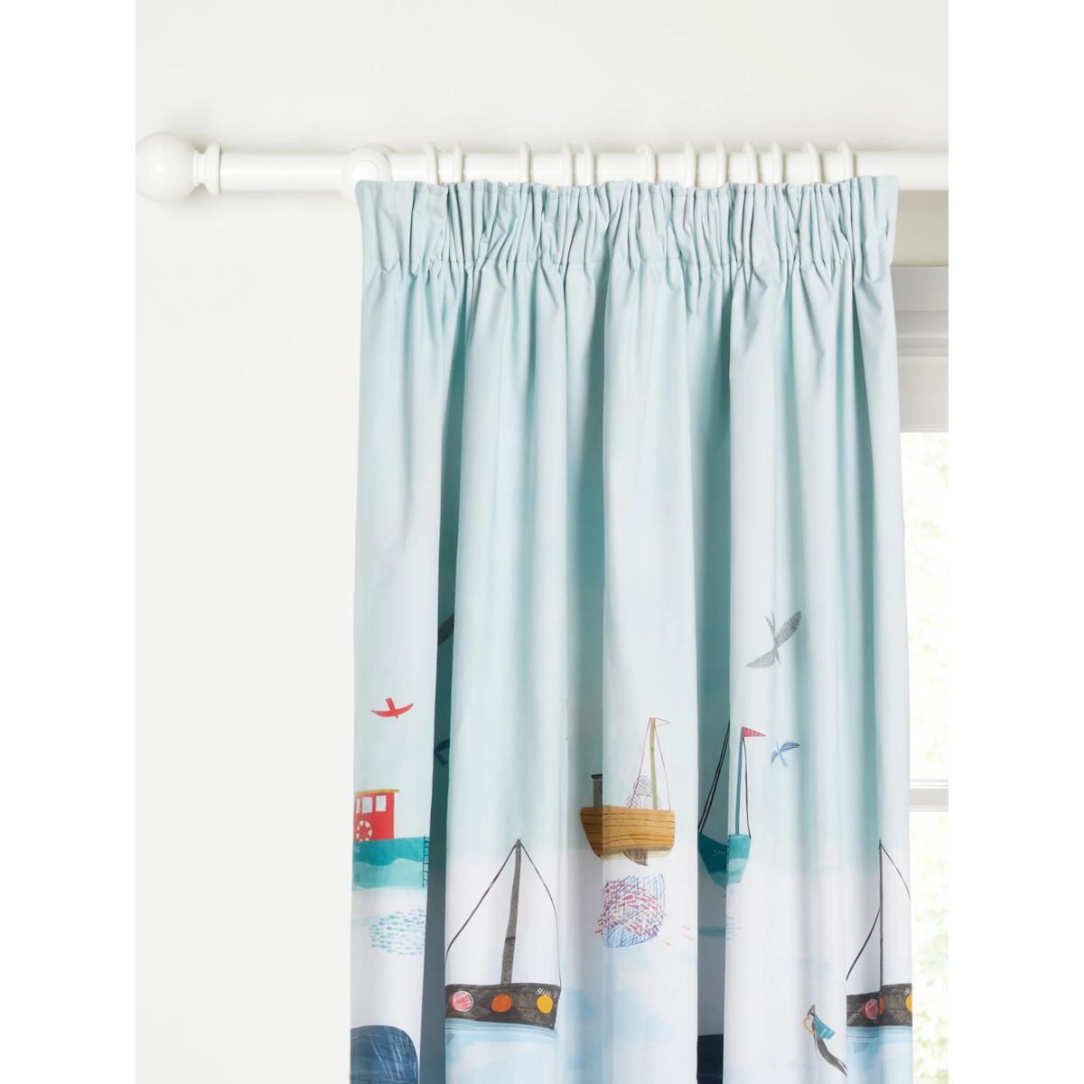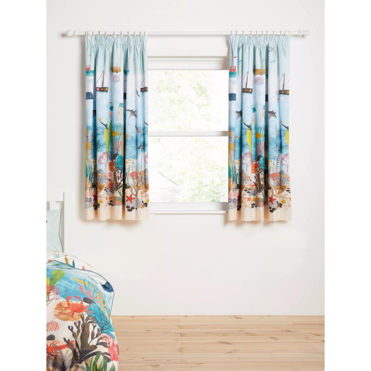 Made from pure cotton, this pair of children's curtains features the Above and Below print, that's been specially created for us by Harlequin. It's a nautical themed print that will fill their space with colour. There's also a blackout lining that helps to block out distracting sun beams or street lights and the pencil pleat design gives them a smart appearance when hung. The width dimension refers to the width of each individual curtain in the pair. By buying cotton products from John Lewis & Partners, you're supporting more sustainable cotton farming through the Better Cotton Initiative. BCI is a not-for-profit organisation which exists to make global cotton production better for the people who produce it, better for the environment it grows in, and better for the sector's future. BCI works with partners around the world such as WWF, Solidaridad and Cotton Connect to train farmers to produce cotton more sustainably. Better Cotton is sourced via a principle of "mass balance" and is not physically traceable to end products. However, BCI Farmers benefit from the demand for Better Cotton in equivalent volumes to those we source. Do you need a curtain pole and accessories? Shop.