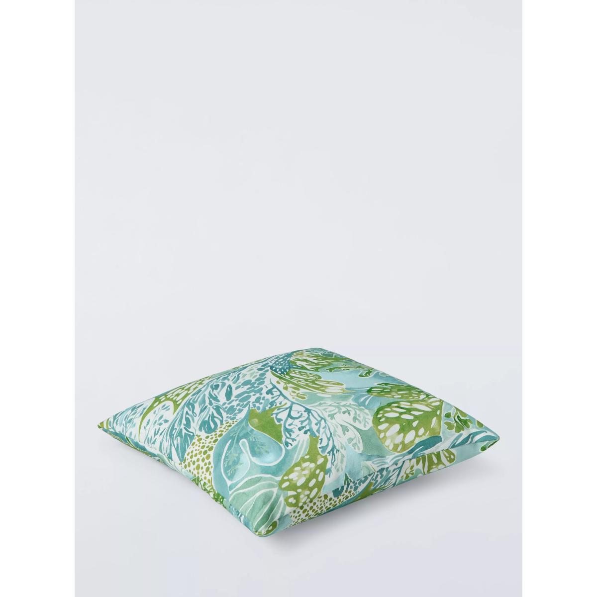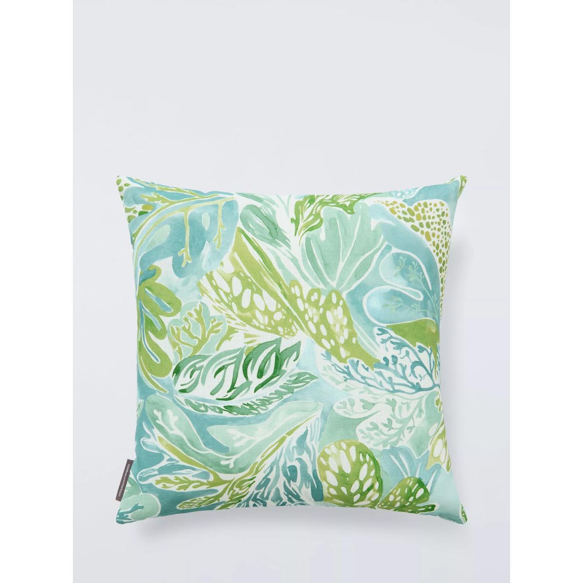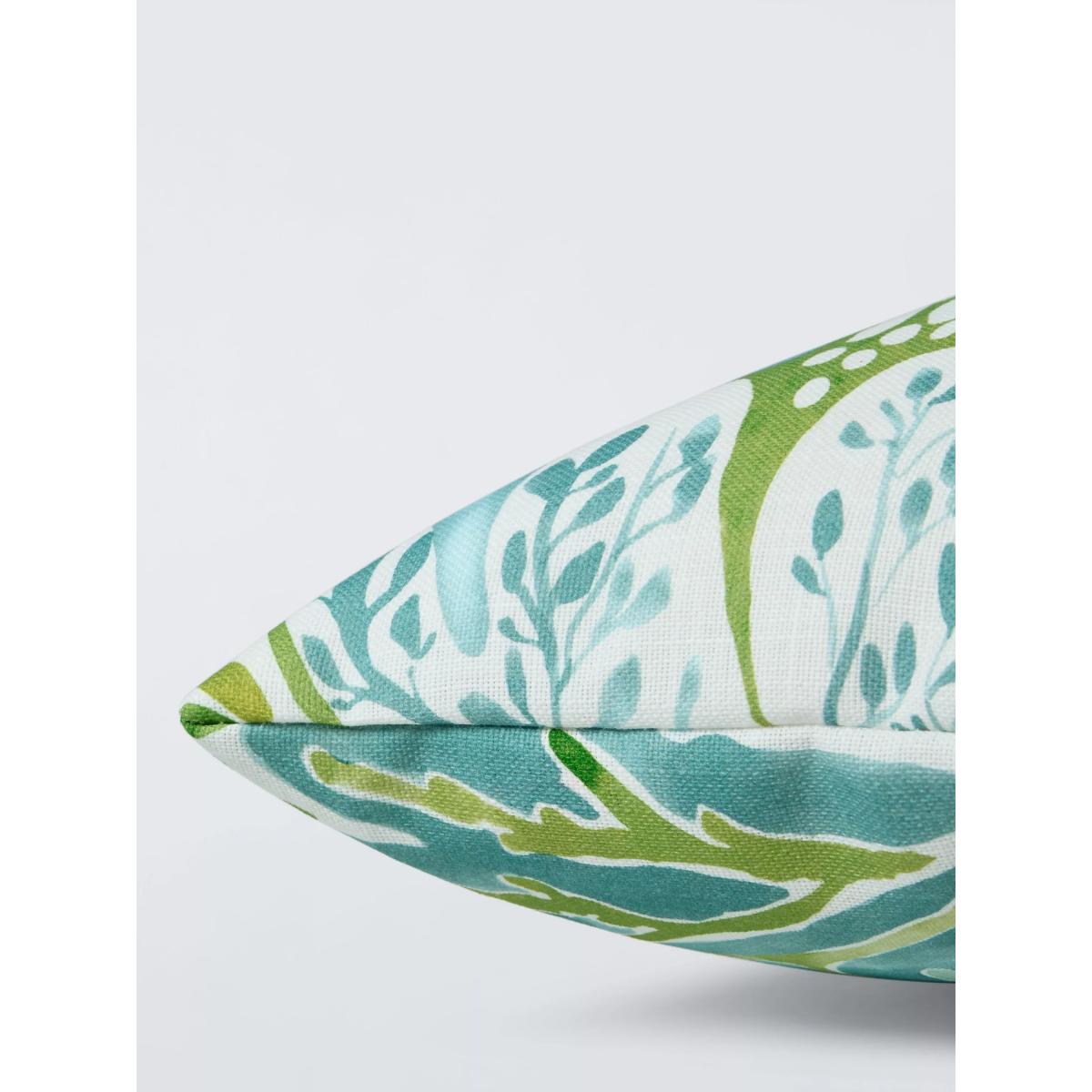 A multidirectional, all-over pattern full of movement, Alotau's rolling waves and swirling seaweed have been painted by hand, showing the design's different tones of colour. This cushion has a water-repellant coating for use with your garden furniture. However, we recommend you store it indoors when not in use.
