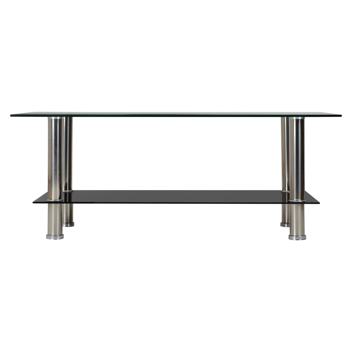 Boasting a contemporary design, the Harlequin coffee table would be a great addition to any modern living space. This self-assembly coffee table features a clear and black glass finish, coupled with contrasting chrome legs and a large open shelf. Please note, unfortunately we cannot deliver this item to Northern Ireland and the Channel Islands.