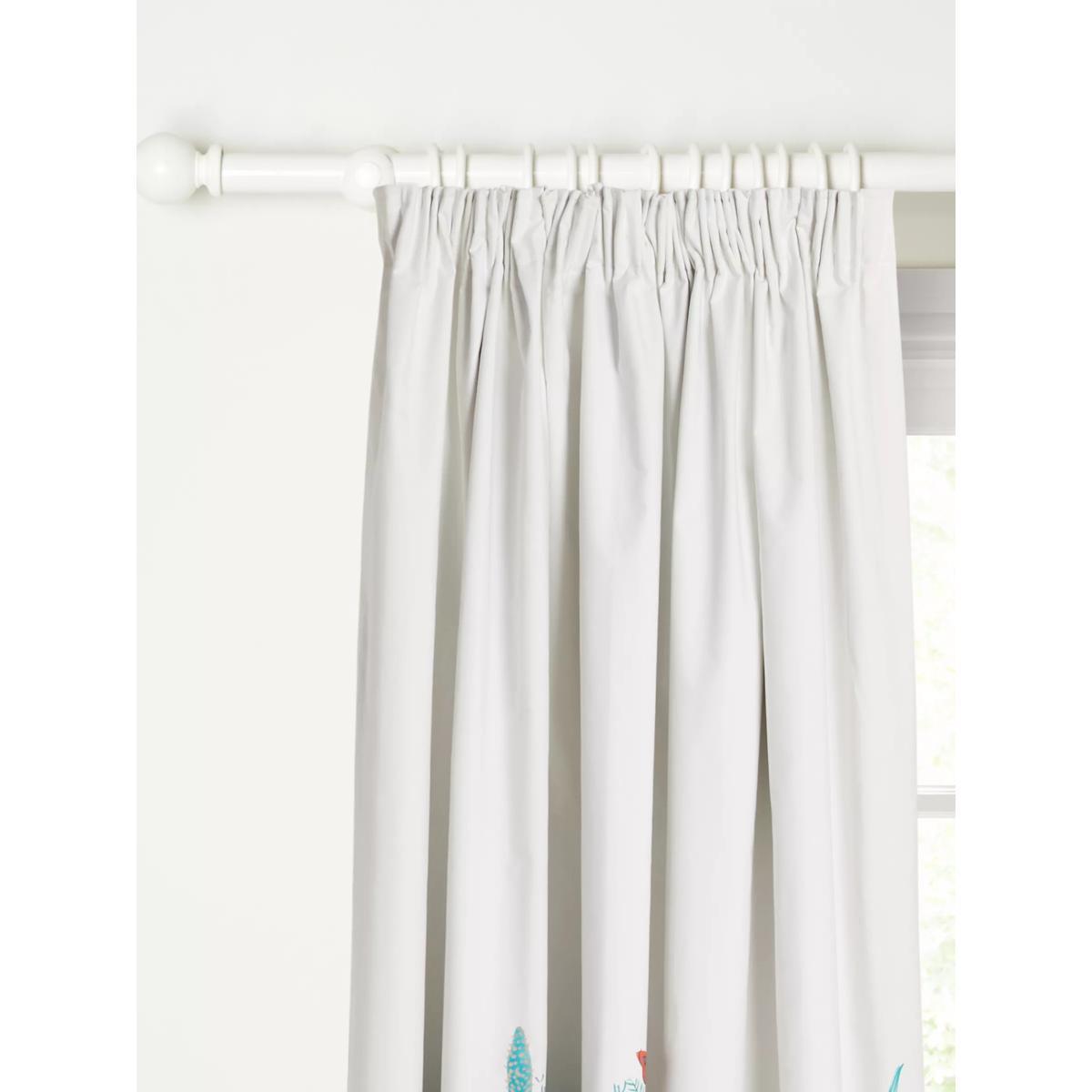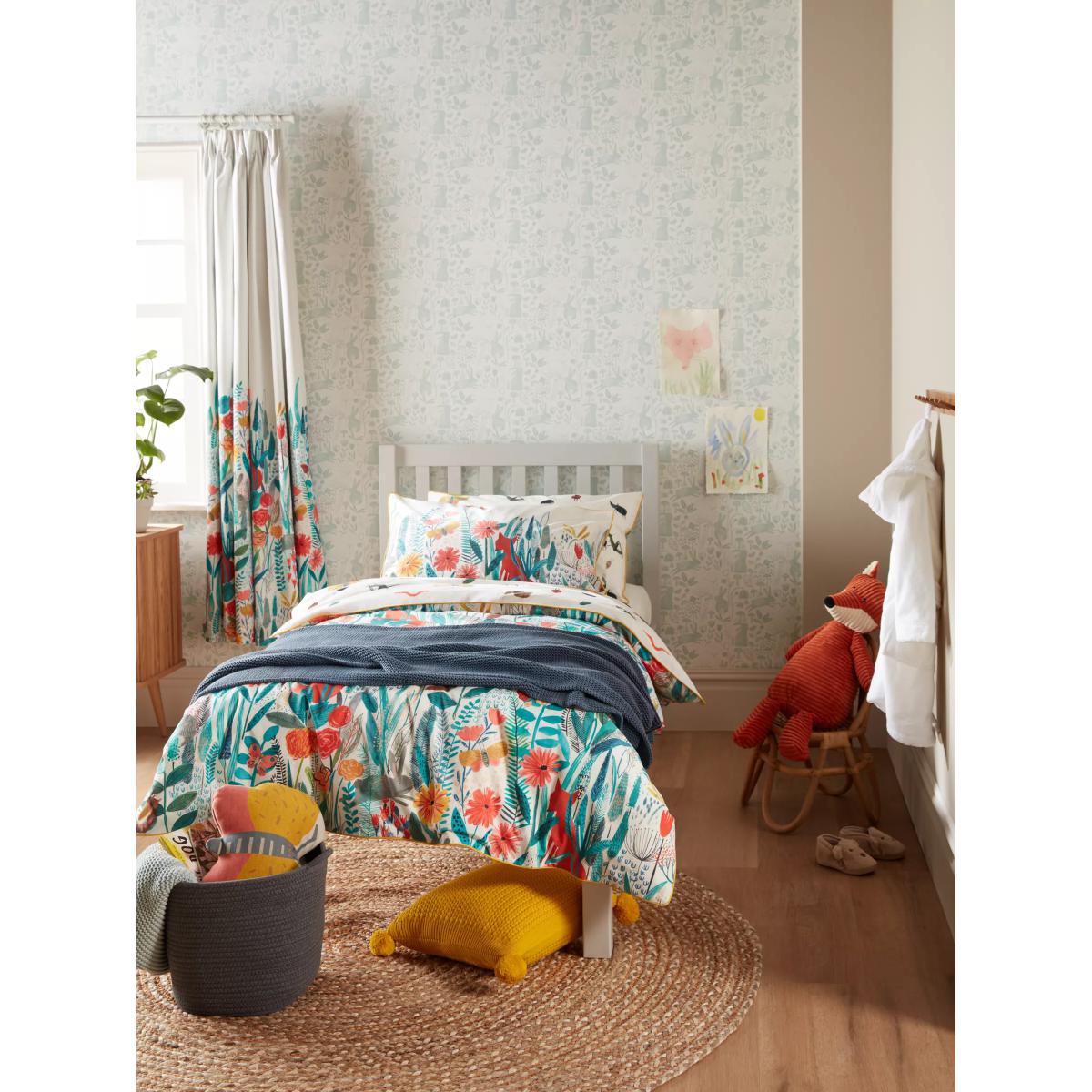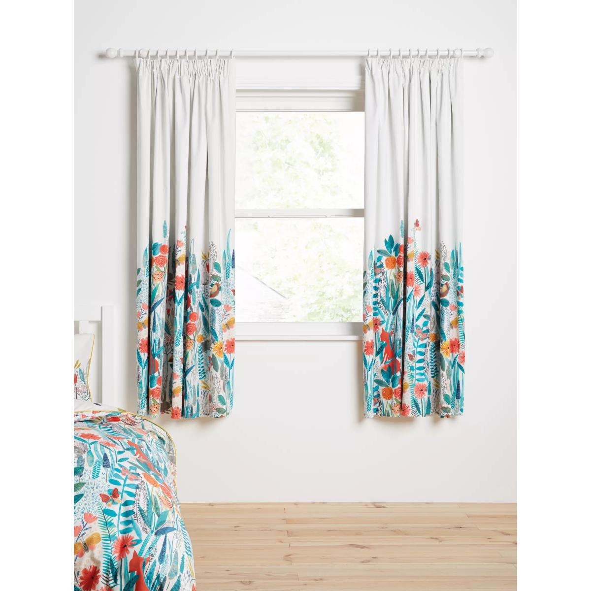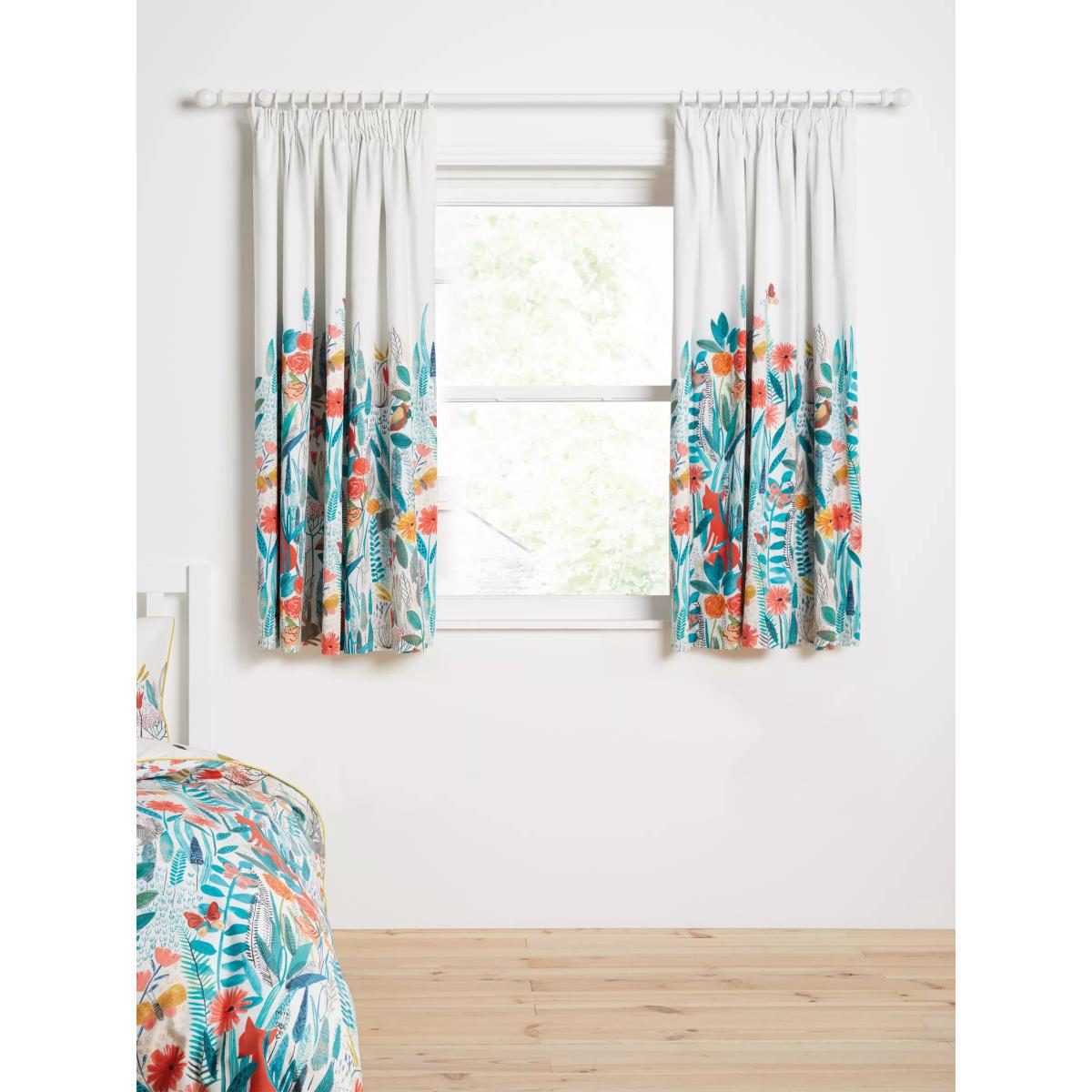 Made from pure cotton, this pair of children's curtains features the Hide and Seek print, that's been specially created for us by Harlequin. It's a vibrant and colourful mixture of animals, flowers and leaves, and runs from the centre of the curtain down to the bottom. The blackout lining helps to block out distracting sun beams or street lights and the pencil pleat design gives them a smart appearance when hung. The width dimension refers to the width of each individual curtain in the pair. By buying cotton products from John Lewis & Partners, you're supporting more sustainable cotton farming through the Better Cotton Initiative. BCI is a not-for-profit organisation which exists to make global cotton production better for the people who produce it, better for the environment it grows in, and better for the sector's future. BCI works with partners around the world such as WWF, Solidaridad and Cotton Connect to train farmers to produce cotton more sustainably. Better Cotton is sourced via a principle of "mass balance" and is not physically traceable to end products. However, BCI Farmers benefit from the demand for Better Cotton in equivalent volumes to those we source. Do you need a curtain pole and accessories? Shop.