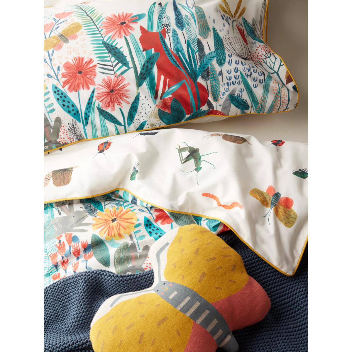 Made from pure cotton, this duvet cover set features Harlequin's Hide and Seek print on the front and their Creatures print on the reverse, so they can change the style in their bedroom whenever they make the bed. It's soft and naturally breathable which will help to keep them cool while they sleep. Both the duvet cover and pillowcase are finished with a piped border, and in our quest to cut down on plastic, this set is packed in a reusable, printed fabric bag. Both prints have been specially created for us by Harlequin. Good to know The single set comes with one standard pillowcase and the double set comes with two standard pillowcases. By buying cotton products from John Lewis & Partners, you're supporting more sustainable cotton farming through the Better Cotton Initiative. BCI is a not-for-profit organisation which exists to make global cotton production better for the people who produce it, better for the environment it grows in, and better for the sector's future. BCI works with partners around the world such as WWF, Solidaridad and Cotton Connect to train farmers to produce cotton more sustainably. Better Cotton is sourced via a principle of "mass balance" and is not physically traceable to end products. However, BCI Farmers benefit from the demand for Better Cotton in equivalent volumes to those we source.