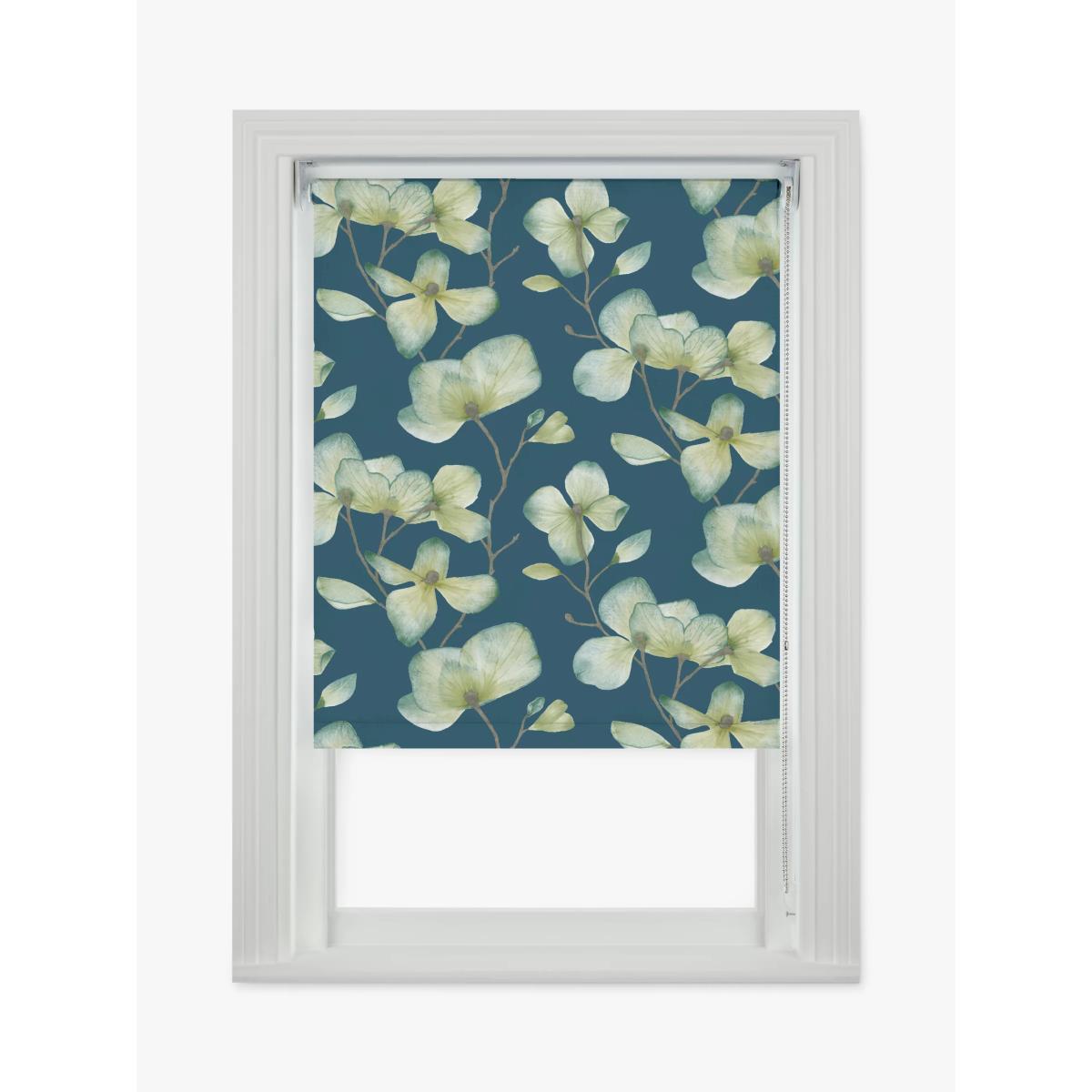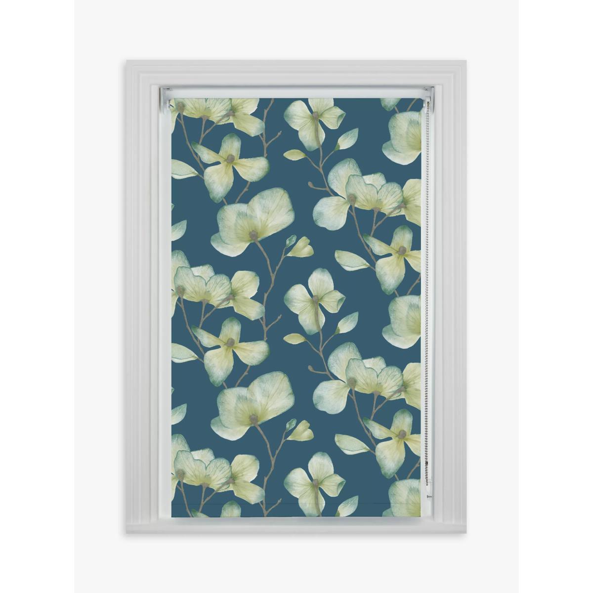 Made according to your requirements our Digital Print range of roller blinds lets you create a blind to fit your personal requirements using well-known branded designs. Kienze is a popular design from Harlequin often used as a wallpaper or furnishing fabric. Developed from intricate pressed flowers it has a modern x-ray floral trail pattern. Key features: Can be installed either inside or outside the window recess, to the wall or ceiling Can be standard or reverse rolled. Standard gives a close fit to the window, helping eliminate light. Reverse brings the material forward over the roll which conceals it and creates space between the blind and window Includes a metal chain mechanism which can be attached on the left or right-hand side, without affecting the way the blind is rolled Supplied with easy-fit universal brackets Includes safety devices to keep children safe Blackout or daylight? Your first choice is whether you'd like a blackout or daylight blind; this blind can be made as either. A blackout blind eliminates light and gives you 100% privacy making it a good choice for bedrooms as they help you get a good night's sleep, blocking out light pollution as well as the early-rising sun in the spring and summer months. As the blackout lining blocks out sunlight it also helps keep your room cool as well as dark. But in the winter months the 3 layer blackout coating adds an extra layer of insulation, giving the blind thermal properties which aren't found on non-blackout blinds. It protects against both heat loss and heat gain, regulating the temperature of your room so you're kept warm in winter and cool in summer. The final benefit of a blackout blind is that it's moisture-resistant, so is suitable for kitchens and bathrooms. A daylight blind on the other hand still offers some privacy without blocking out all the light. They're a good option for rooms like the lounge or home office where you just need to stop some of the sun's glare through the day. Size restrictions: Minimum size: W40 x Drop 40cm Maximum size: W280 x Drop 350cm Child safety For safety, we recommend that you move beds, cots and furniture away from any window fitted with a blind that has a side control mechanism, even with a safety device in place. Your blind will come with a double-breakaway child safety device on the chain. This is designed to come apart when too much pressure is applied. You can simply reconnect the chain should this happen. If your measurements don't allow for a breakaway chain we'll include a P-clip with your order instead. The clip allows you to safely secure the chain to your wall, which you can see in the above images. If this is the case for your order we'll always call you before fulfilling your order so you're aware. Please make sure you understand the information on our Child Safety Hub before placing your order. Ready to place your order, or looking for more advice? If you're interested in our Digital Print blinds and are ready to place your order, or need a little more advice, there are a few ways we can help. Firstly, come into any of our shops and speak to a Partner. Alternatively, we can come to you as we're also now offering in-home appointments. Finally, you can book a virtual appointment and speak to one of our estimators on a video or phone call. They'll provide a combination of practical measuring, design and technical advice. Find out more about our services and book an appointment here