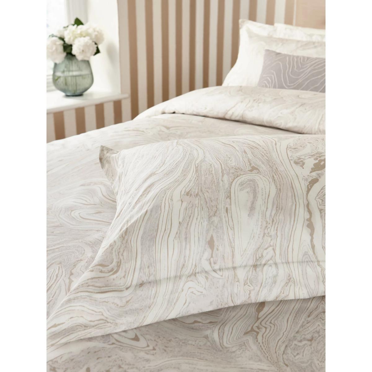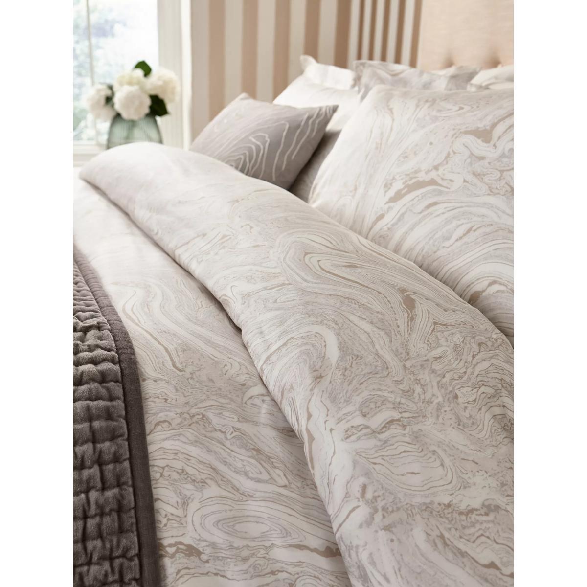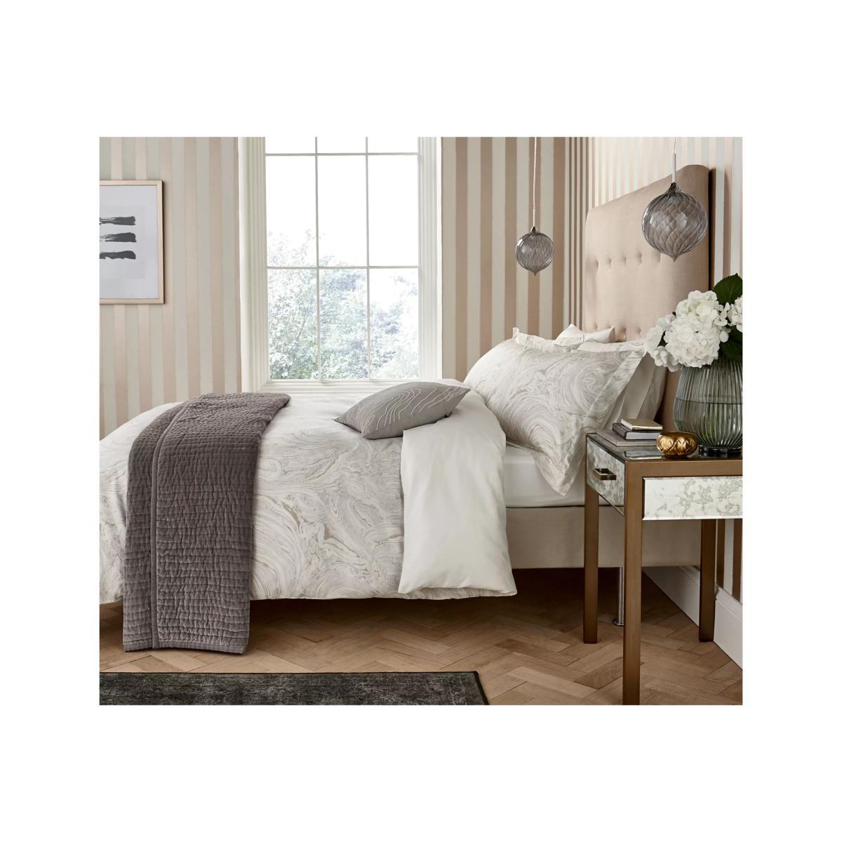Makrana features an all-over marble pattern with beige highlights, with a moonstone-coloured plain on the reverse, and is finished with button fastenings. Reactive printed on 100% cotton sateen with a 200 thread count. Please note: Duvet covers and pillowcases are available to purchase separately, and not in sets. Have you thought about sheeting? Shop. Bedding sizes To fit duvet/pillow size (cm) Oxford pillowcase, L75 x W50cm (excluding trim) Single duvet cover, L200 x W135cm Double duvet cover, L200 x W200cm King duvet cover, L220 x W225cm Super king duvet cover, L220 x W260cm
