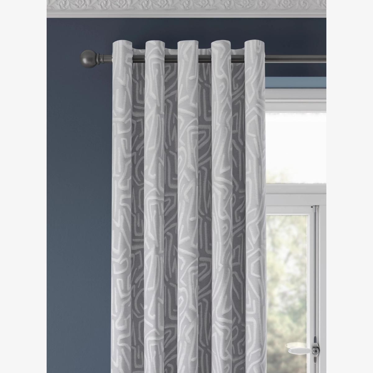 Lined eyelet curtains with a statement geometric jacquard weave for a modern look. The lining adds the perfect finish, improving the drape and enhancing the vibrancy of the curtain. Eyelet curtains are quick and easy to fit. Match eyelet colour to your curtain pole for a coordinated look. The width stated indicates the size of one curtain panel when laid completely flat. This pack contains two panels, and the track/pole length we've recommended allows for the two panels to be gathered when the curtains are drawn. For a fuller look, increase the curtain width. One pair of 117cm width curtains will fit a curtain track/pole size of 117-156cm One pair of 168cm width curtains will fit a curtain track/pole size of 133-168cm One pair of 229cm width curtains will fit a curtain track/pole size of 183-229cm Worth knowing... We package our curtains in recycled materials to keep them protected whilst they make their way to you. This means that when they arrive there could be some creases in them. We recommend you hang them for a few days to allow them to flatten and for the creases to fall out. If after this period your curtains still show signs of being folded then follow the ironing instructions on the back of the packaging. Be aware that each style of curtain has different ironing instructions, including heat limitations according to the fabric, so do make sure you follow the guidance provided to get the best results. Do you need a curtain pole/track and accessories? Shop them here.