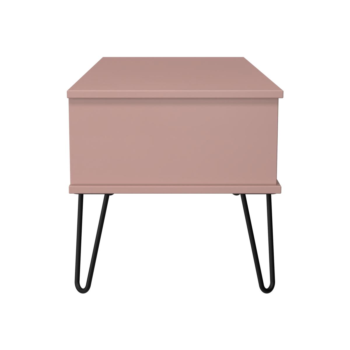 This modern coffee table, has a single storage drawer and open shelf stroage area. A modern and distinctive range. Named for the unique "Harlequin" patten of the drawer and door fronts. Also features Black Metal Handles and Black Hairpin Legs. Comes in a wide range of colours including eye cathching two tone colour combinations. All our furniture is made in the United Kingdom, to the highest quality using responsibly sourced materials. It is delivered direct to your location of choice by one of our two man delivery teams, and comes fully assembled (although items with legs will have those legs removed during transit to avoid damage).