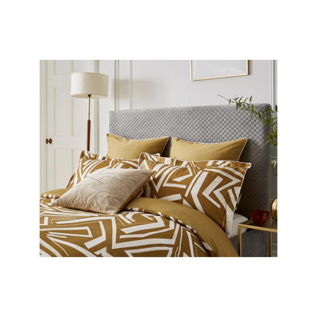 Bold, energetic, and a true style statement, Transverse is a Harlequin classic. In rich saffron yellow, the inky brush mark detail and abstract shapes cast subtle shadows on the 100% cotton sateen. Full of dramatic vigour, Transverse is perfect for those looking for an eyecatching focus for their bedroom scheme. Please note: Duvet covers and pillowcases are available to purchase separately, and not in sets. Have you thought about sheeting? Shop here. Bedding sizes To fit duvet/pillow size (cm) Oxford pillowcase, L75 x W50cm (excluding trim) Single duvet cover, L200 x W135cm Double duvet cover, L200 x W200cm King duvet cover, L220 x W225cm Super king duvet cover, L220 x W260cm