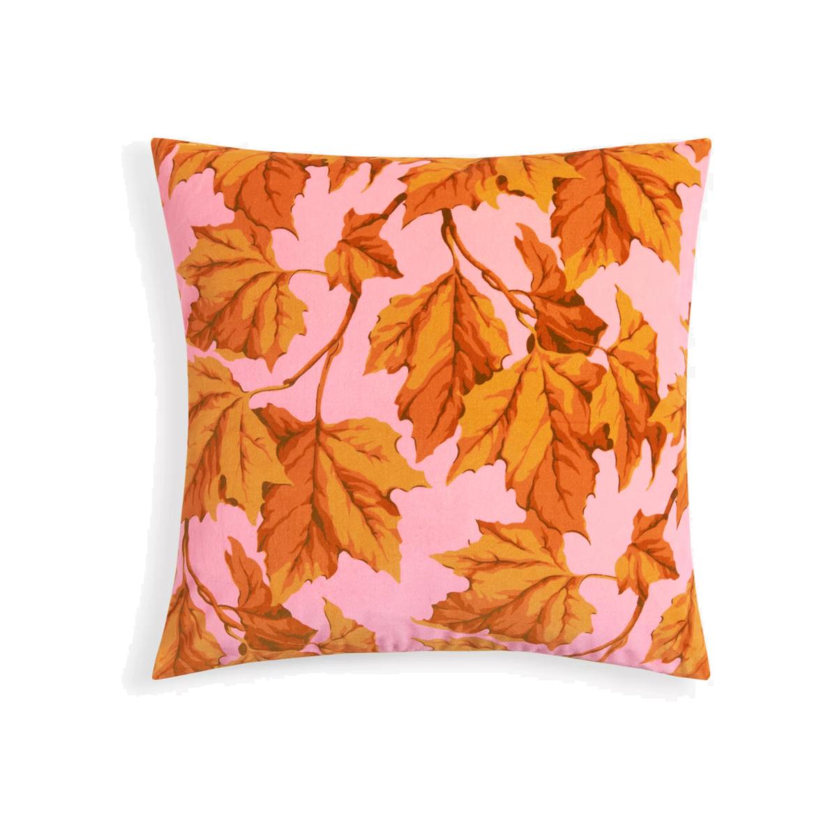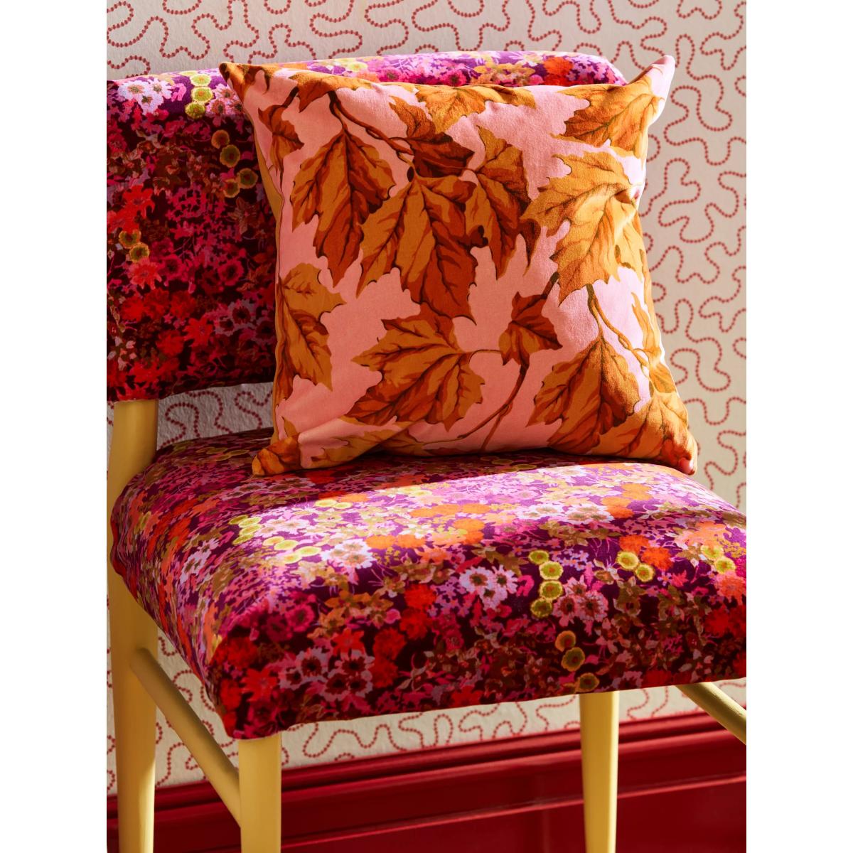 Harlequin x Sophie Robinson Dappled Leaf Cushion, Amber/Rose