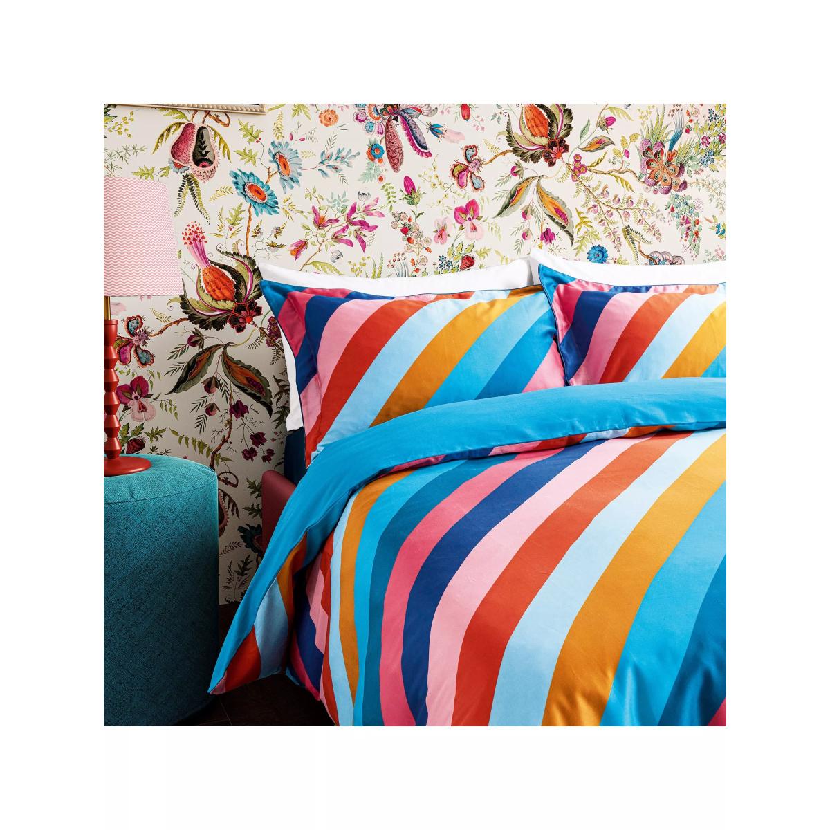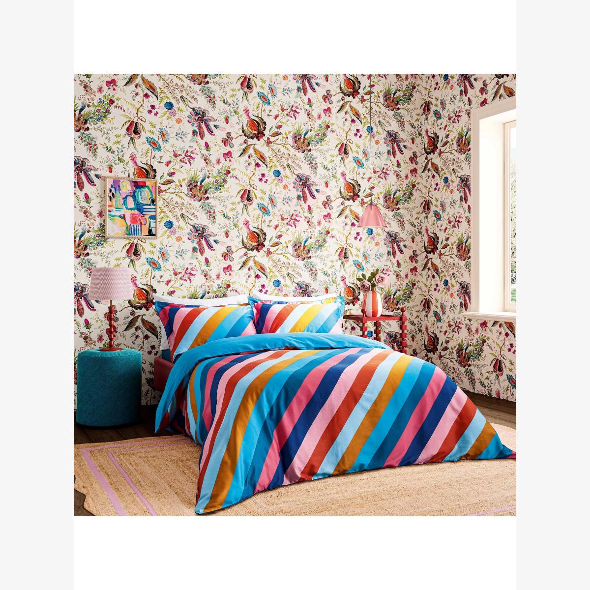 Showcasing a thick stripe design this colourful set is sure to be noticed. It's made from 100% cotton fabric which is naturally breathable, helping keep you cool and comfortable throughout the night. The single set comes with one standard pillowcase, while the double, king and super king sets come with two standard pillowcases. Better Cotton By choosing our cotton products, you’re supporting our investment in Better Cotton’s mission to help cotton communities survive and thrive while protecting and restoring the environment. Better Cotton Farmers are farmers who care for the environment and respect workers’ rights and wellbeing. This product is sourced via a system of mass balance and therefore may not contain Better Cotton. bettercotton.org/massbalance Bedding sizes To fit duvet/pillow size (cm) Standard pillowcase, L75 x W50cm Single duvet cover, L200 x W135cm Double duvet cover, L200 x W200cm King duvet cover, L220 x W225cm Super king duvet cover, L220 x W260cm
