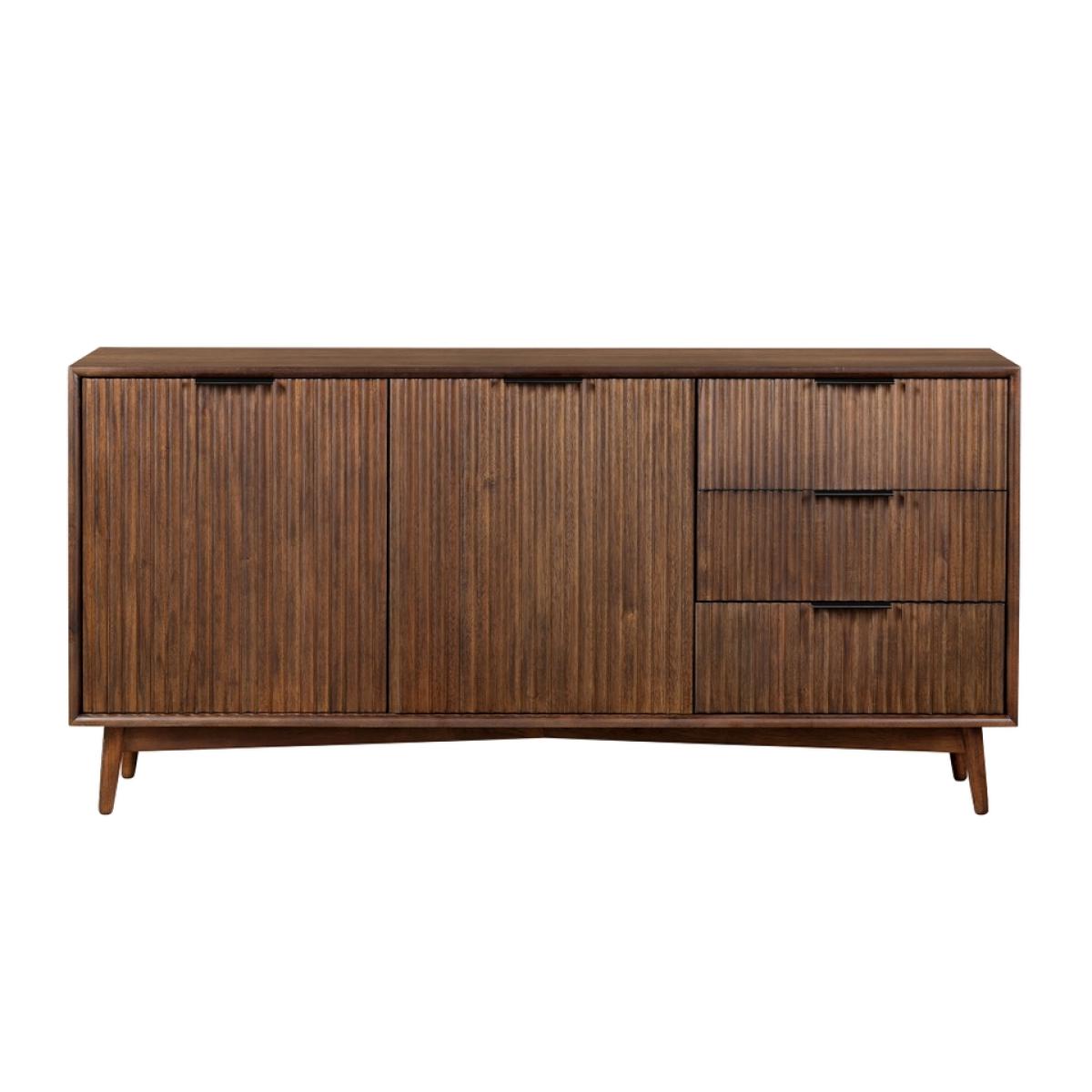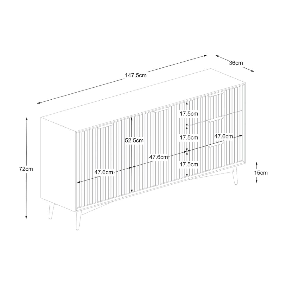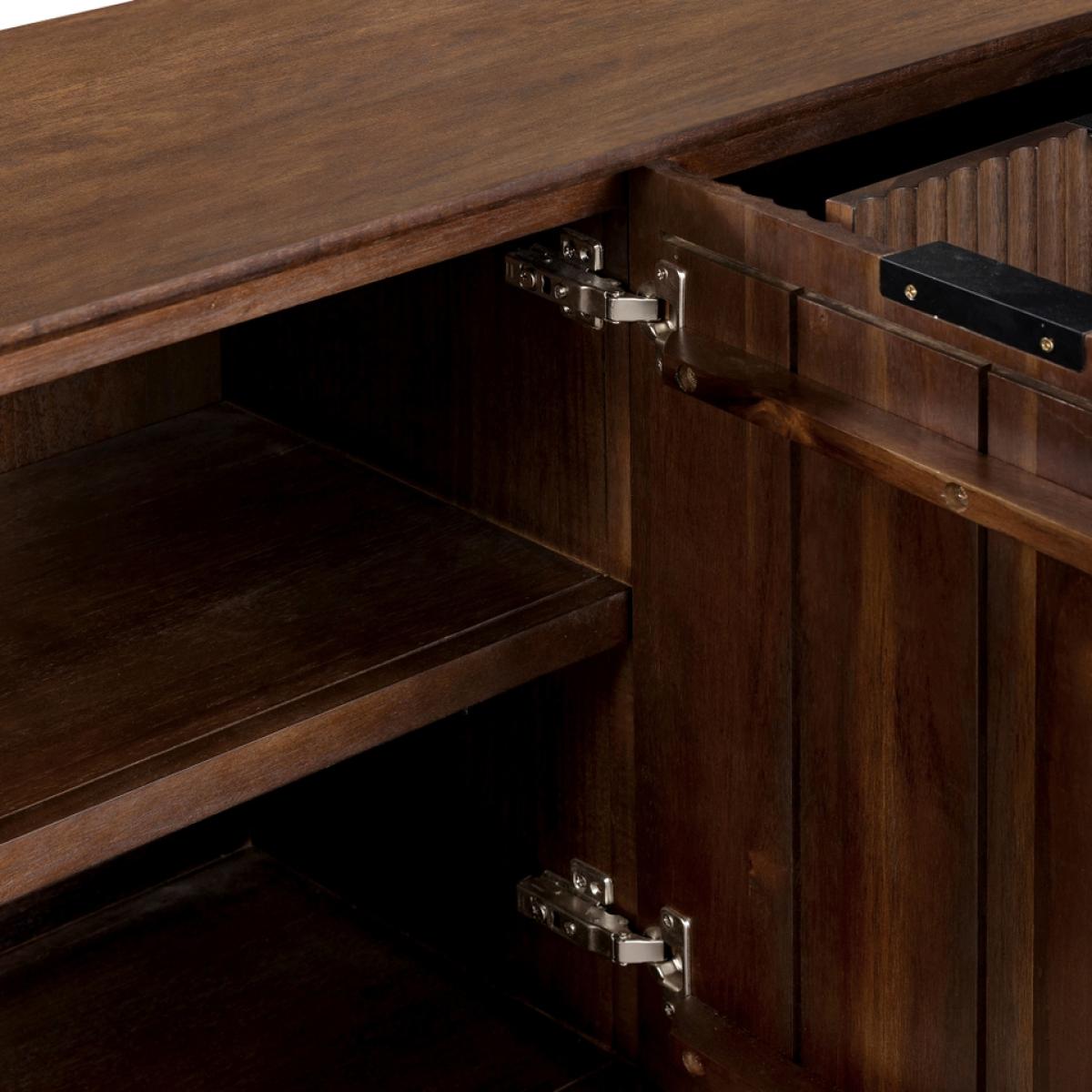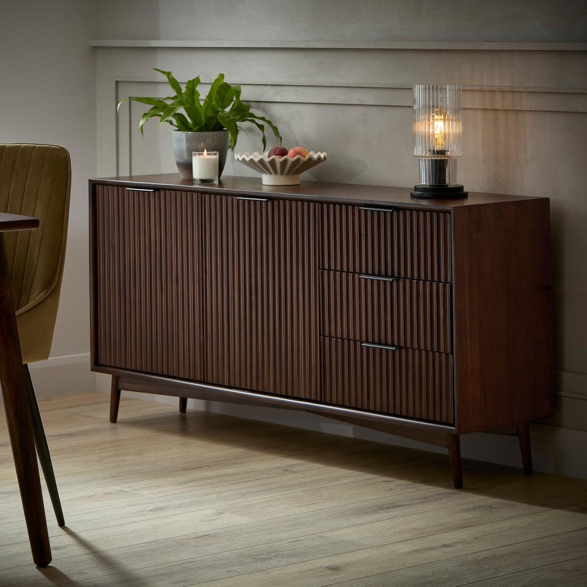 The chic design of the Harley wide sideboard has a simple frame offset with a striking fluted door and drawer fronts to add texture and style to your space. Constructed from sturdy Acacia wood with a rich walnut brown finish this sideboard is a visual and tactile treat. With ample storage space, you can keep your belongings organised and out of sight behind cupboard doors.