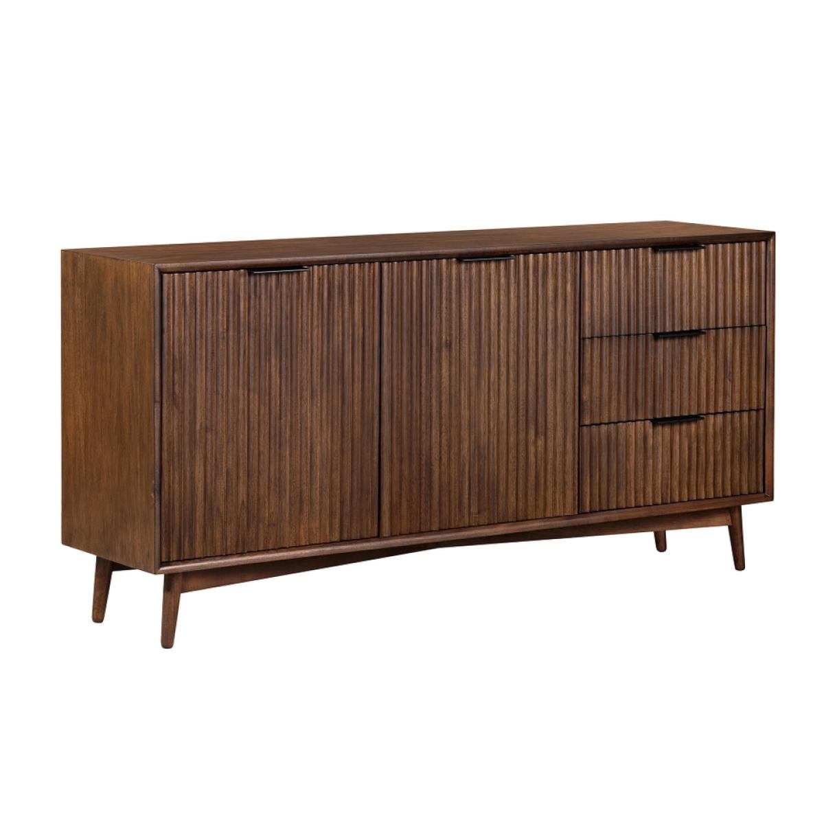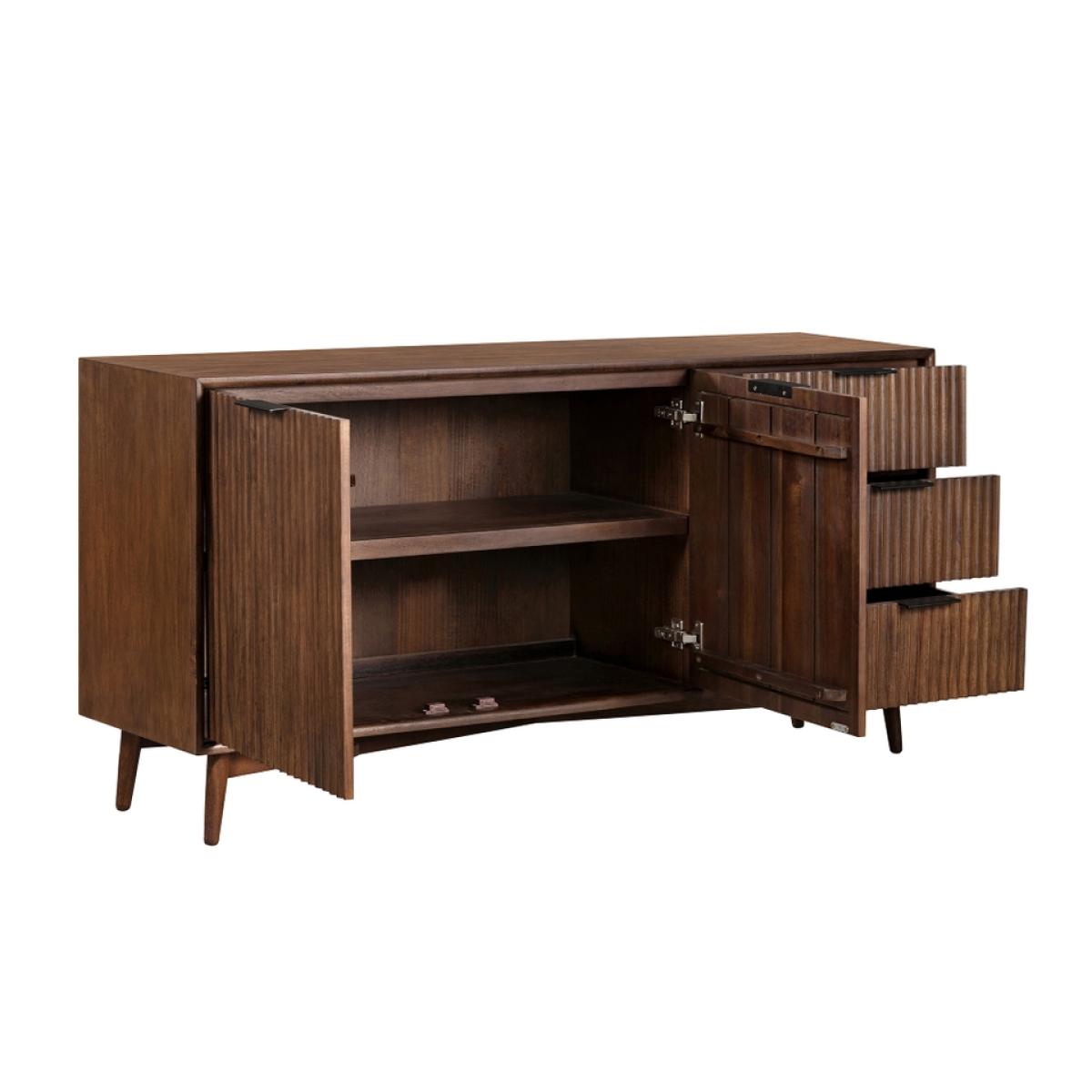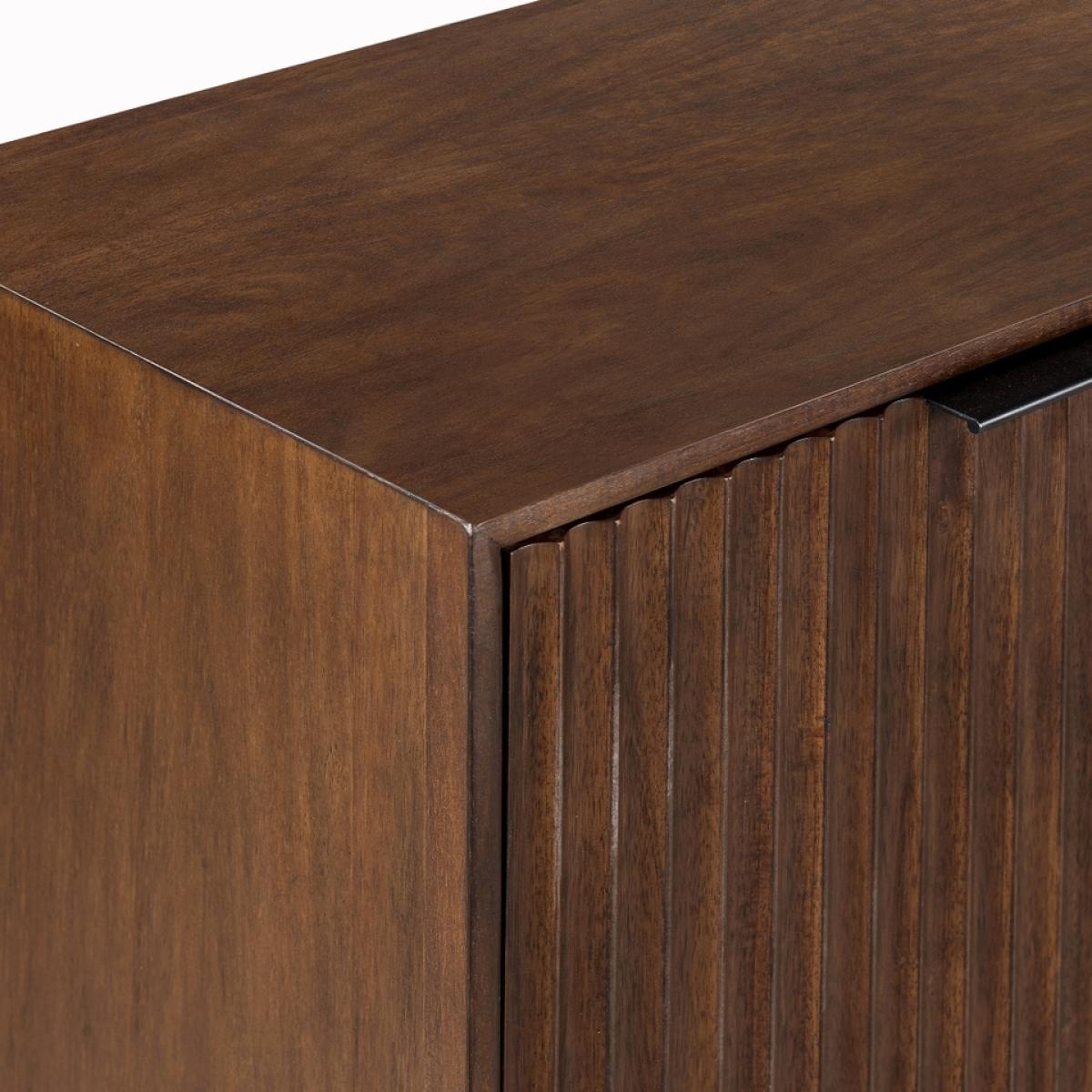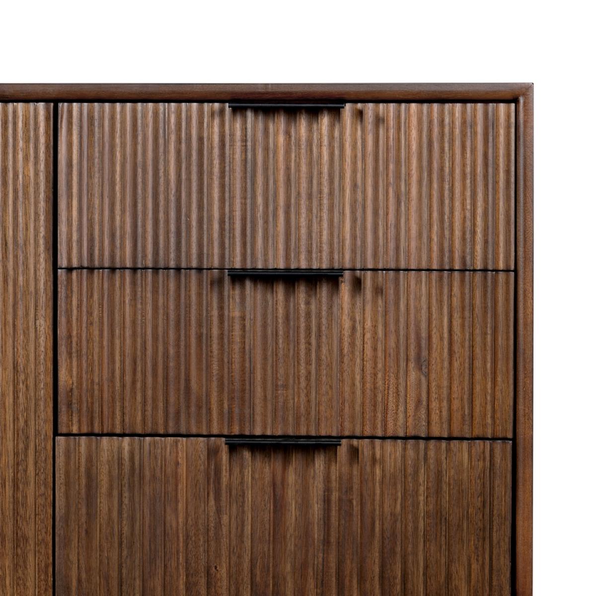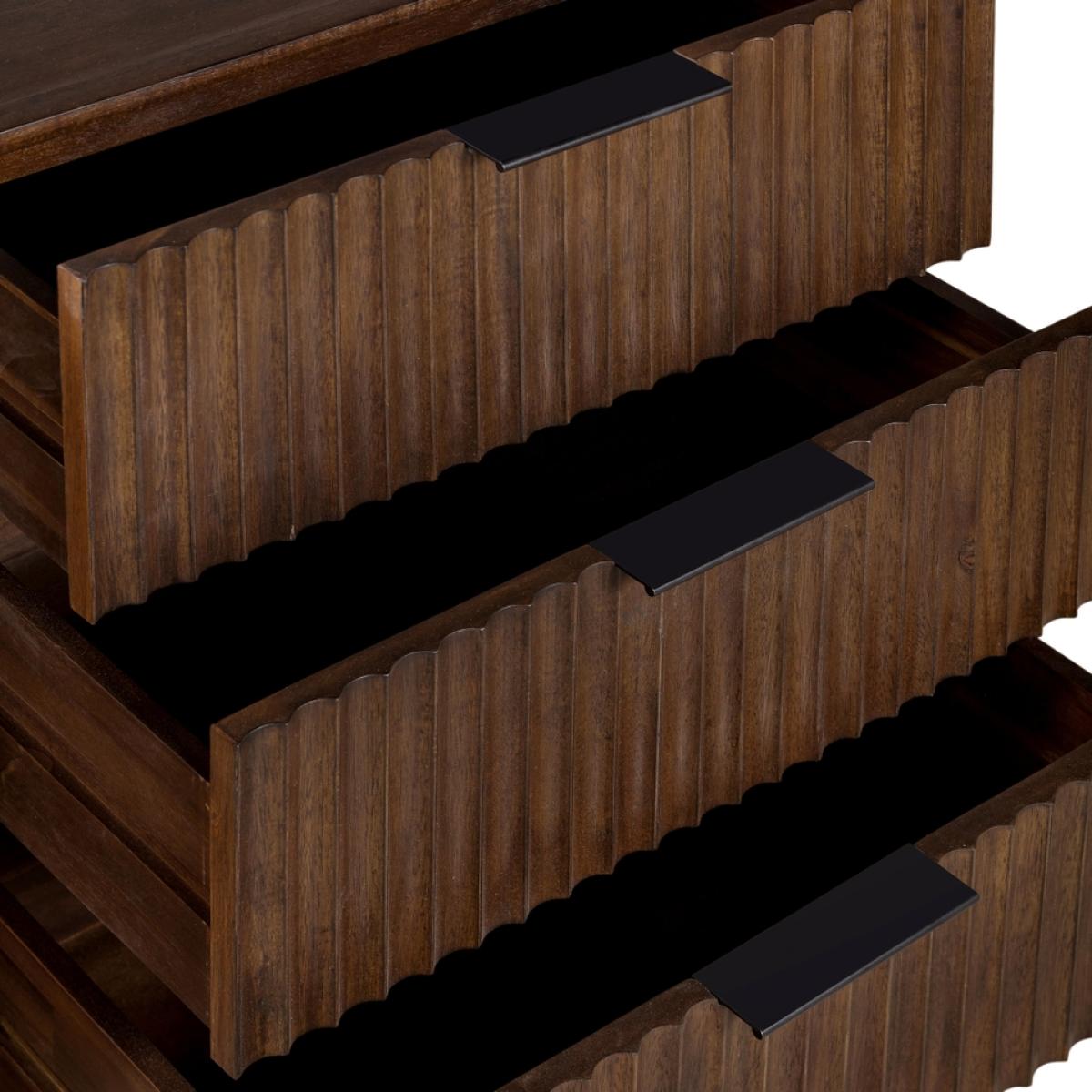 The chic design of the Harley wide sideboard has a simple frame offset with a striking fluted door and drawer fronts to add texture and style to your space. Constructed from sturdy Acacia wood with a rich walnut brown finish this sideboard is a visual and tactile treat. With ample storage space, you can keep your belongings organised and out of sight behind cupboard doors.