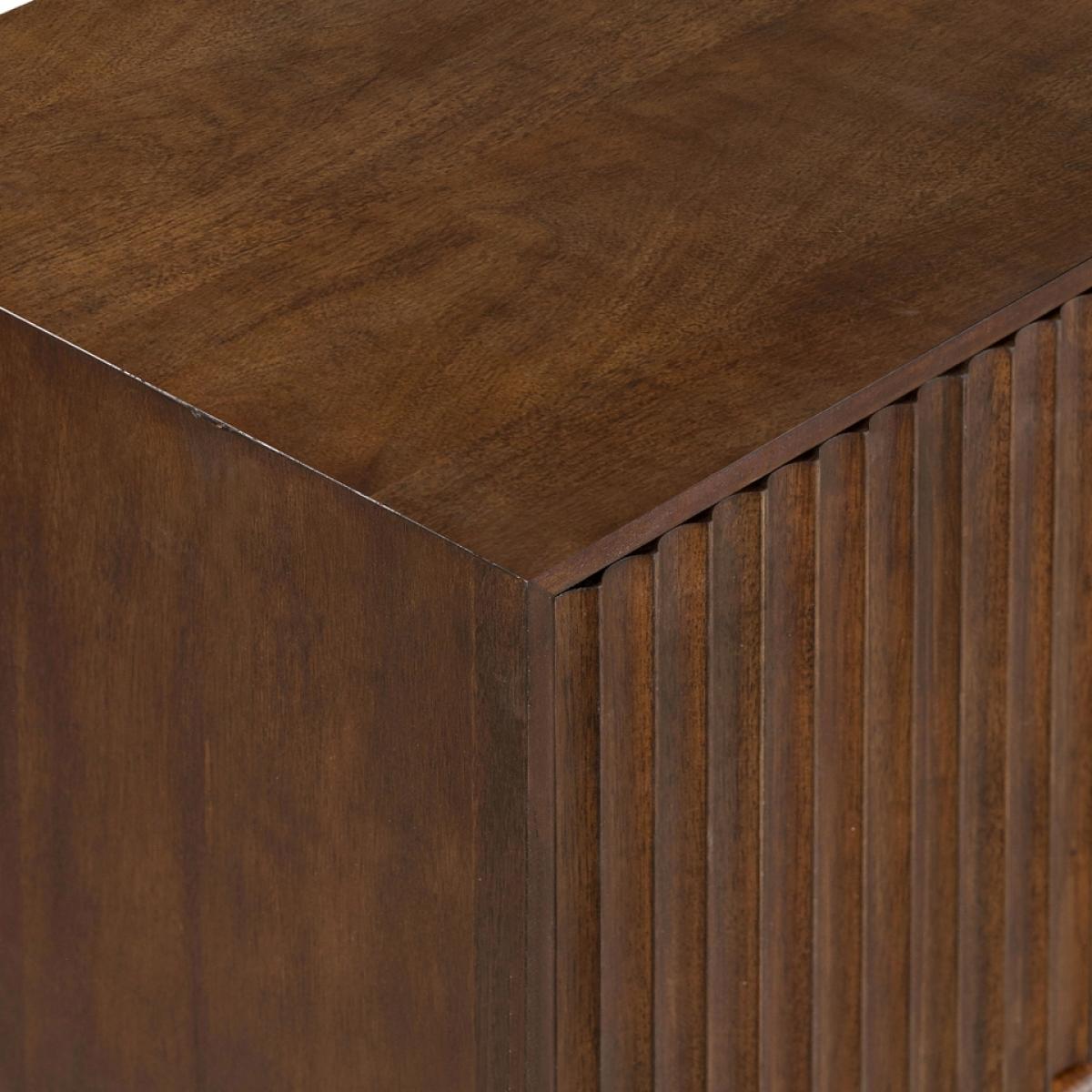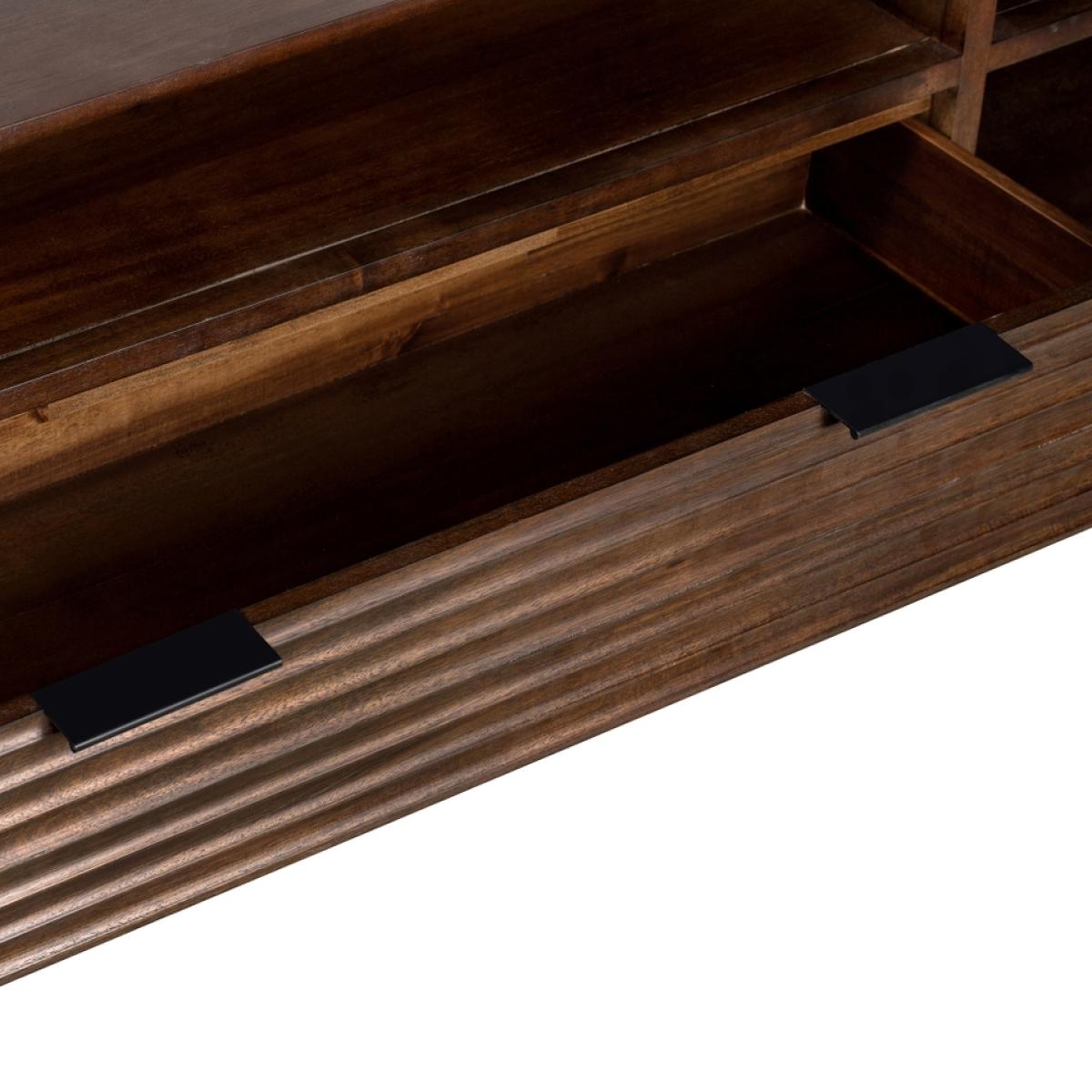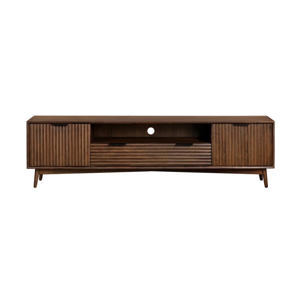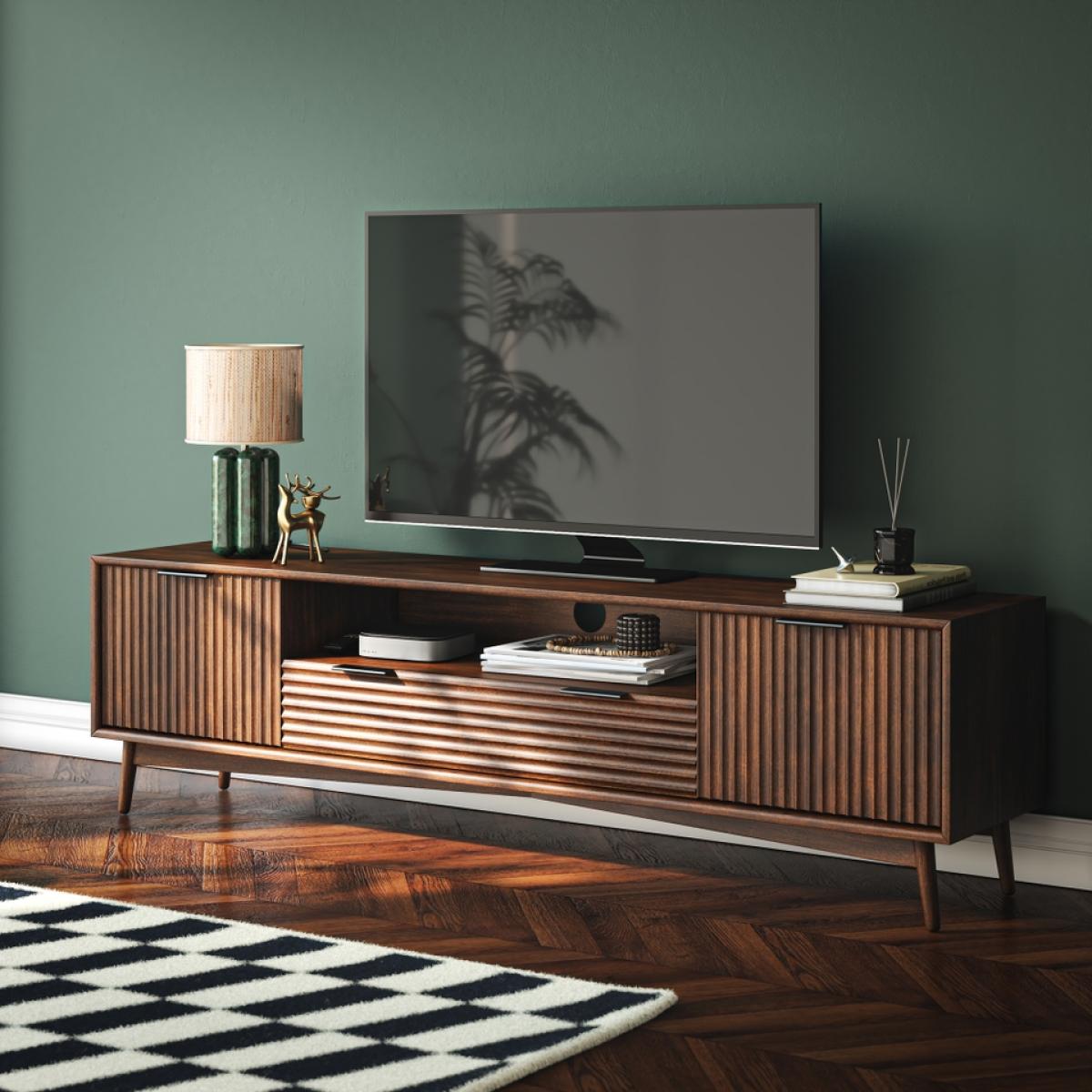 The chic design of the Harley wide TV stand has a simple frame offset with a striking fluted drawer and door fronts to add texture and style to your space. Constructed from sturdy Acacia wood with a rich walnut brown finish this wide TV unit has ample surface space for your television screen, with an open shelf for your entertainment boxes to sit atop. Video games, cables, and remote controls can all be hidden away behind the storage drawer and cupboards.