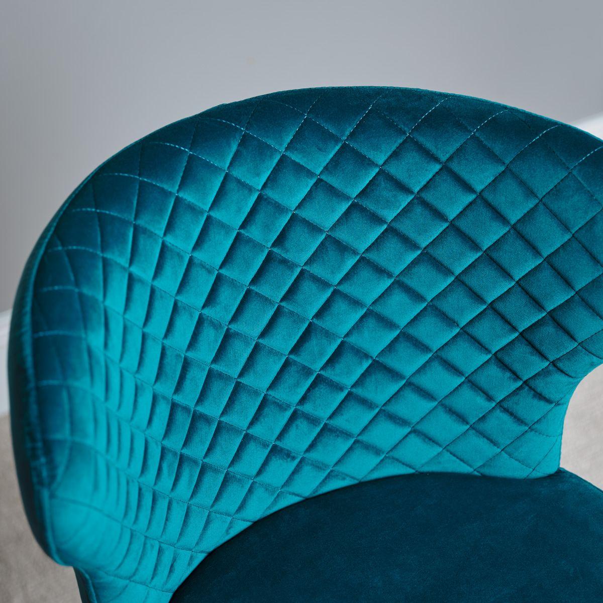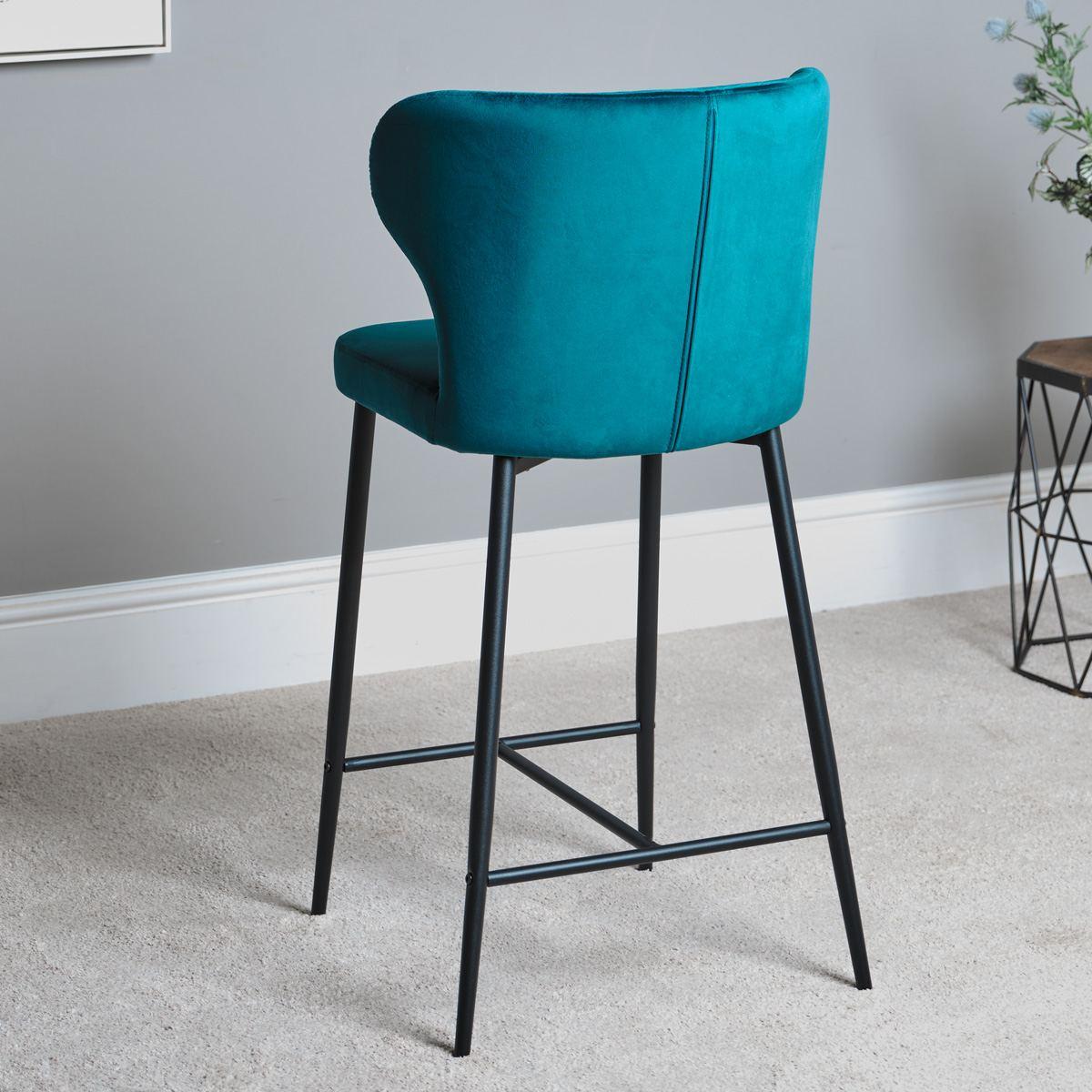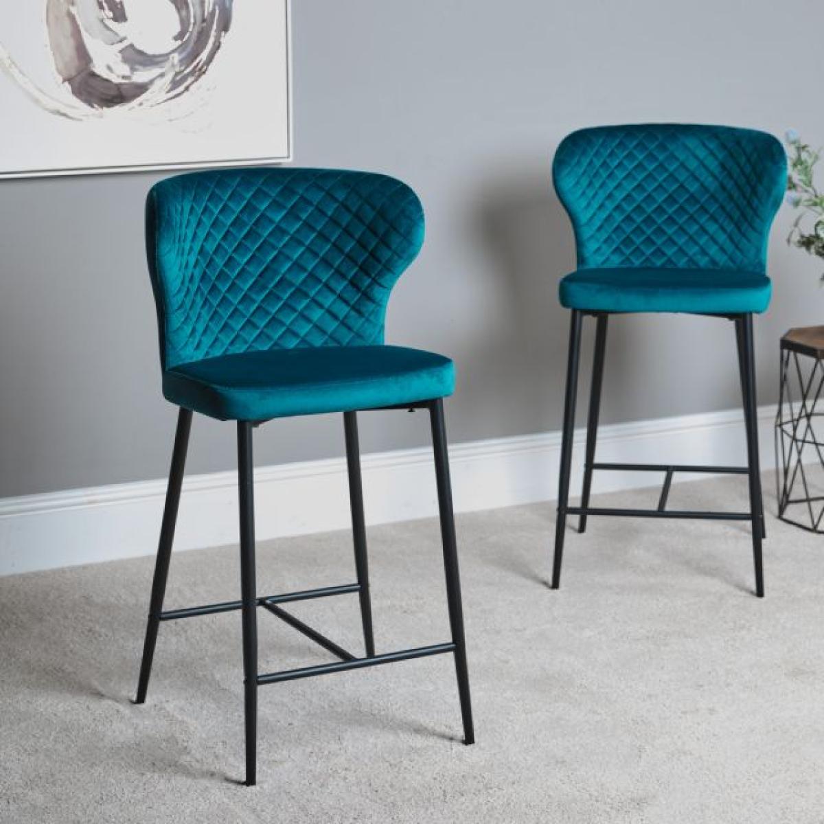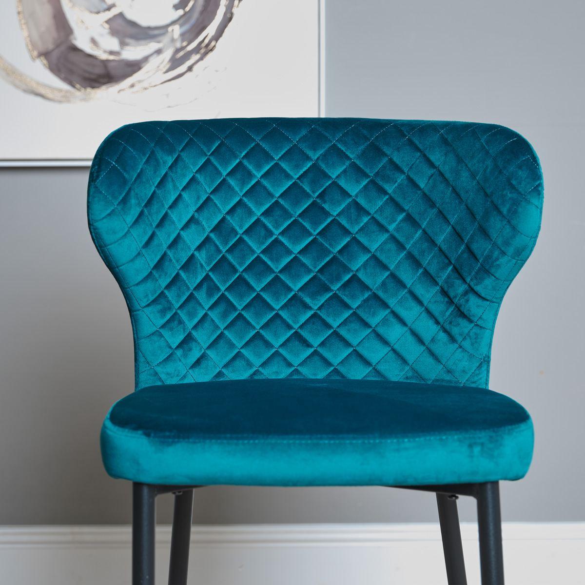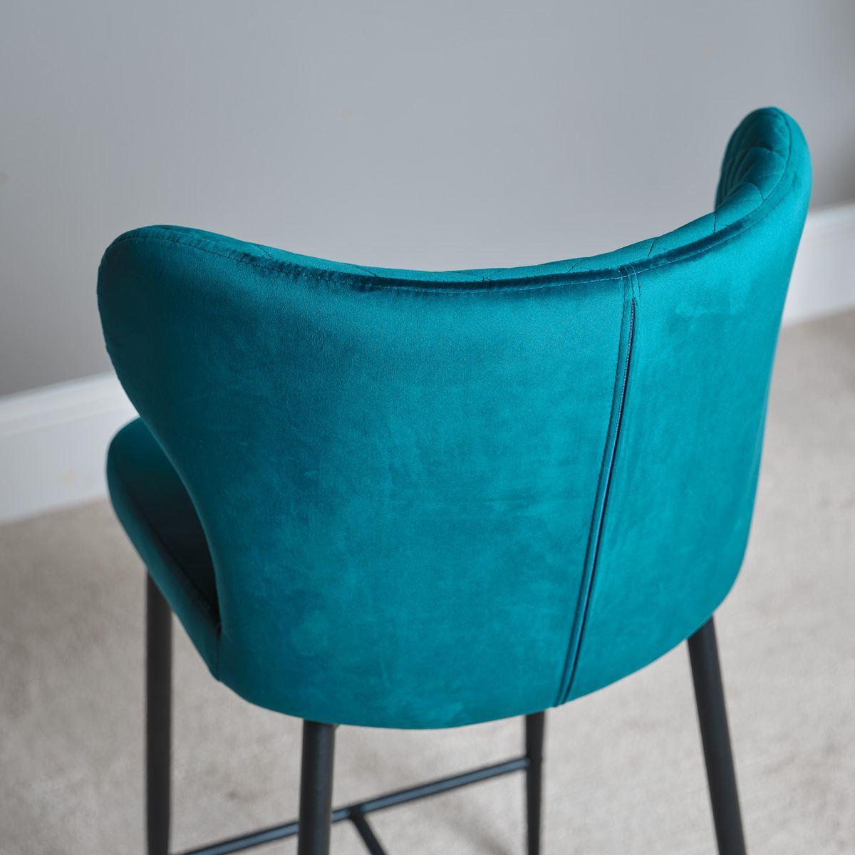 This beautiful teal blue Harley Bar Stool features a classically luxurious fabric cushioned seat with a quilted back for extra comfort and style. The dark elegant legs complete the look, creating a bar stool that will be the perfect addition to any kitchen or dining room. Sold as a pair, it is also available in a selection of other trending colours.