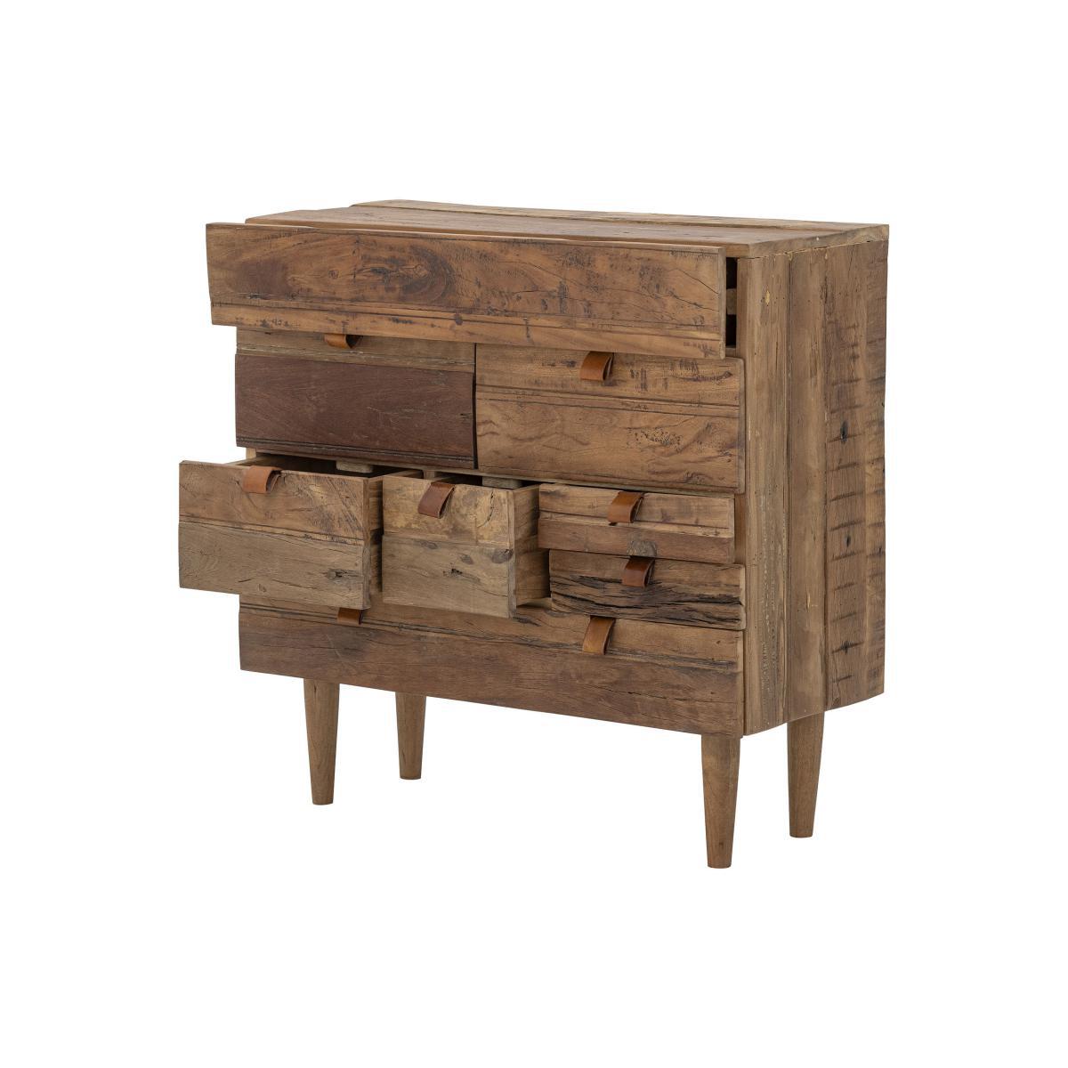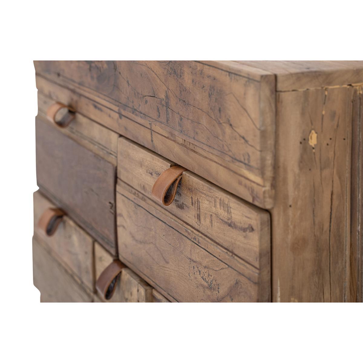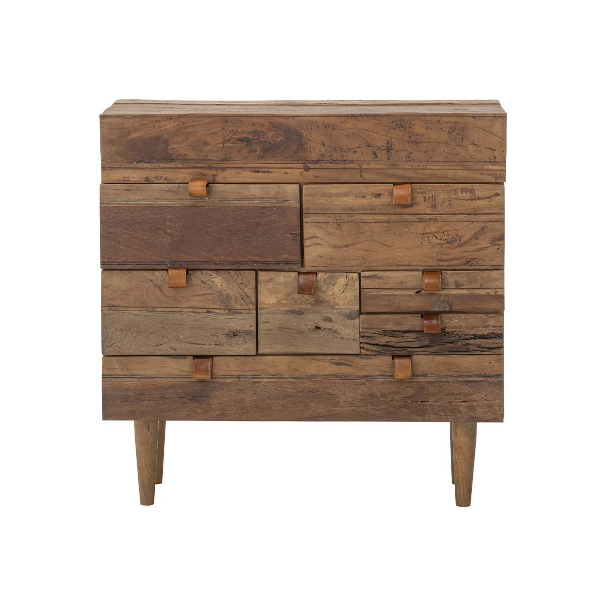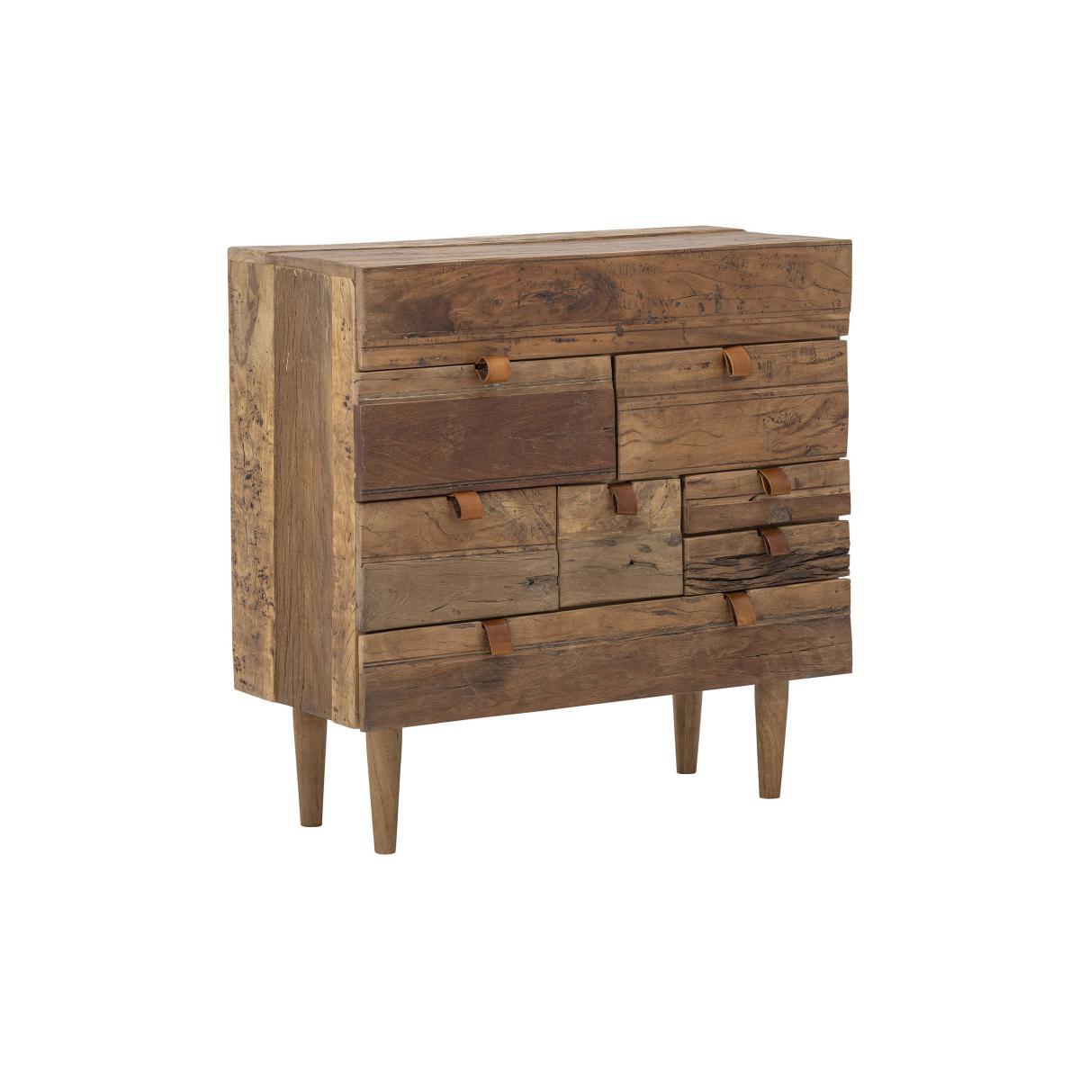 We simply love the rustic look of this chest of drawers, which looks like it's been plucked straight from an antiques market. As though weathered by time, the wood has an authentic look. The Harley chest of drawers is made from recycled and reused wood: each piece is unique. It features eight asymmetrical drawers with small leather straps as handles. This piece showcases wood in its raw state. The defects, which are generally glossed over, are highlighted and shown off on this piece: the irregular knots and veining, the variations in colours and the slightly asymmetrical lines are the keys to a primitive aesthetic which creates a connection between the present and past.